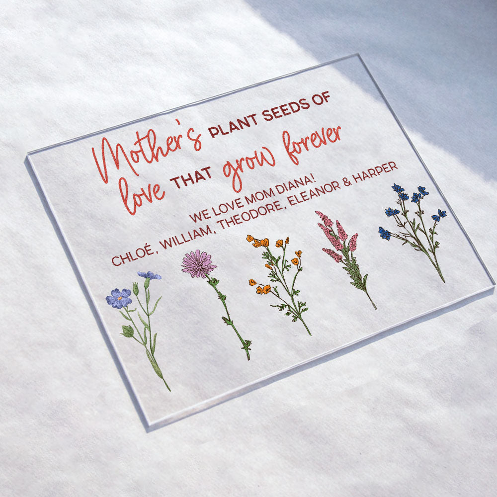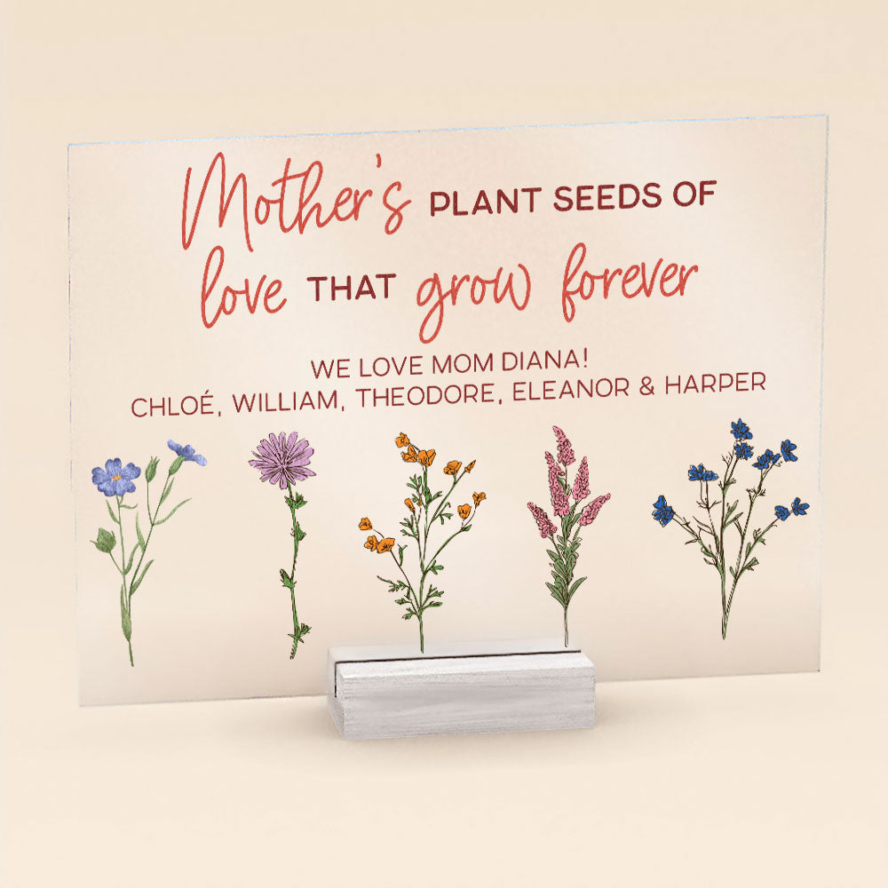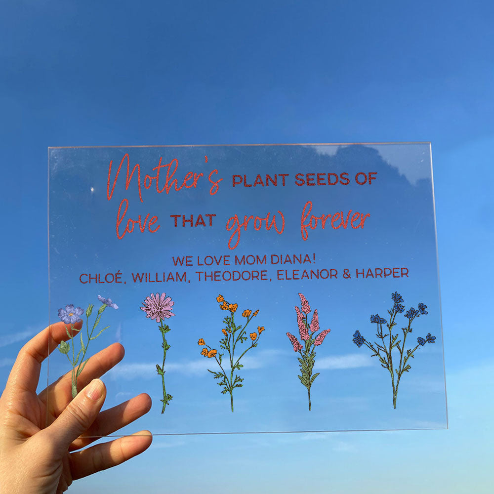 Celebrate the nurturing figures in your life with our exquisite Personalized Acrylic Plaque adorned with a custom plant or flower, a unique touch that encapsulates growth and gratitude. This heartfelt gift is a beautiful tribute to the guiding forces like Grandma, Mom, Aunt, or any special woman who has played a pivotal role in your life. The transparent acrylic plaque adds a modern and elegant aesthetic, providing a sleek backdrop for the vibrant and carefully chosen plant or flower.