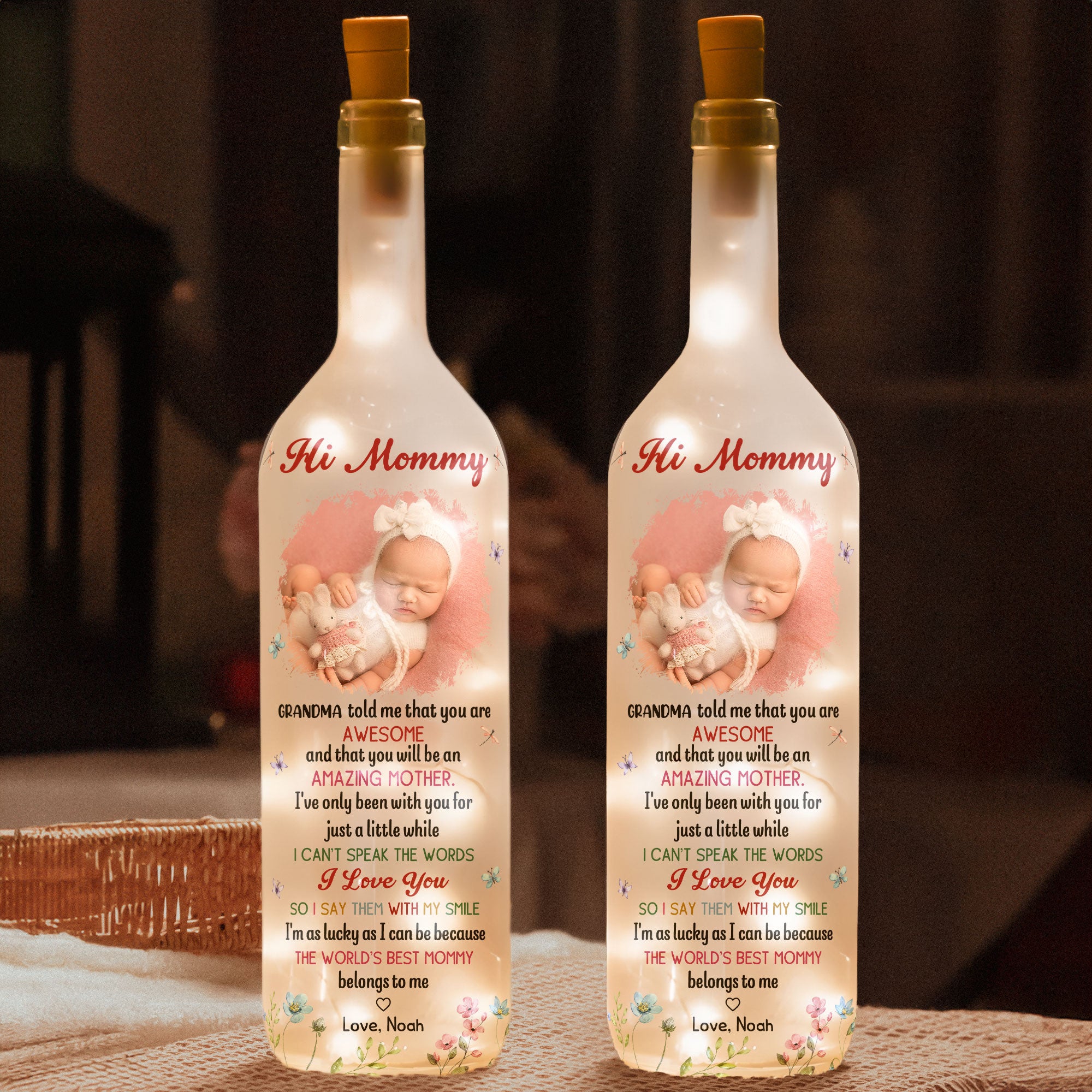 The World's Best Mommy Belongs To Me - Personalized Bottle Lamp is a heartfelt way to celebrate the life-changing moments of parenthood and grandparenthood. Featuring a custom baby photo, and baby name, this decorative bottle lamp beautifully commemorates the day a family grew in love and joy.