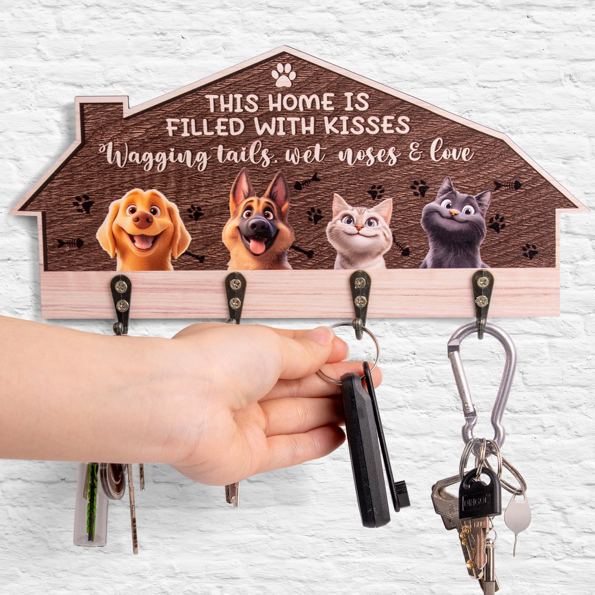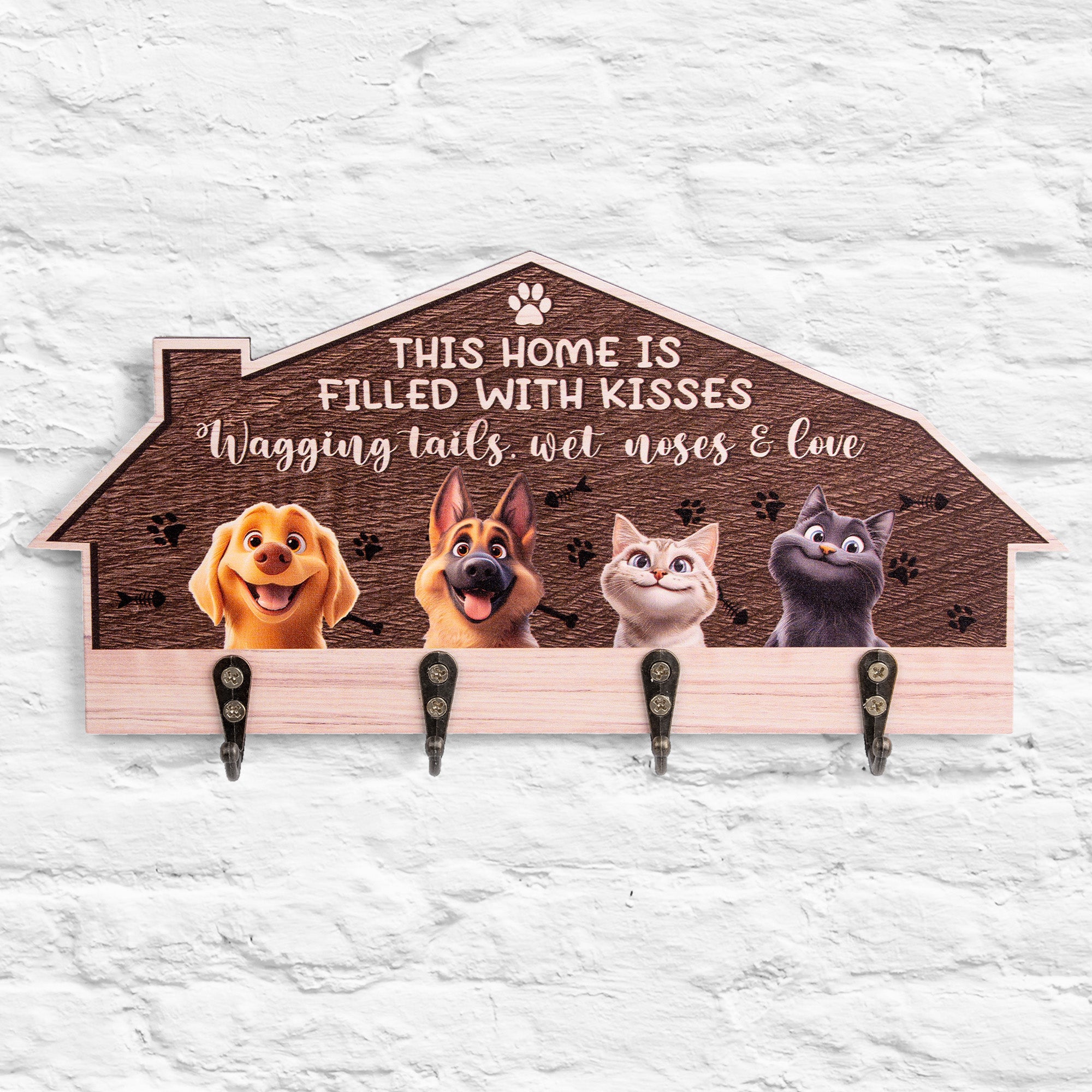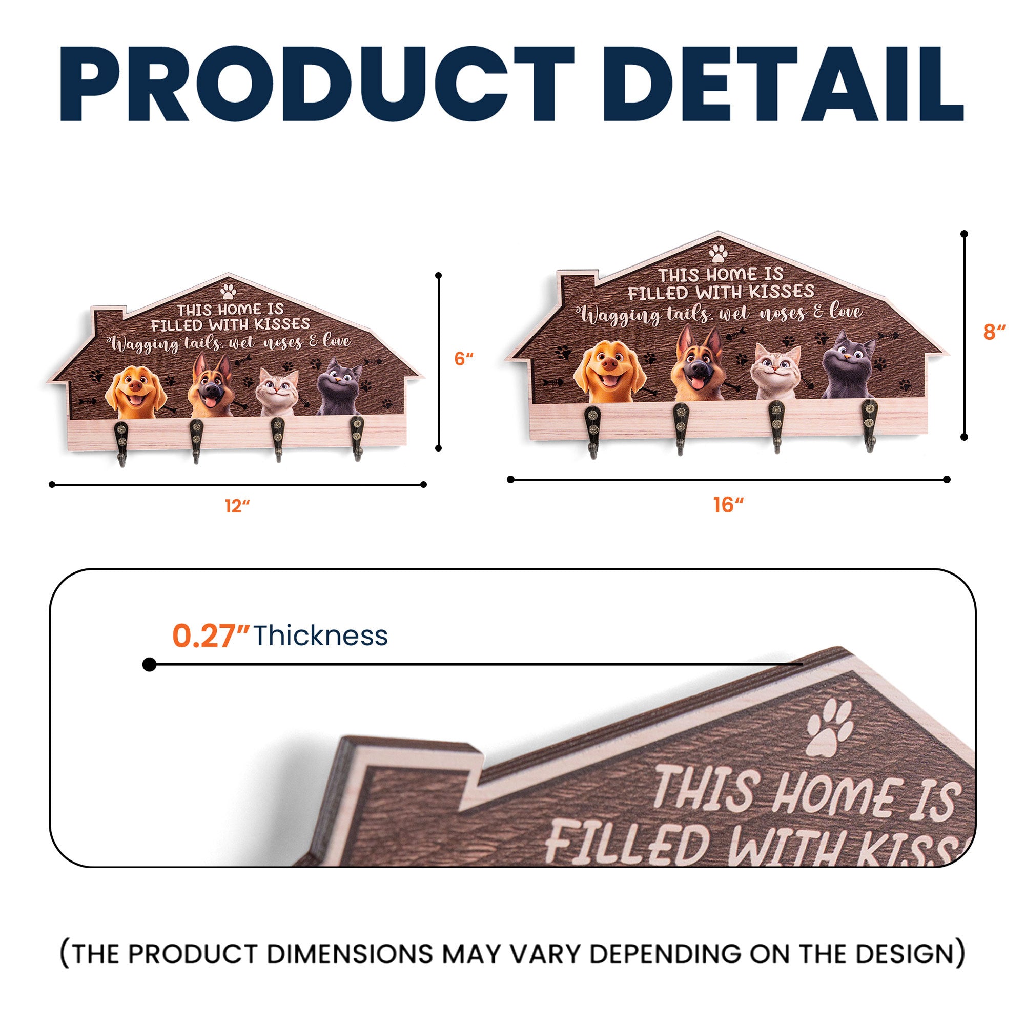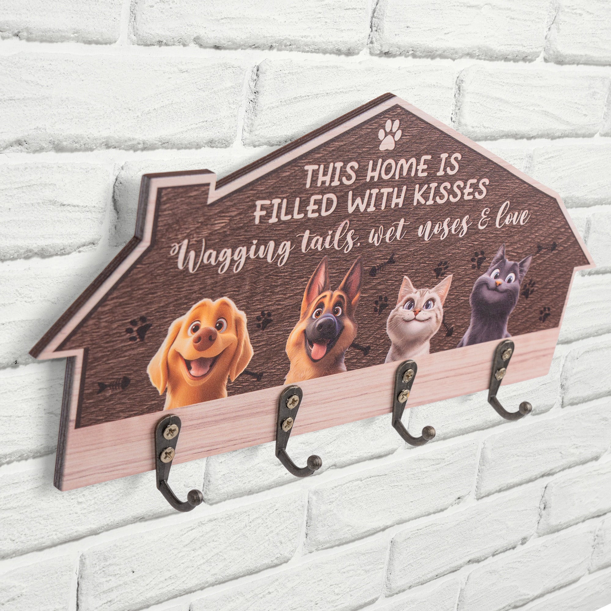 Welcome to a home where love abounds! Our "This Home Is Filled With Kisses, Wagging Tails, Wet Noses, and Love" key holder is the perfect accessory for pet lovers who cherish the joy that furry friends bring to their lives. Crafted with care, this charming key holder not only keeps your keys organized but also adds a warm, welcoming touch to your entryway.