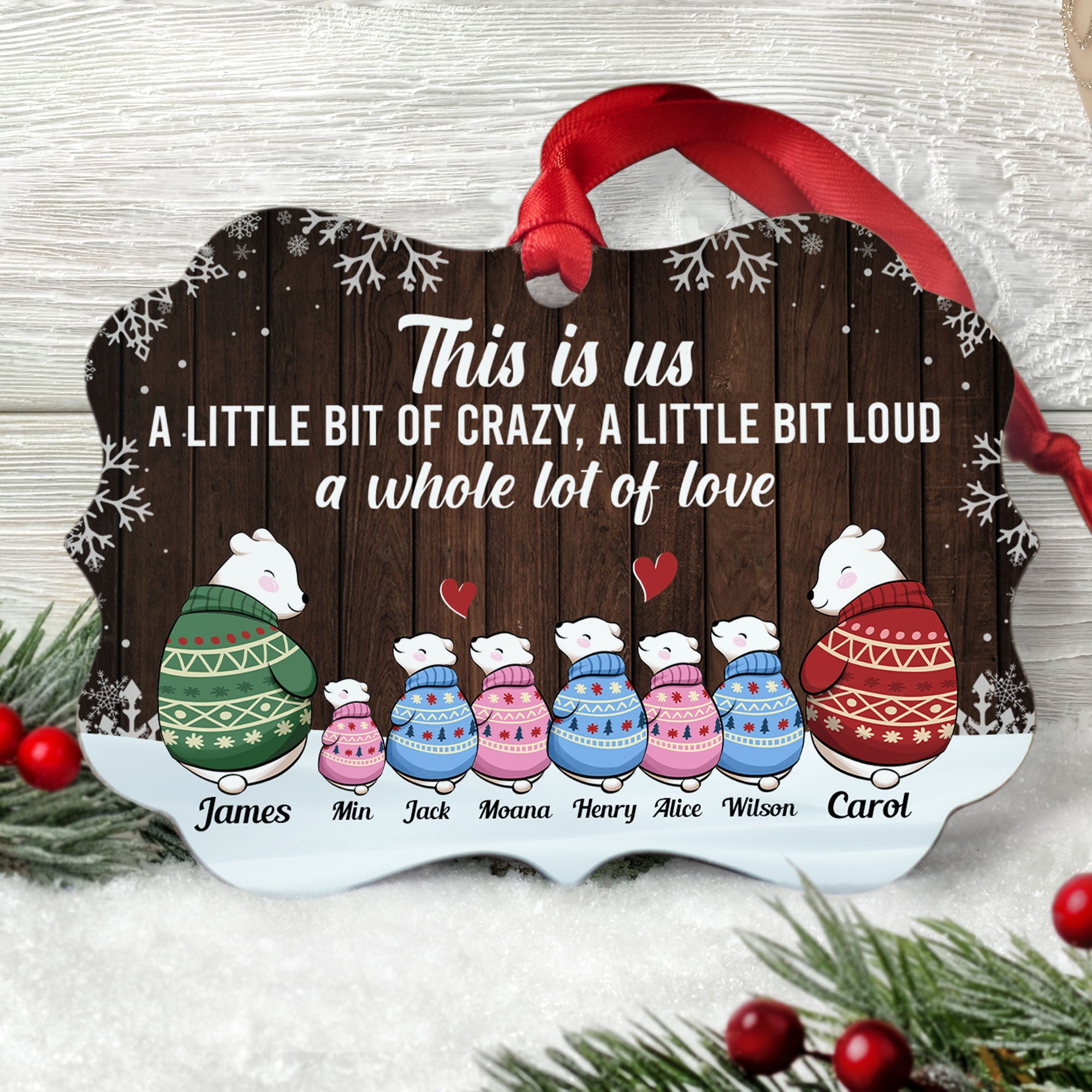 Celebrate your family's growth and new beginnings with a special custom ornament version for Christmas. This ornament can be personalized with the names of each family member - making it a treasured memento year after year.