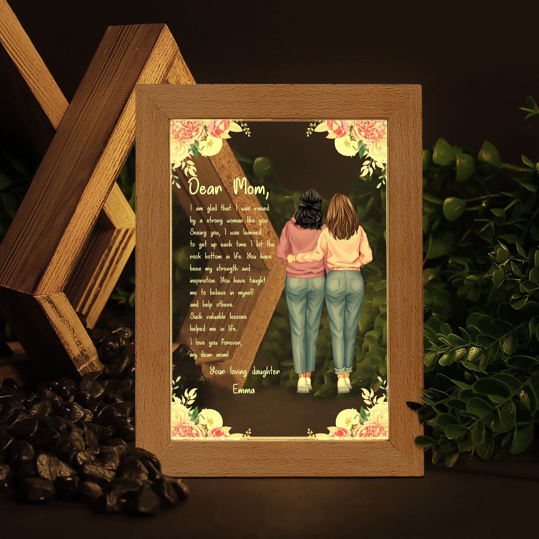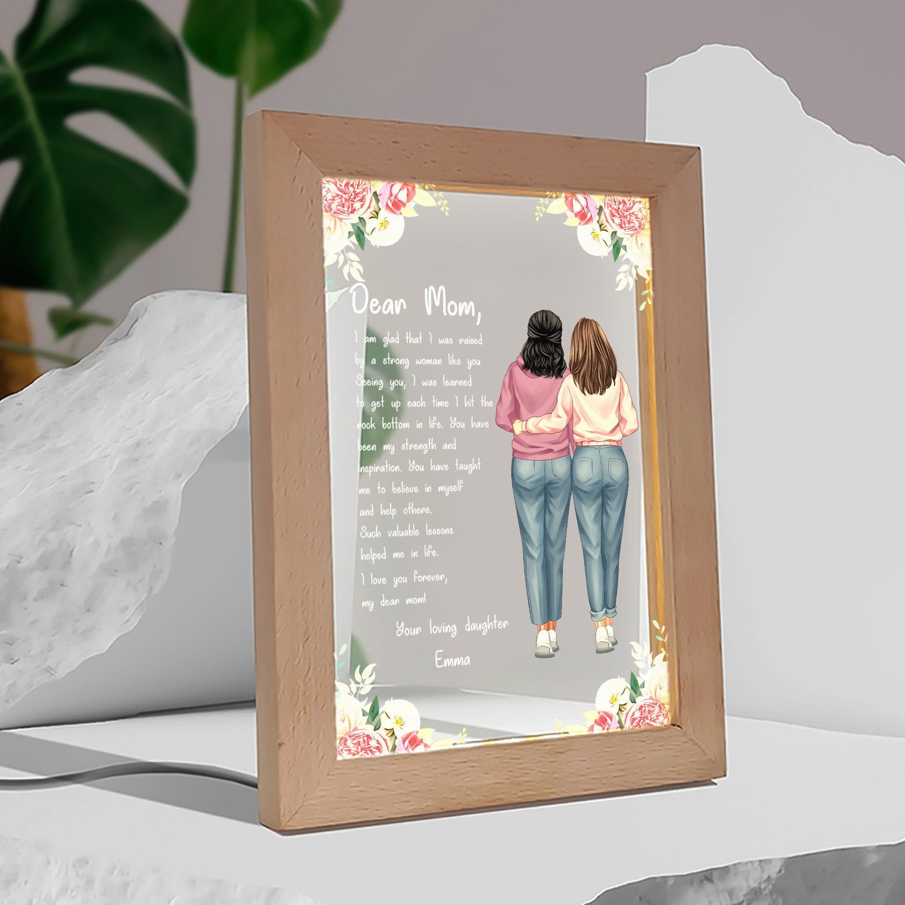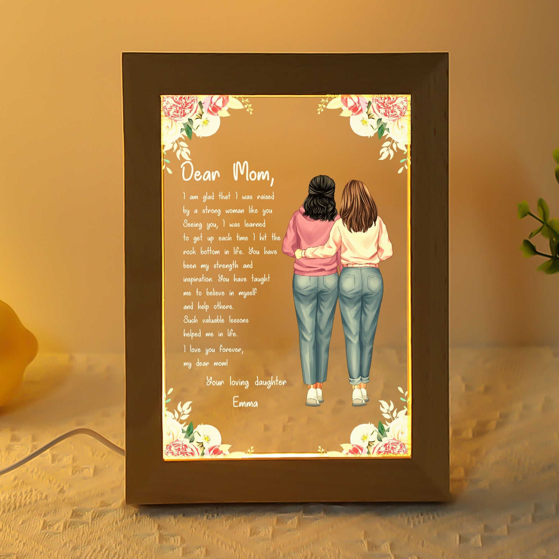 For the beloved mom who always has a warm hug ready, custom night light makes a heartfelt gift. This sentimental mom-themed art will remind her of the wonderful memories you share. She'll smile every time she sees it displayed in her home. Give as a Mother's Day gift, birthday gift, Christmas gift, or just because gift to express your gratitude for her nurturing ways. It's a thoughtful way to show how much she means to you. With its elegant design and tender personalized details, this night light commemorates her role in your life. A beautiful way to celebrate the remarkable woman you call Mom.