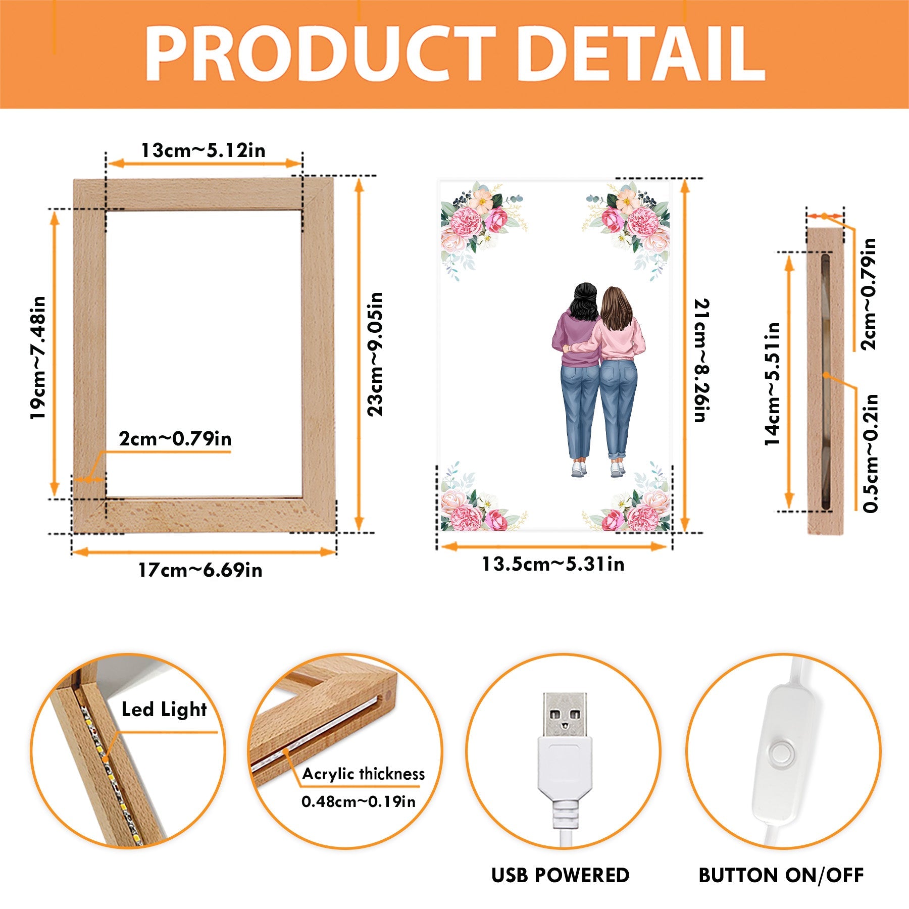 - Package: 01 acrylic plaque + 01 wooden frame + 01 USB Type A.