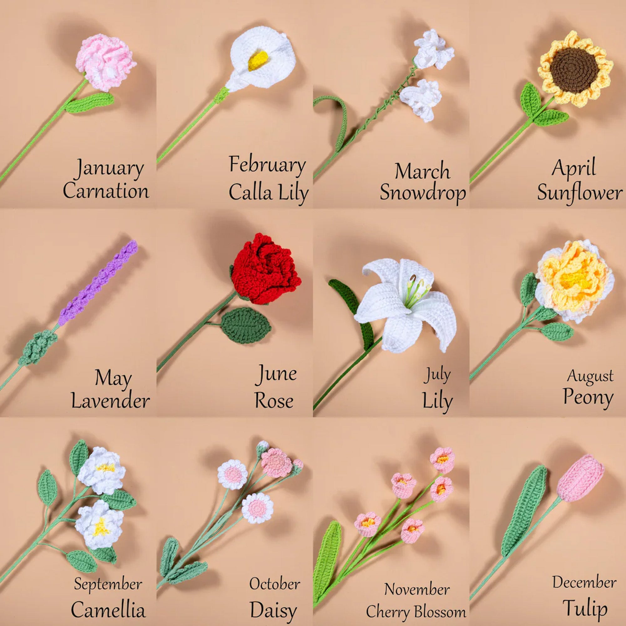 + Handmade Crochet Flowers: Each flower is carefully hand-crocheted, representing the unique birth flower of the month.