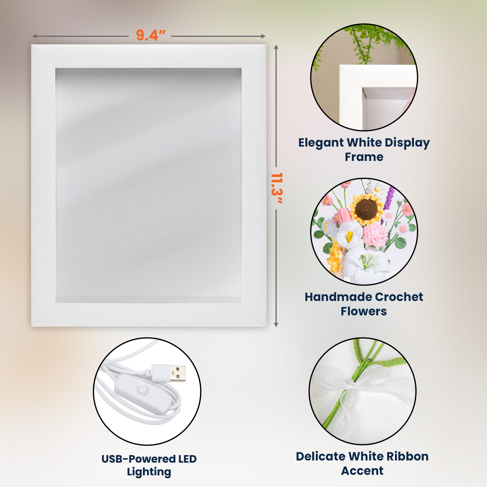 This flower shadow box is an ideal gift for many occasions. Perfect for birthdays, Christmas, anniversaries, graduation, or any special moment that calls for a unique tribute to the bond you share with your daughter. Carefully crafted with love, this product works to make tender moments of gifting more heartfelt. Endowed with our profound care in its creation, we ensure an item befitting the love between a parent and daughter. So, why wait any longer? Illuminate your daughter's life with this one-of-a-kind crochet flower shadow box - a remarkable testament of a parent's love for their daughter. It’s time you added this to your cart and gifted it to your daughter today!