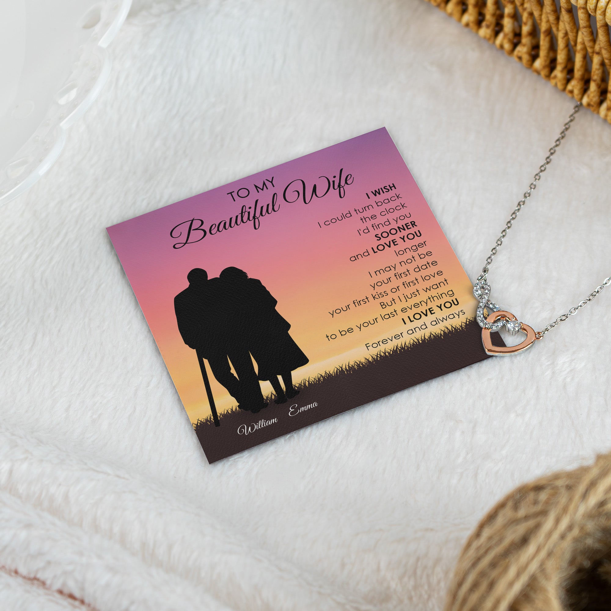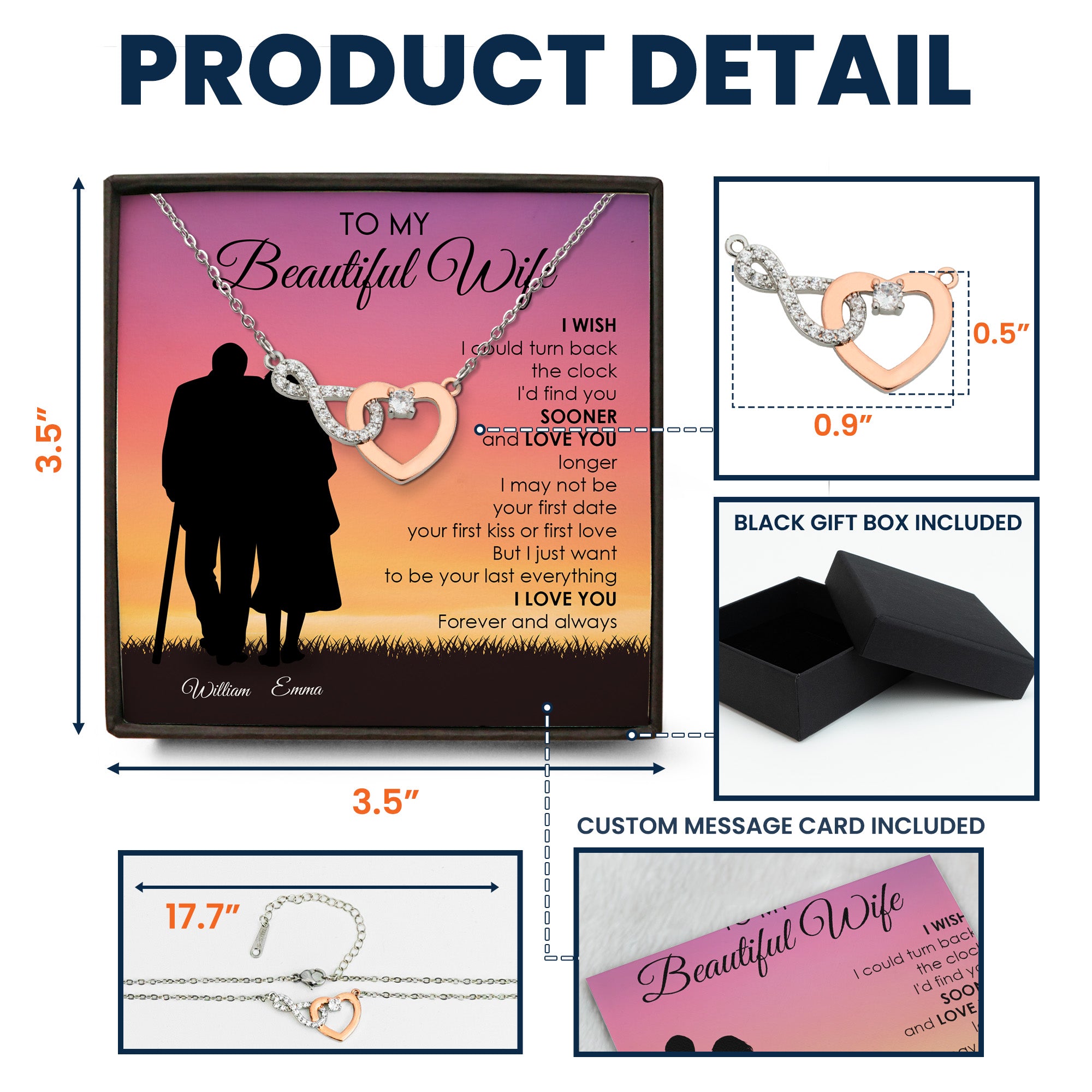 + Shape/pattern: Elegant intertwined heart-shaped pendant with crystal accents. - Gift Packaging: Arrives in a black gift box with a custom message card, making it a ready-to-gift item.