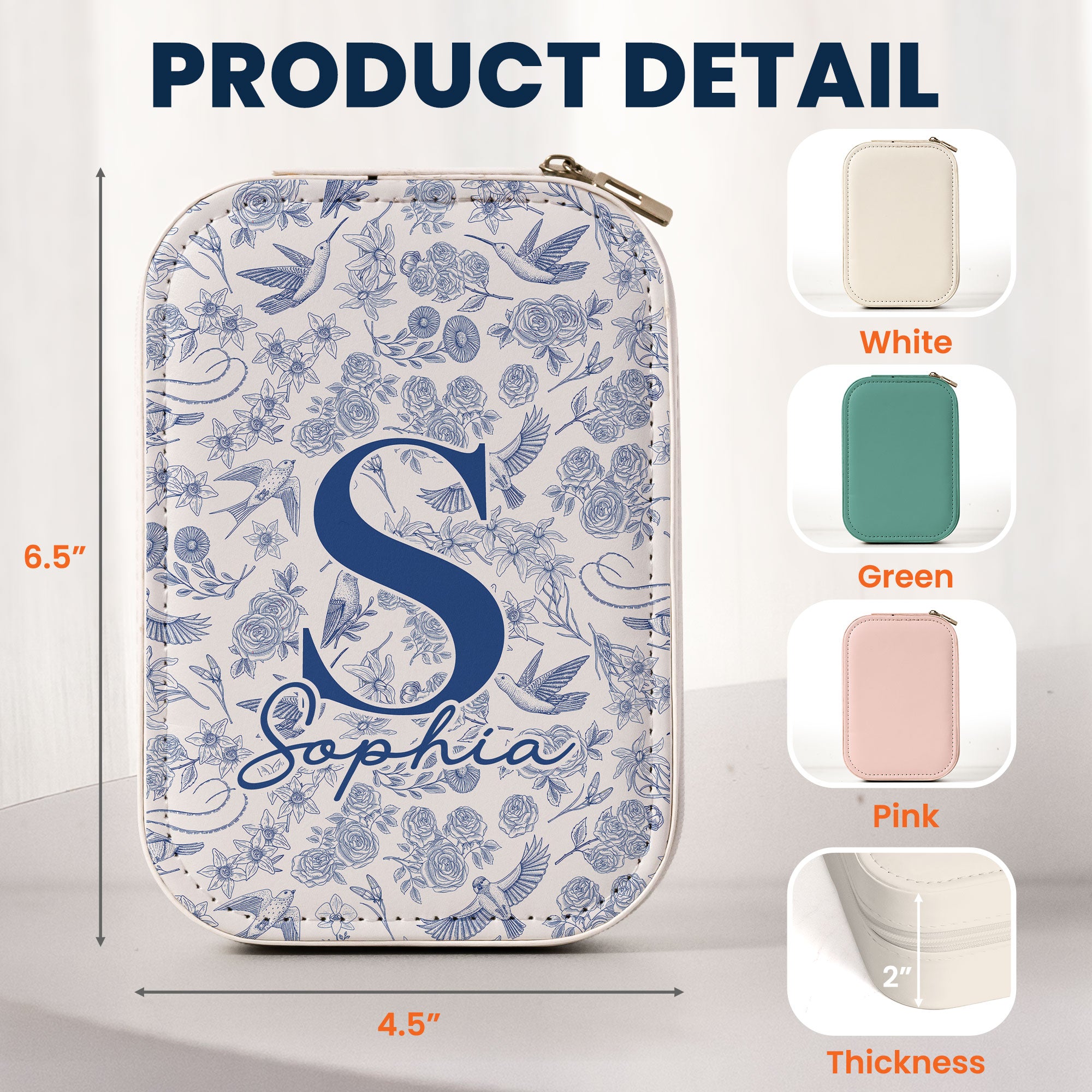 For the individuals who value a fine blend of elegance and functionality, our Toile De Jouy Floral Initial - Custom Makeup Box With LED Mirror fits the bill. As you might expect from a high-class makeup box, it provides a neat and classy look, which does not just sit well on your dressing table but also becomes a beautiful companion to carry around. But, that’s not all. It lights up with an integrated LED mirror, which is perfect for those quick touch-ups while on-the-go. Whether you're gifting it to yourself or someone special, this makeup box becomes a testament to style, convenience, and everything in between. It's the perfect present for birthdays, Christmas, anniversaries, or any other special occasions that call for an extraordinary gift.
