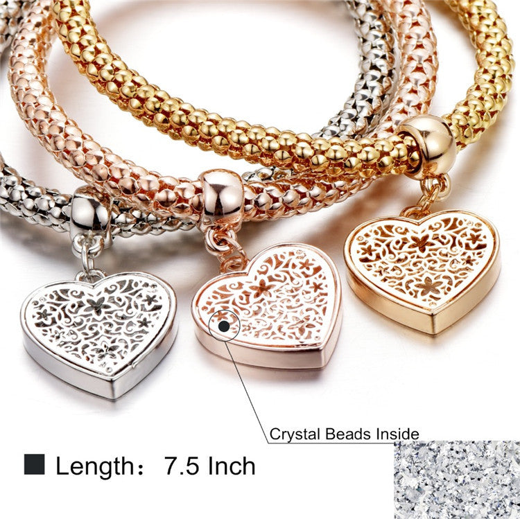Trio Gold Filigree Hearts Charm Mesh Bracelets Sets