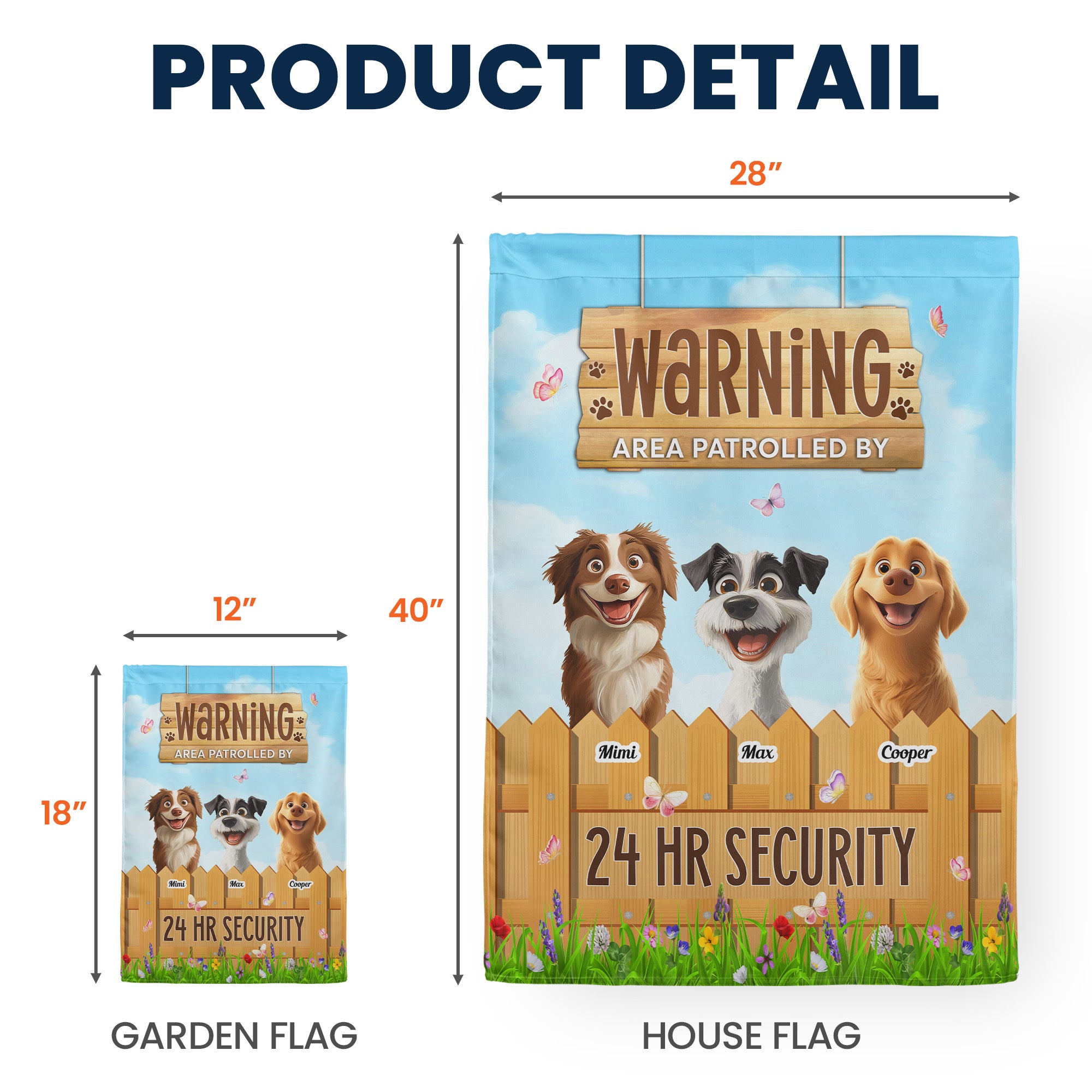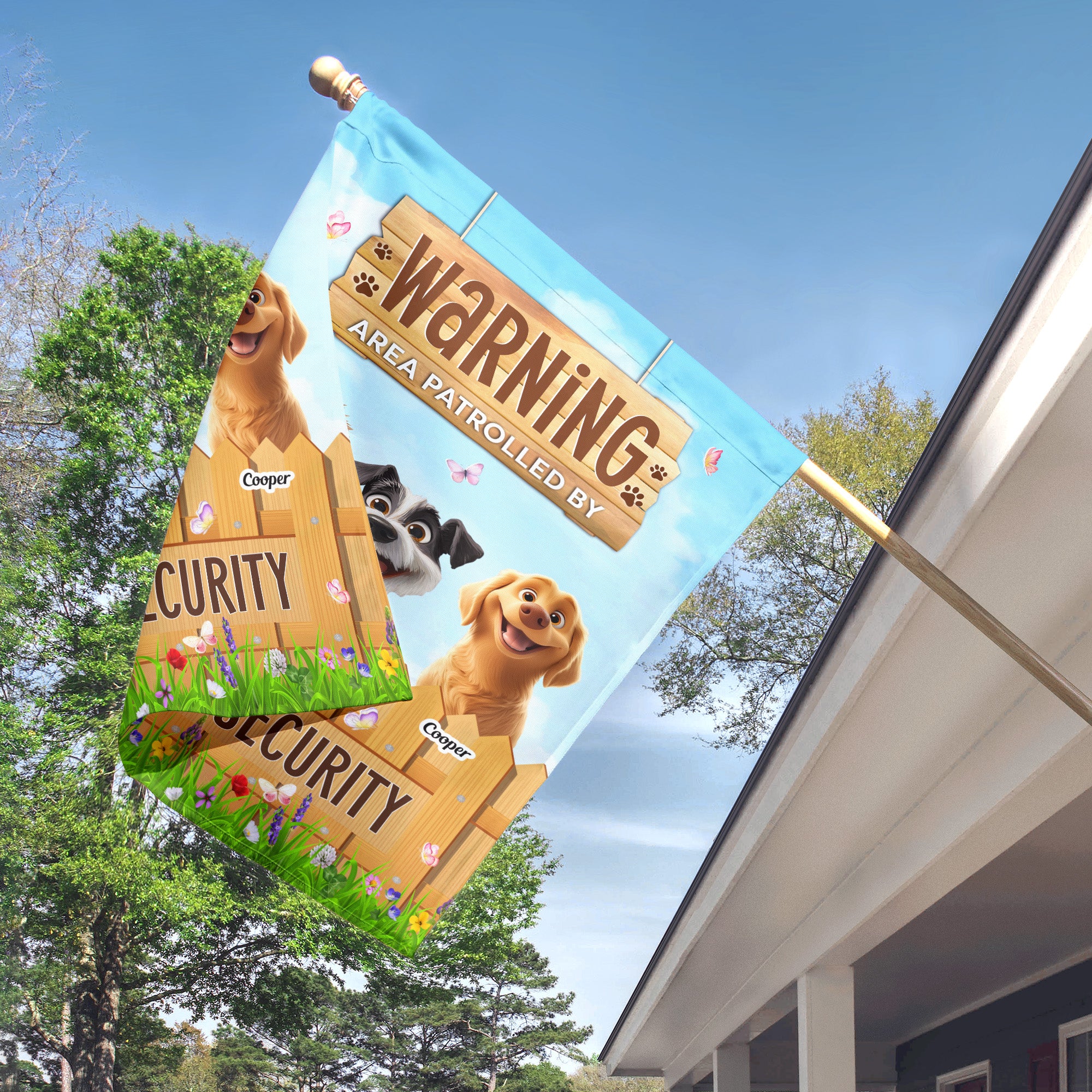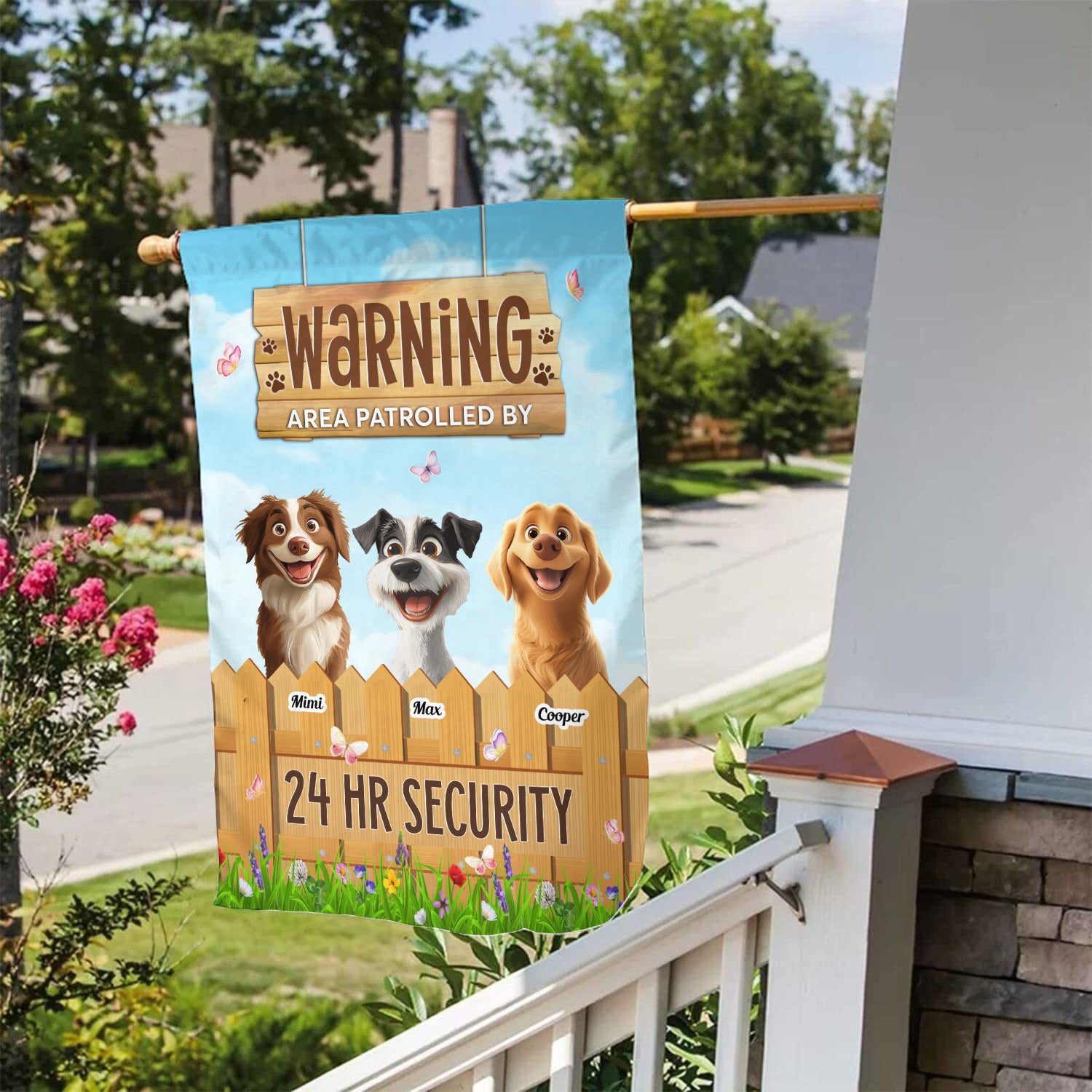 Attention all dog lovers! Add a playful touch to your home or yard with the "Warning: Area Patrolled By 24 HR Security" flag. This fun and eye-catching flag is perfect for showcasing your love for your furry friends while adding a layer of humor and charm to your outdoor space. Designed with vibrant colors and a bold message, it alerts everyone that your property is under the watchful eye of your loyal canine companions. Whether you're relaxing in your backyard or welcoming guests to your home, this flag not only signals security but also reflects your passion for dogs. It’s an ideal gift for dog lovers who appreciate a good laugh and want to keep their space uniquely theirs. Make a statement and celebrate your love for dogs with this delightful flag!