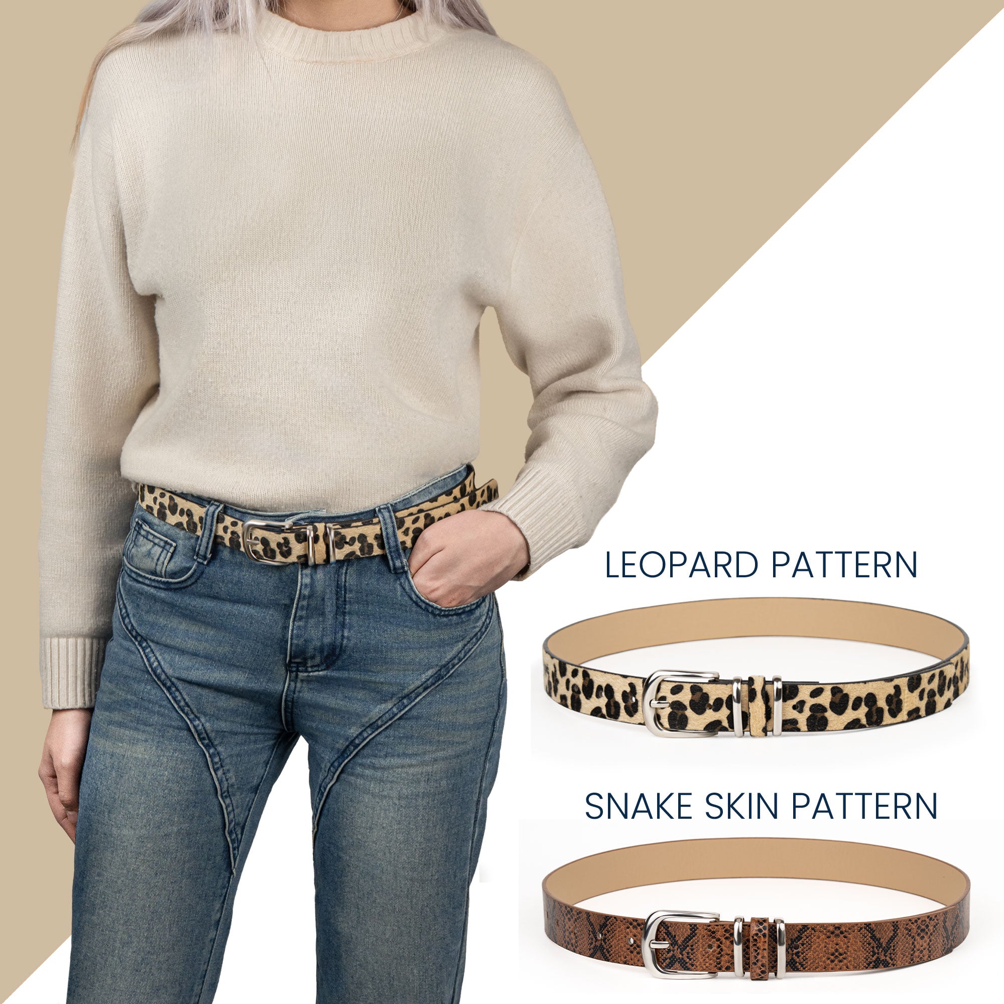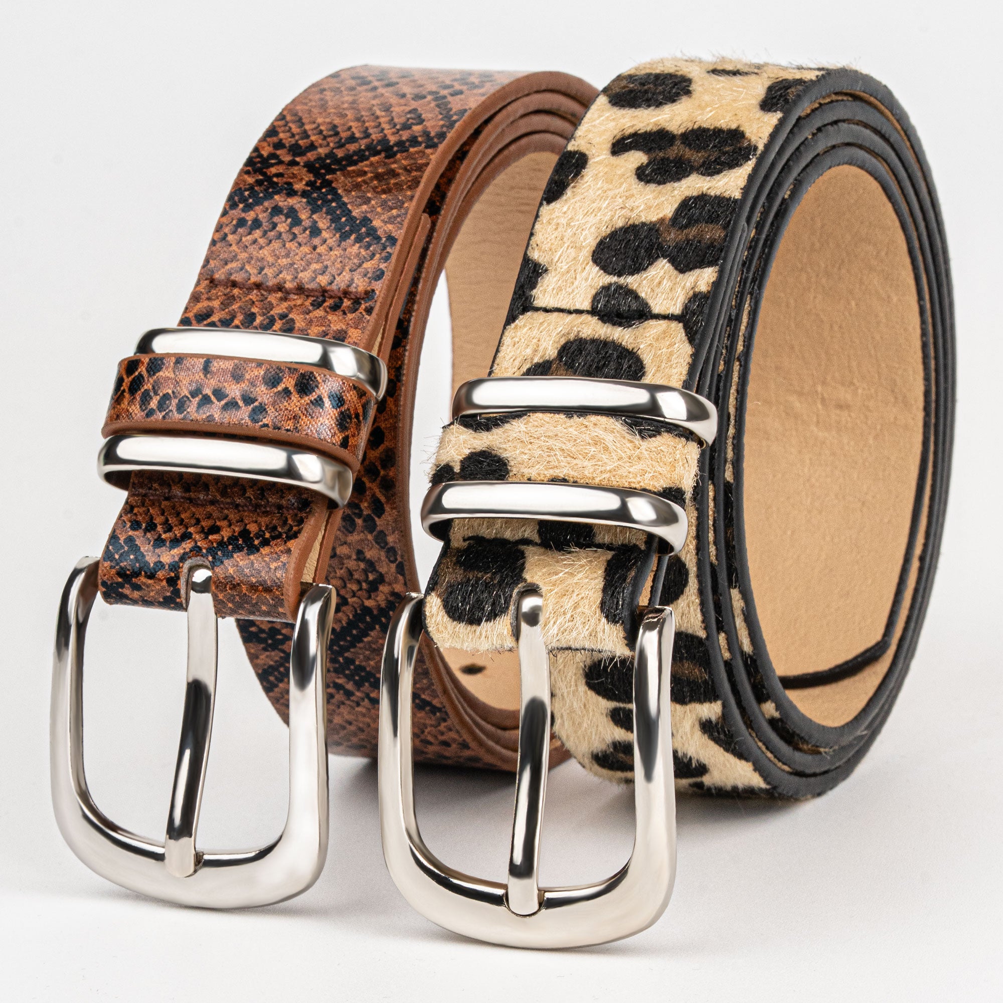 - Material: Made of high-quality PU leather, this belt is durable and lightweight. Featuring a sleek single-loop metal buckle and an eye-catching animal pattern, it adds character to any plain ensemble.