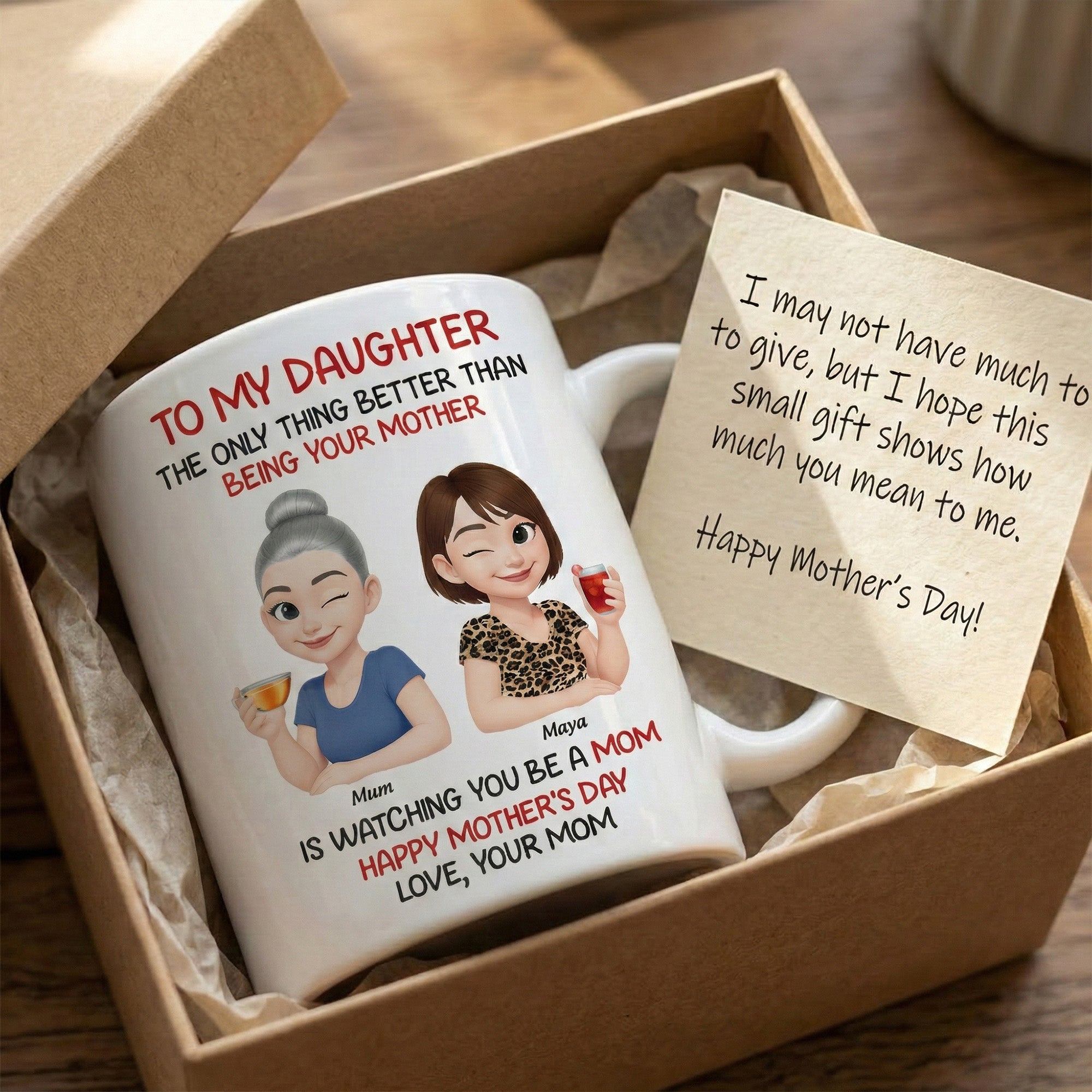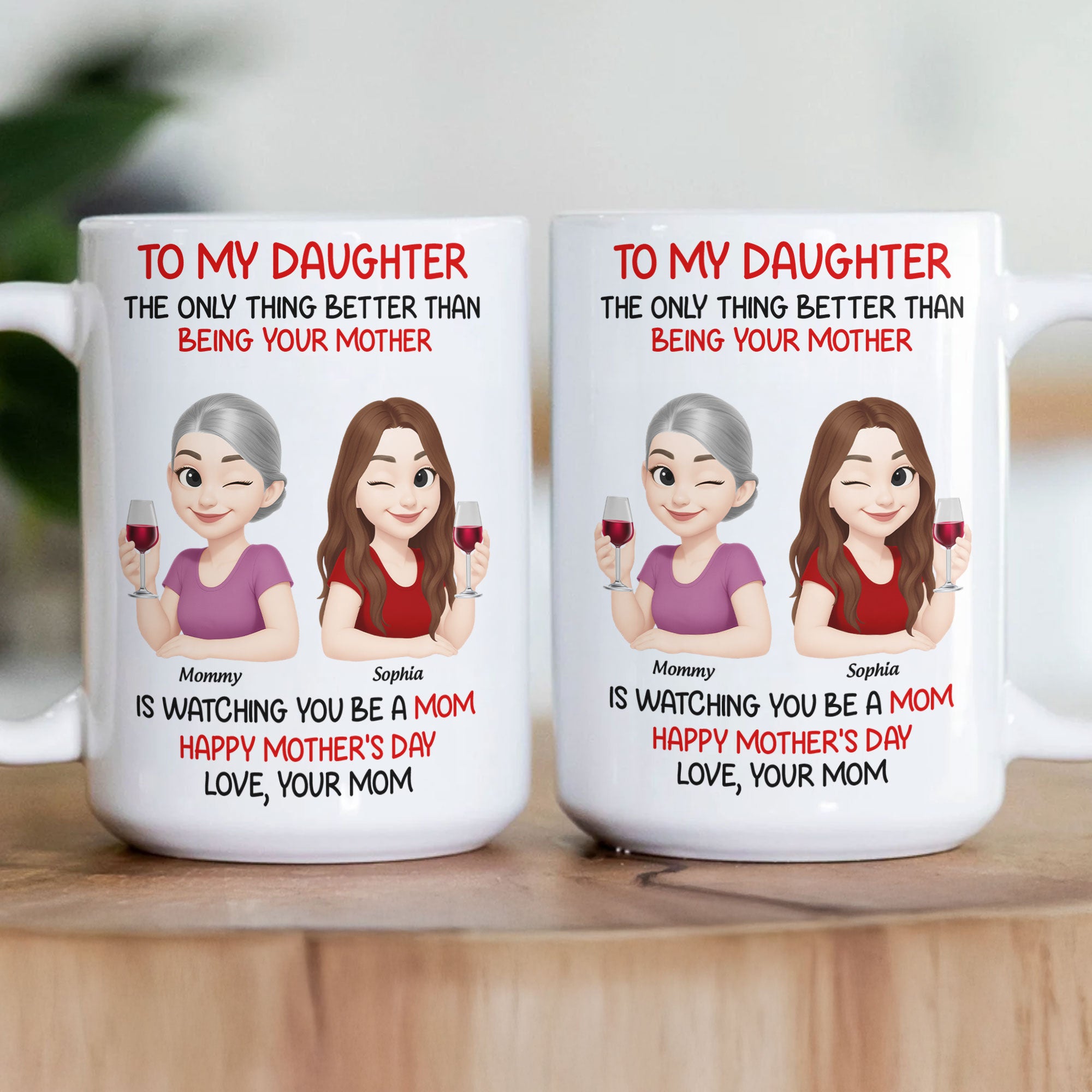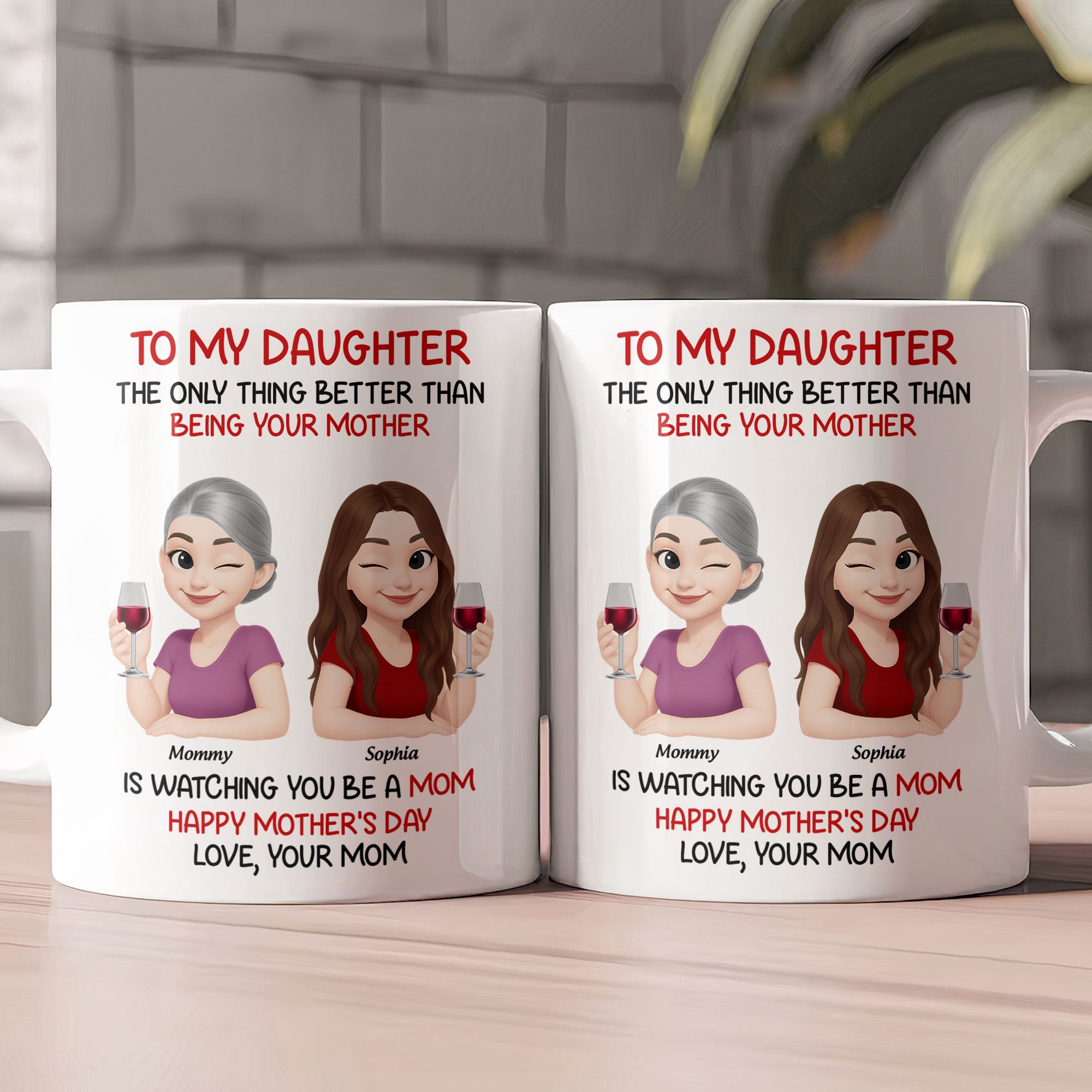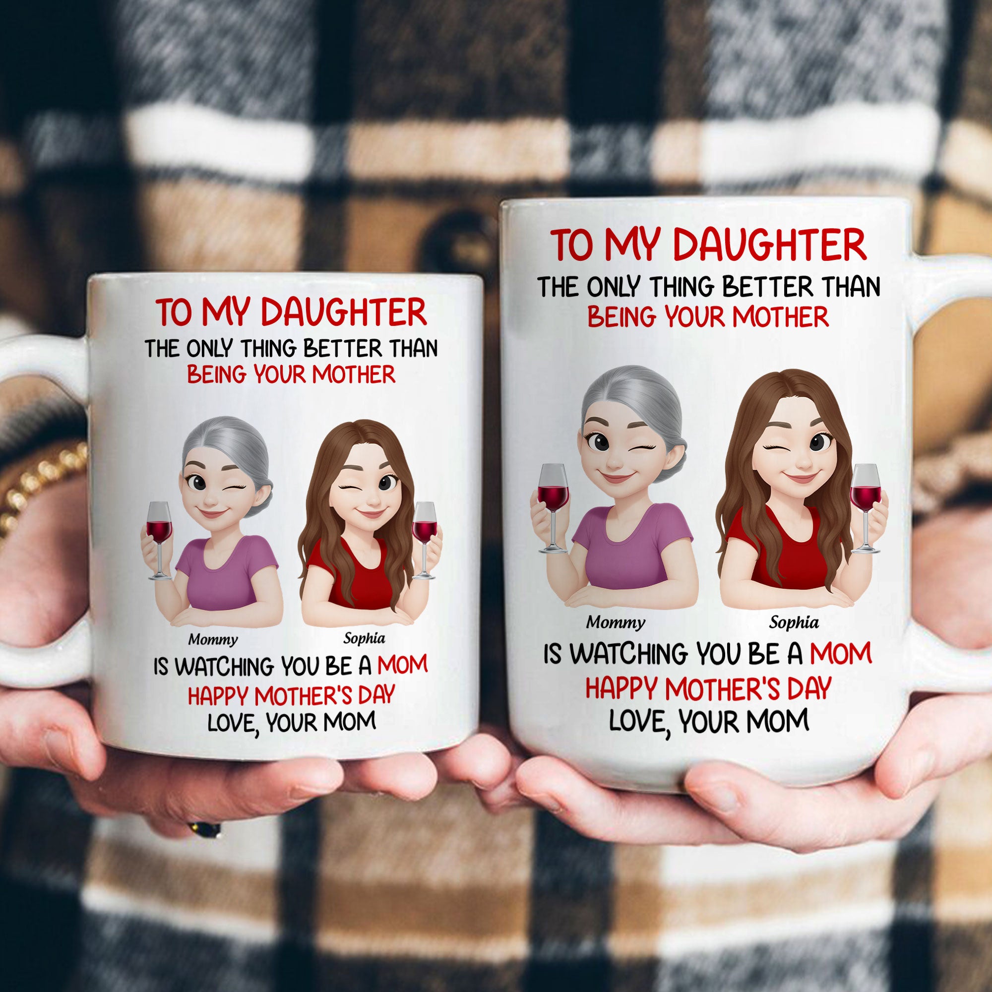 Looking for a touching gift to express your love and admiration to your daughter? Our personalized "Watching You Be A Mom" mug makes a perfect choice! This mug is more than just a daily coffee companion; it's a heartwarming reminder of the special bond between a mother and her daughter. It's an incredible way to celebrate the joy of being a mom and expresses the pride you feel watching your daughter thrive in motherhood.