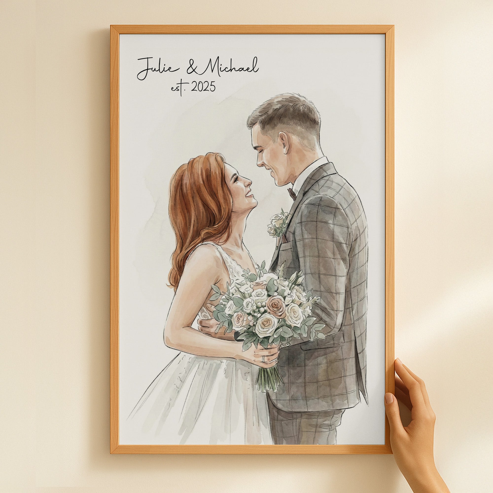 Our Watercolor Portrait Couple's First Anniversary Valentine's Day Poster is a personalized gift that creates a lasting memory. It's perfect for the couple in your life who cherishes those special moments. Imprint your favorite photo into a beautiful watercolor portrait poster and bring it to life. It encapsulates sentimentality and captures the essence of cherished memories, making it a lovely gift for family members and couples alike. This gift is perfect for anniversaries, making it a timeless memento.