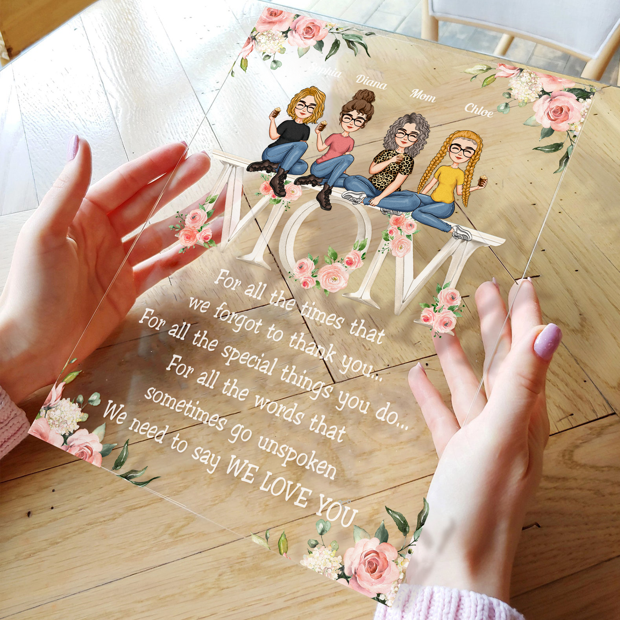 Make mom feel special with a personalized acrylic plaque to celebrate her one-of-a-kind spirit! This unique plaque features her name prominently displayed in an elegant script font. This custom plaque is perfect for displaying in mom's bedroom, office, or anywhere she wants to proudly showcase it. It's a wonderful gift for Mother's Day, mom's birthday, Christmas, or any time you want to make her feel appreciated. She'll be touched by the meaningful personalized message that she can cherish for years to come. For daughters, sons, husbands, or anyone who wants to make mom feel special, this personalized acrylic plaque is a memorable gift. There's no better way to show mom how much you care than with a personalized gift made just for her. This plaque is sure to make her smile every time she sees it.