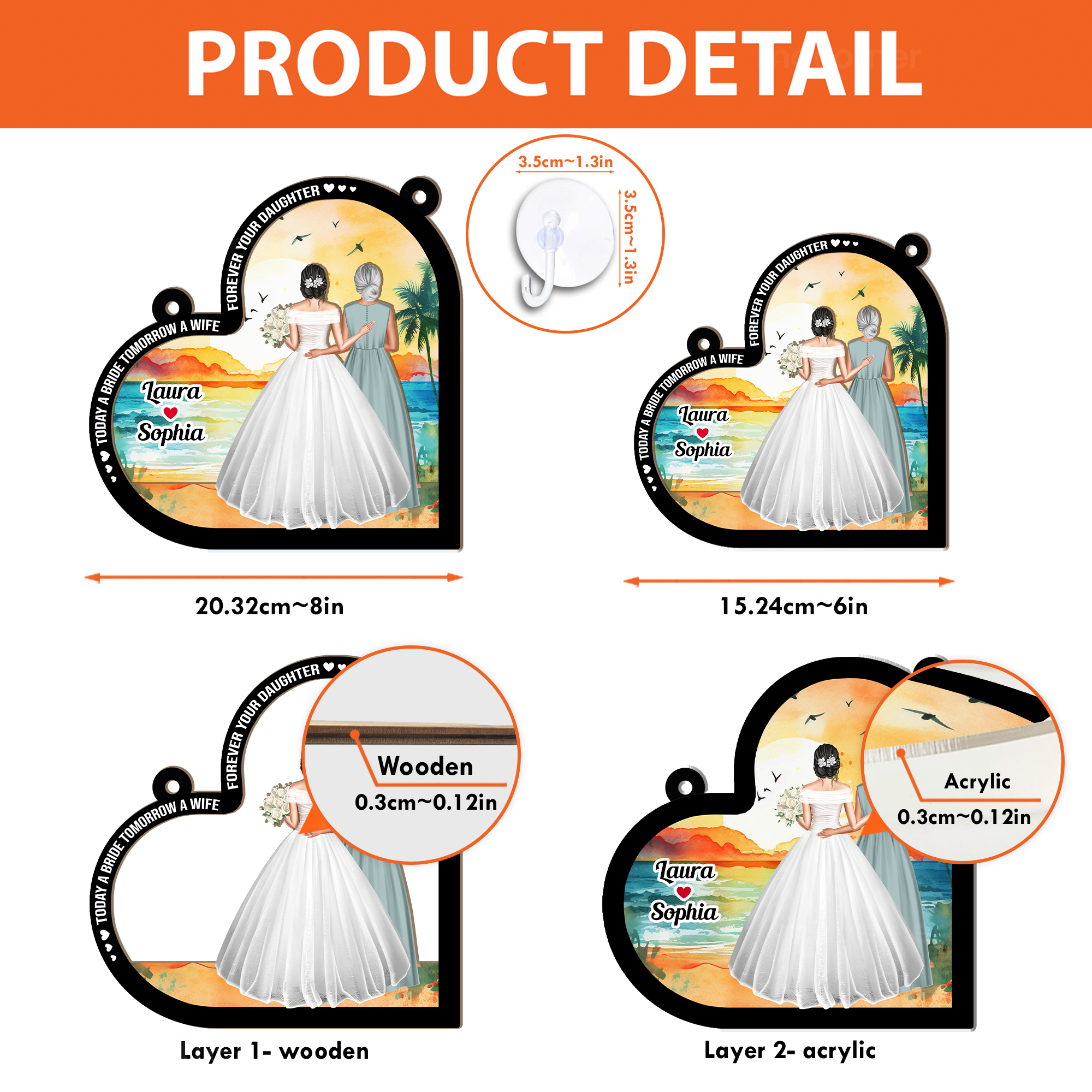 Illuminate your mother’s world with our Personalized Window Hanging Suncatcher Ornament, a radiant and heartfelt gift from the bride on her wedding day. This stunning ornament captures the light beautifully, symbolizing the love and gratitude you feel for your mom. Perfectly personalized, it will serve as a lasting reminder of the special bond you share. Give your mom a gift that reflects the light and love she has always brought into your life with this Personalized Window Hanging Suncatcher Ornament. Order now to create a beautiful and meaningful present that she will treasure forever.