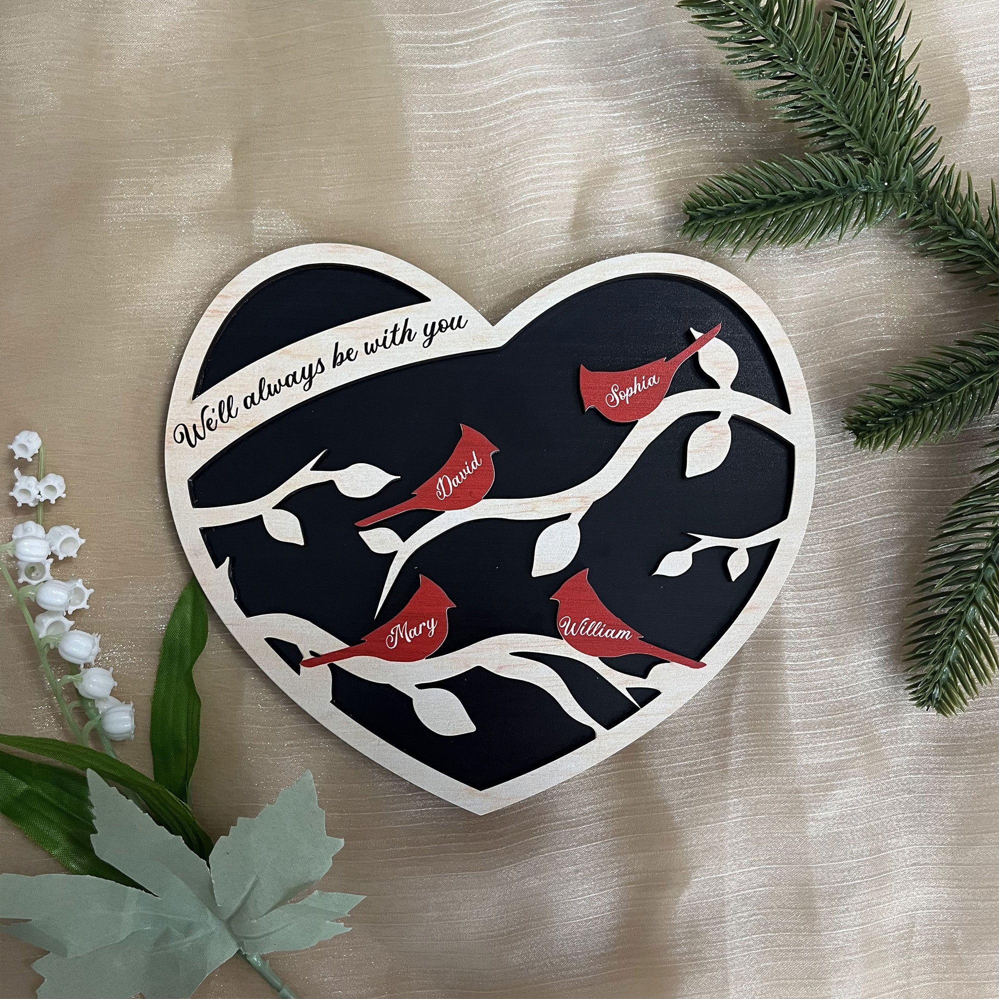 Discover the perfect gift for family members with our Personalized Shaped 2 Layers Wooden Plaque - a heartfelt way to commemorate special moments and keep cherished memories alive. With the product message "We'll Always Be With You," this thoughtful memorial gift serves as a constant reminder of the everlasting bond shared with loved ones, even in their absence. The two-layer wooden design adds a unique touch, allowing for personalized engravings that capture the essence of your most treasured moments. Make this holiday unforgettable with a gift that symbolizes enduring love and companionship.