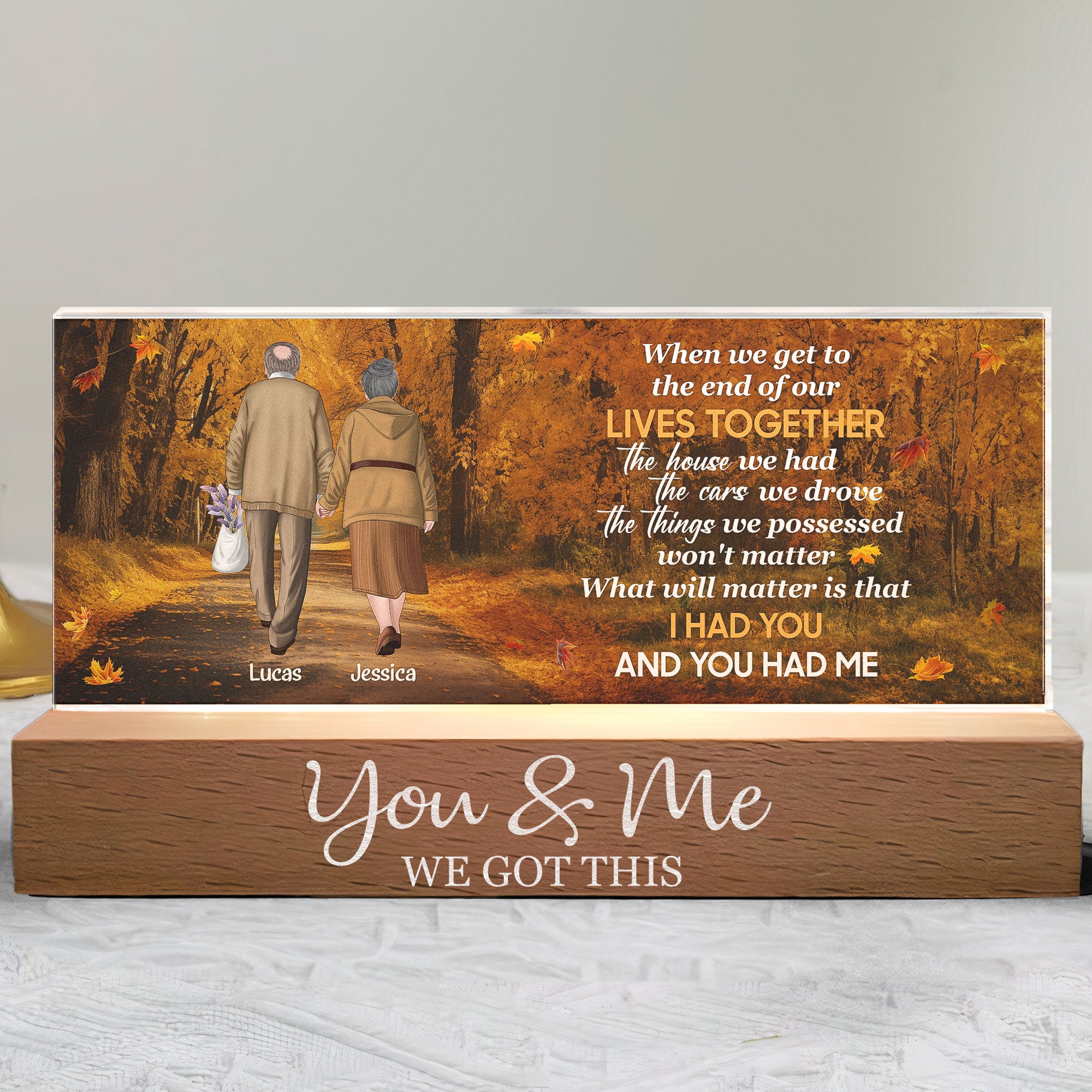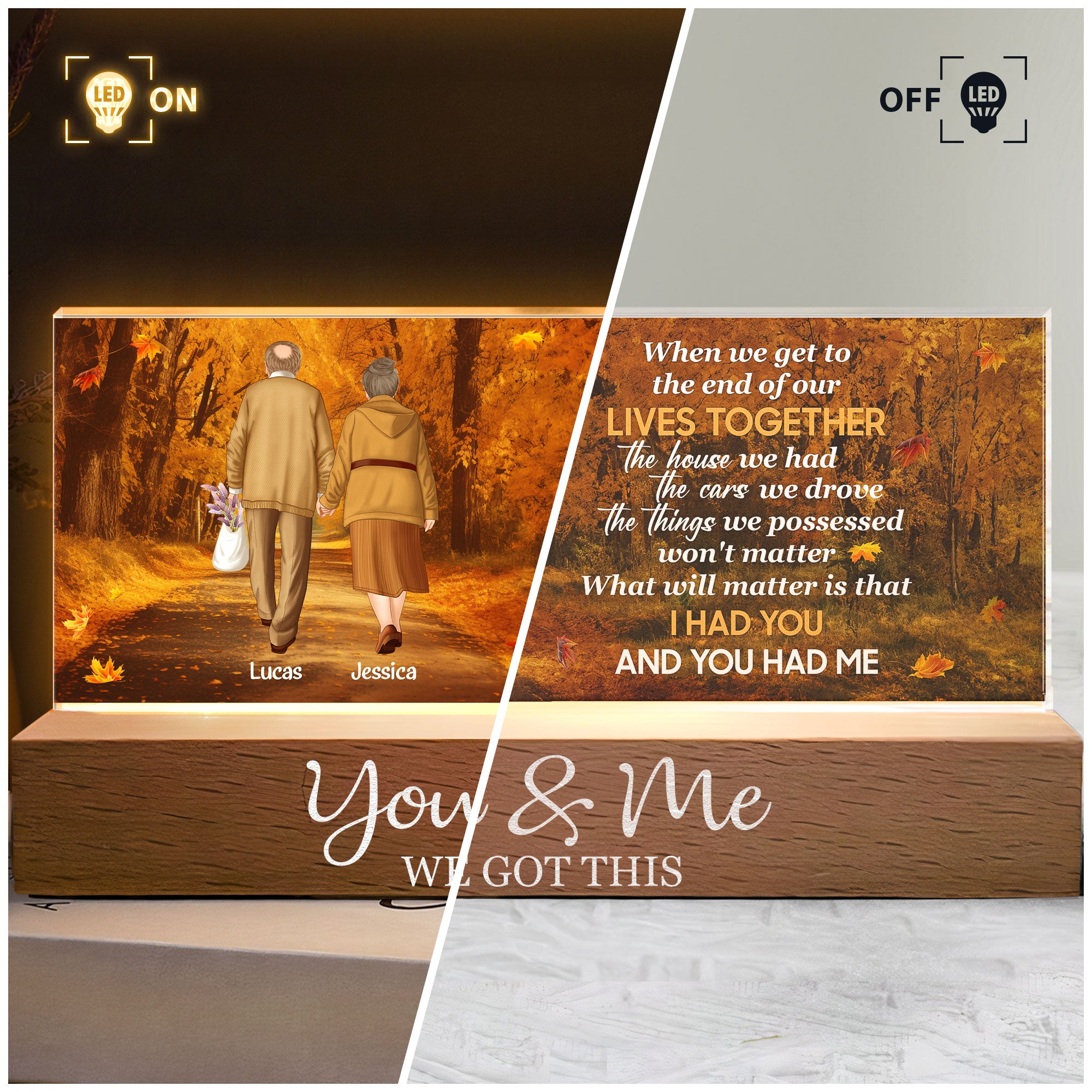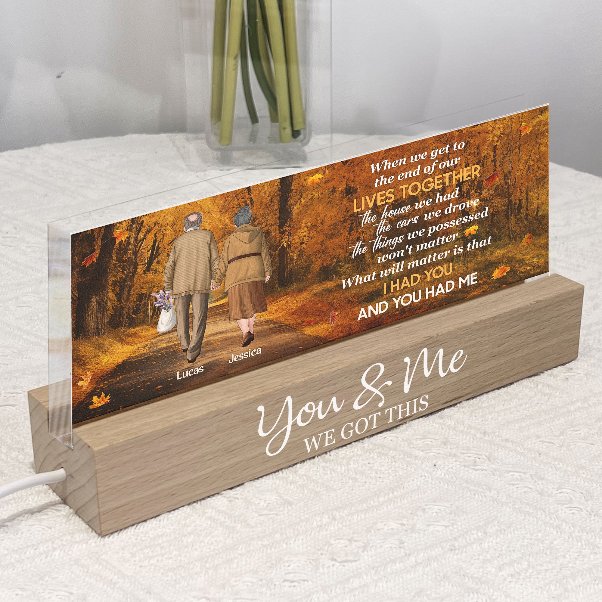 Illuminate your love with our Personalized LED Night Light, specially designed for couples who have stood the test of time. Featuring a cherished photo and the heartfelt quote "You & Me, We Got This," this night light serves as a beautiful reminder of the strength and bond you share. It's perfect gift for Anniversaries, Birthdays, Valentine’s Day, Retirement Celebrations, Christmas. Whether placed on a bedside table, in the living room, bedroom, or any cherished spot in your home, this Personalized LED Night Light serves as a constant reminder of your unwavering commitment and love. Order now to create a timeless piece that captures the essence of your journey together.