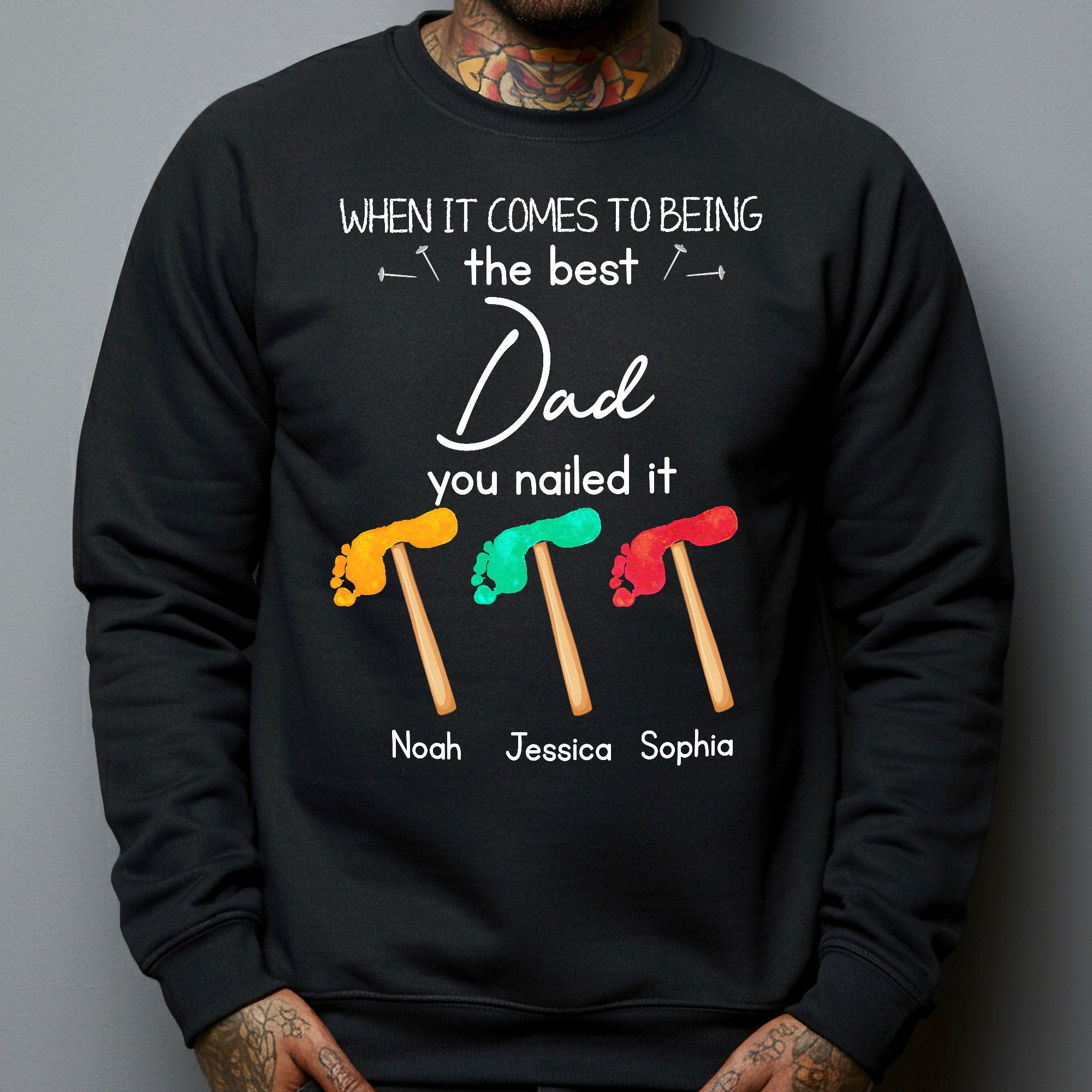 Celebrate the special bond of love with our unique Personalized Shirt, specifically designed to convey the heartfelt message, When It Comes To Being The Best Dad, You Nailed It! It is not only a charming tribute to the splendid relationship shared amongst family members but also an ideal expression of how reminiscent a dad and grandpa can be. Crafted with care, this unique shirt serves as an affectionate token marking the incredible bond you share with your beloved family patriarch. Perfect for Father's Day, birthdays, Christmas, anniversaries, or any occasion, to truly express how much he means to you.