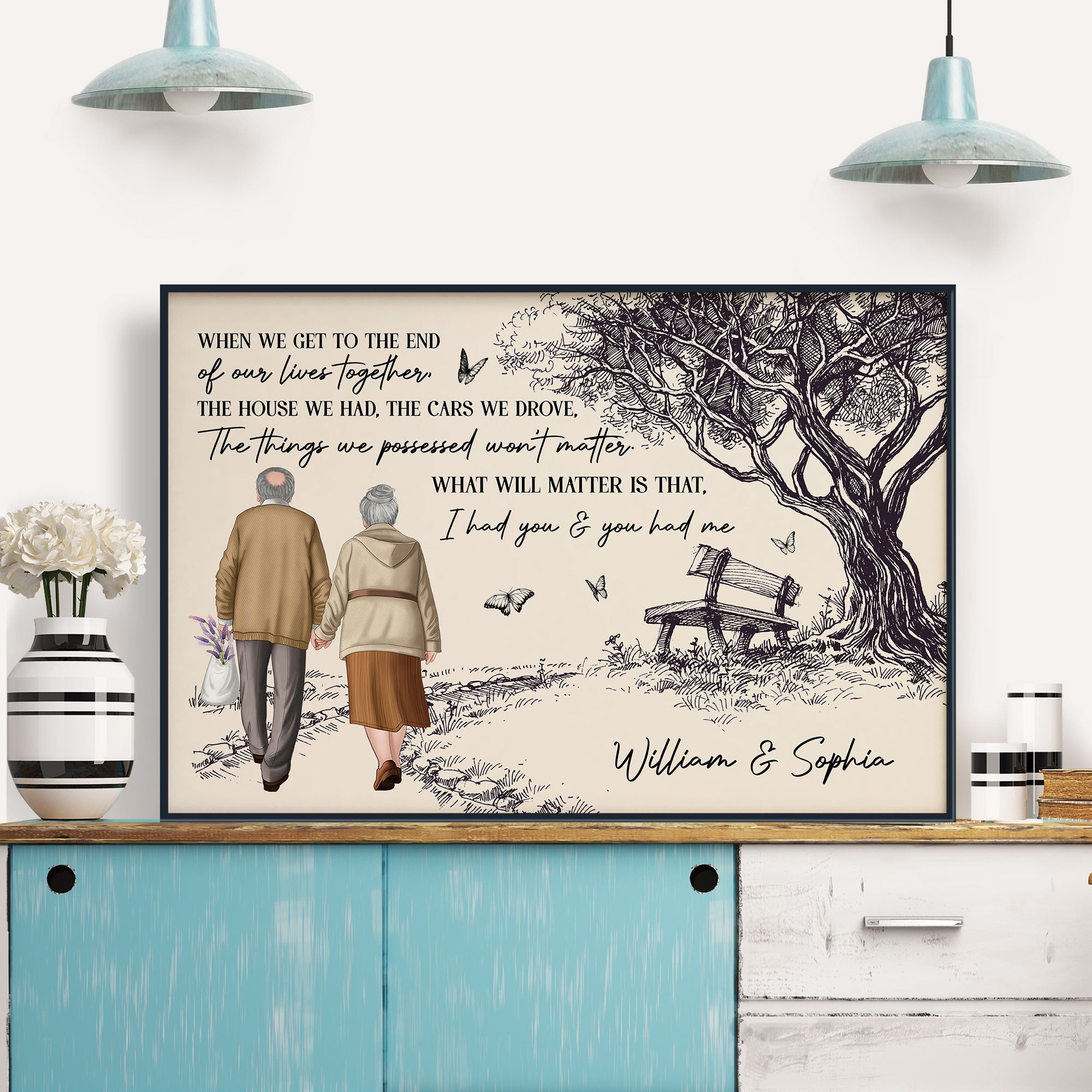 "When We Get To The End Of Our Lives Together" - Personalized Poster is the perfect gift for couples. This personalized couple print is ideal for Valentine's Day, anniversaries (5th, 10th, 15th, 20th, 25th, 50th, 55th, 60th, 65th, so on), Christmas, birthdays, and Thanksgiving. Celebrate the enduring love between you and your partner with this thoughtful and sentimental gift. Whether it's for him, her, boyfriend, girlfriend, or best friends, this poster print art captures the essence of your relationship, making it a cherished keepsake for years to come. Perfect gift for him or her on your special date.