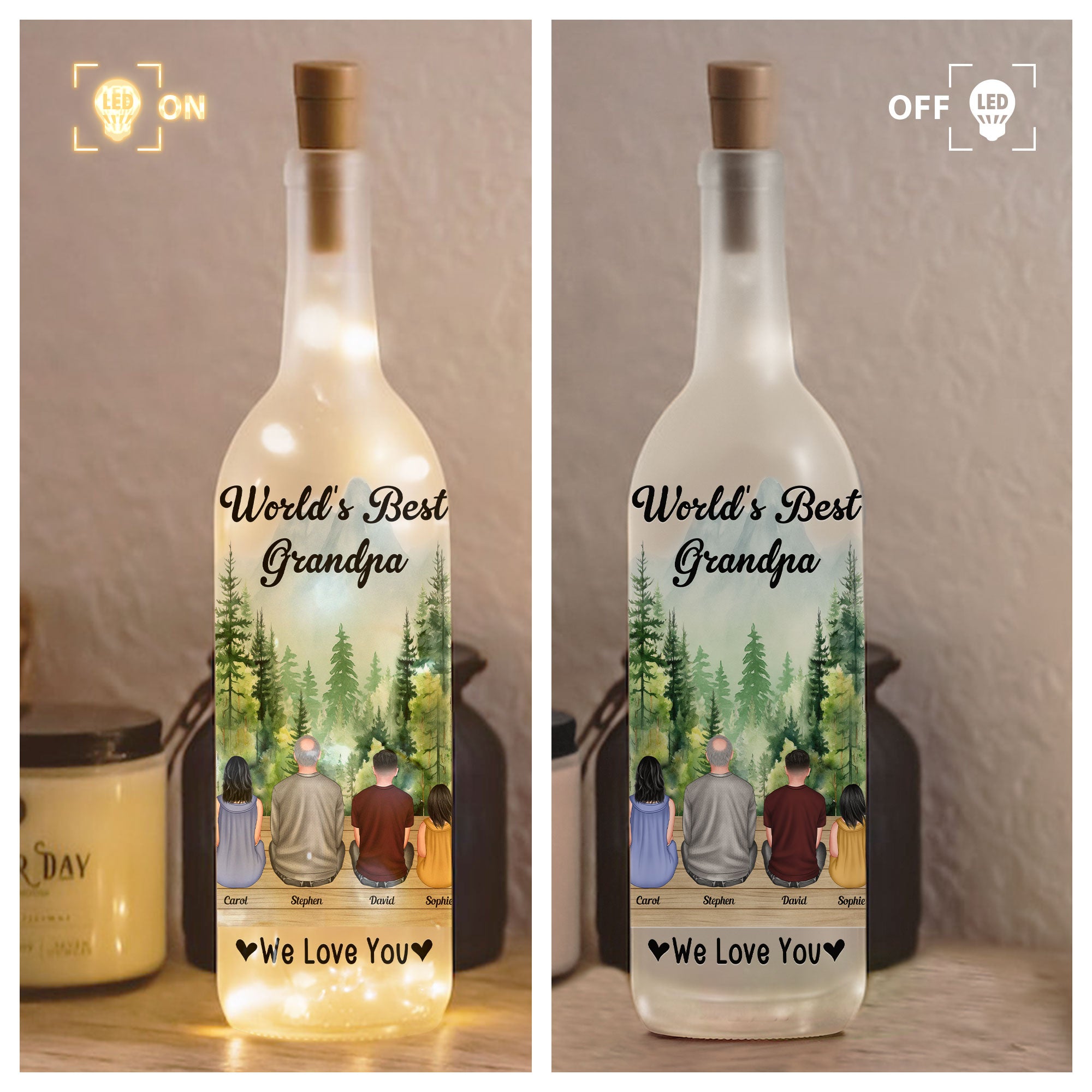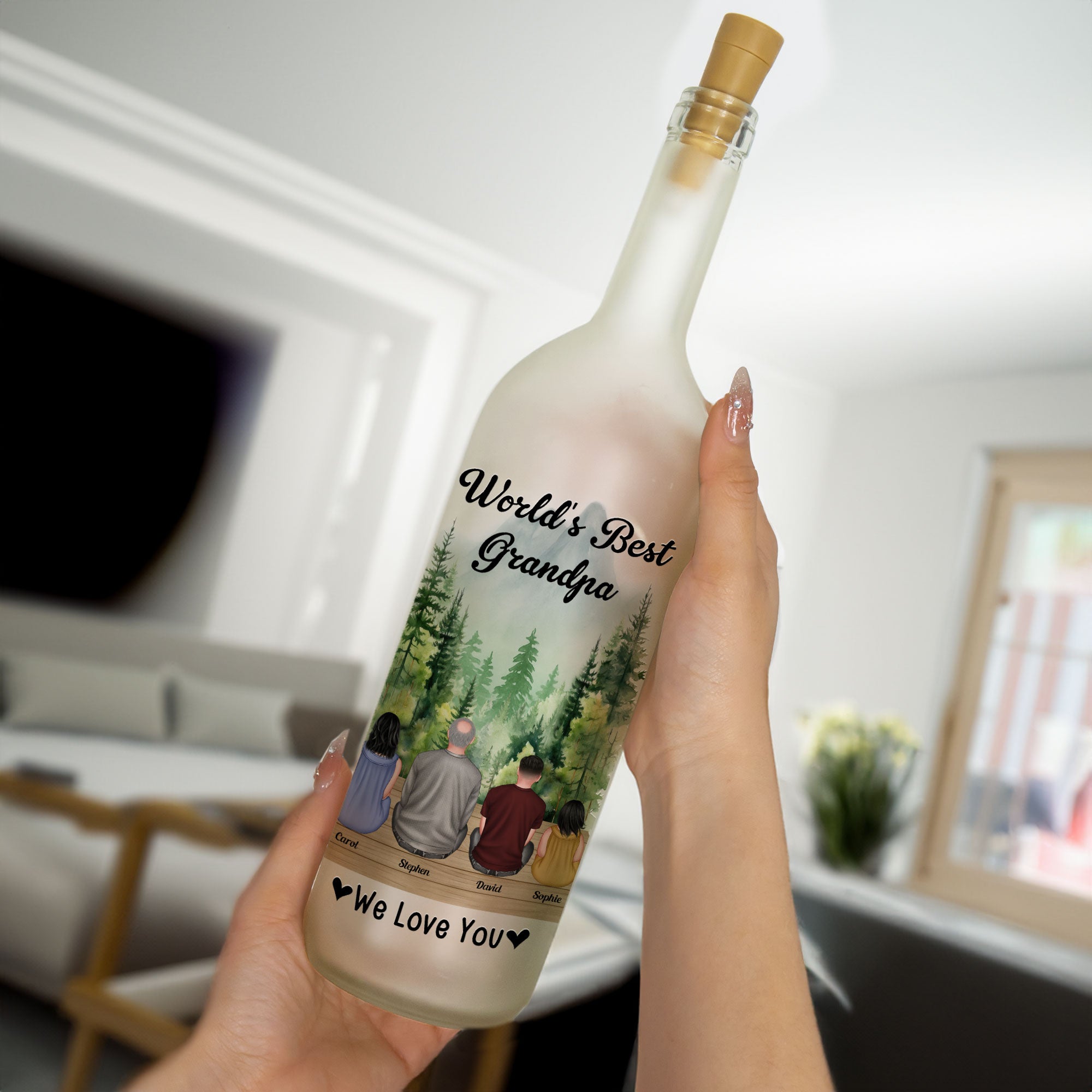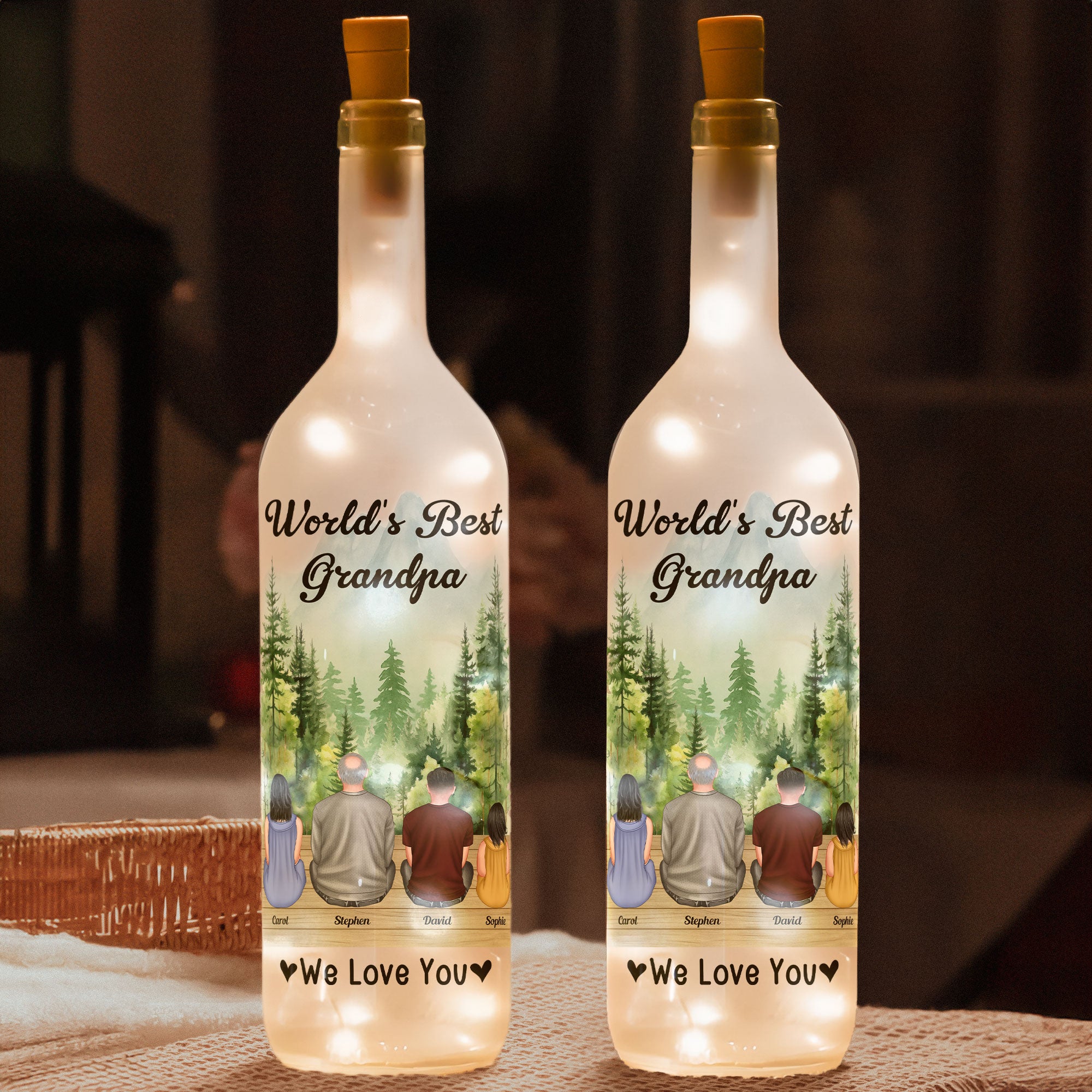 Celebrate your beloved grandpa with an extraordinary gift — a Personalized Bottle Lamp that reads "World's Best Grandpa, We Love You". This heartfelt Bottle Lamp is a beautiful embodiment of family bonds and deep-rooted affection, making it an excellent present. Of course, it's the perfect token for Father's Day, but it's also a great choice for other occasions like birthdays, anniversaries, or even on Christmas.