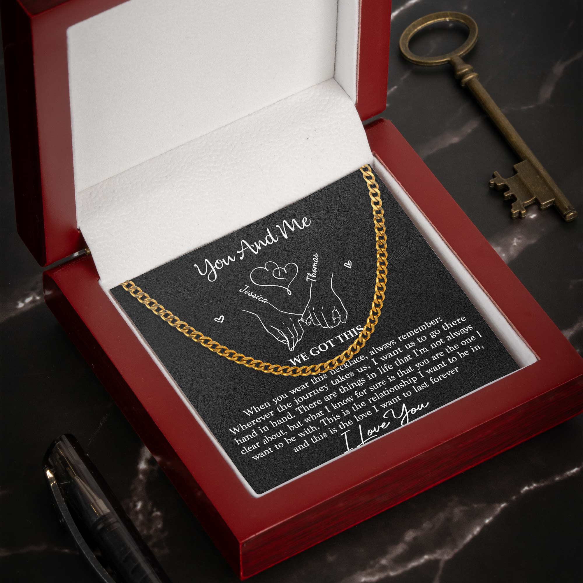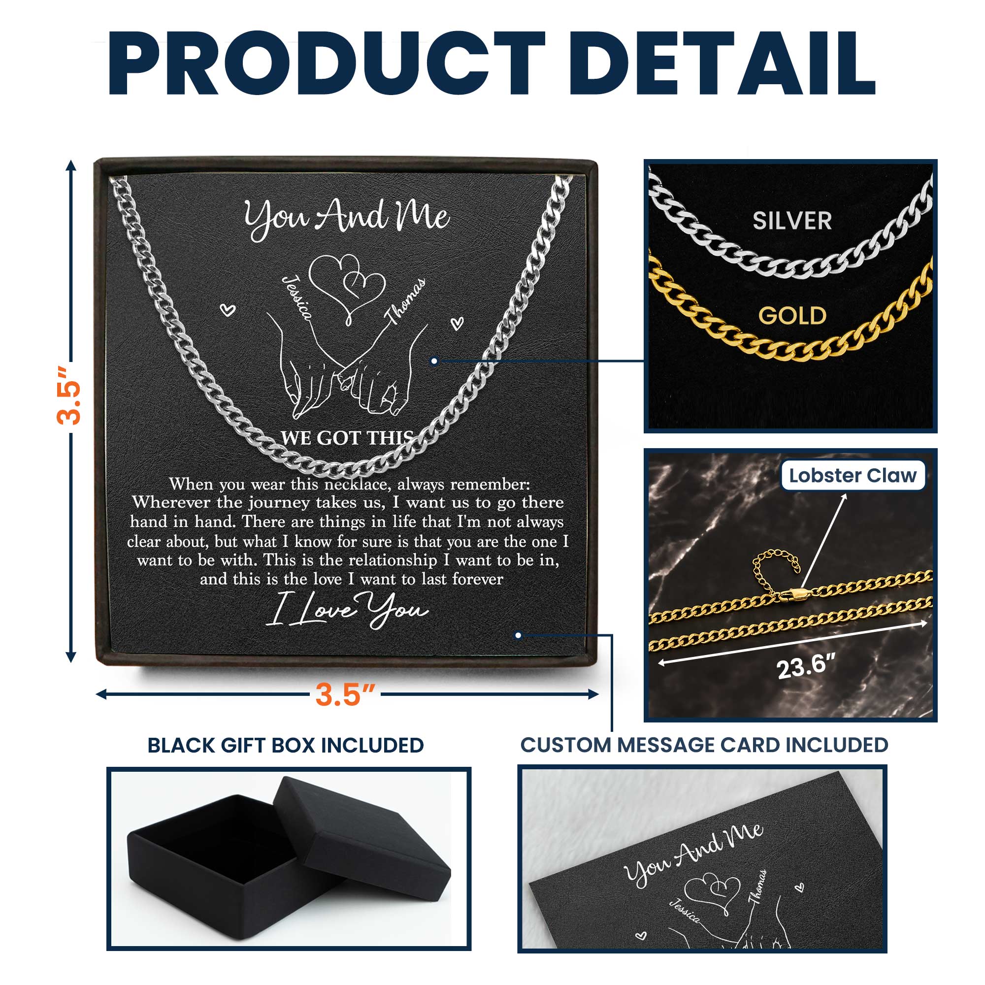 + Clasp: Equipped with a secure lobster clasp for easy fastening. - Gift Packaging: Arrives in a black gift box with a custom message card, making it a ready-to-gift item.
