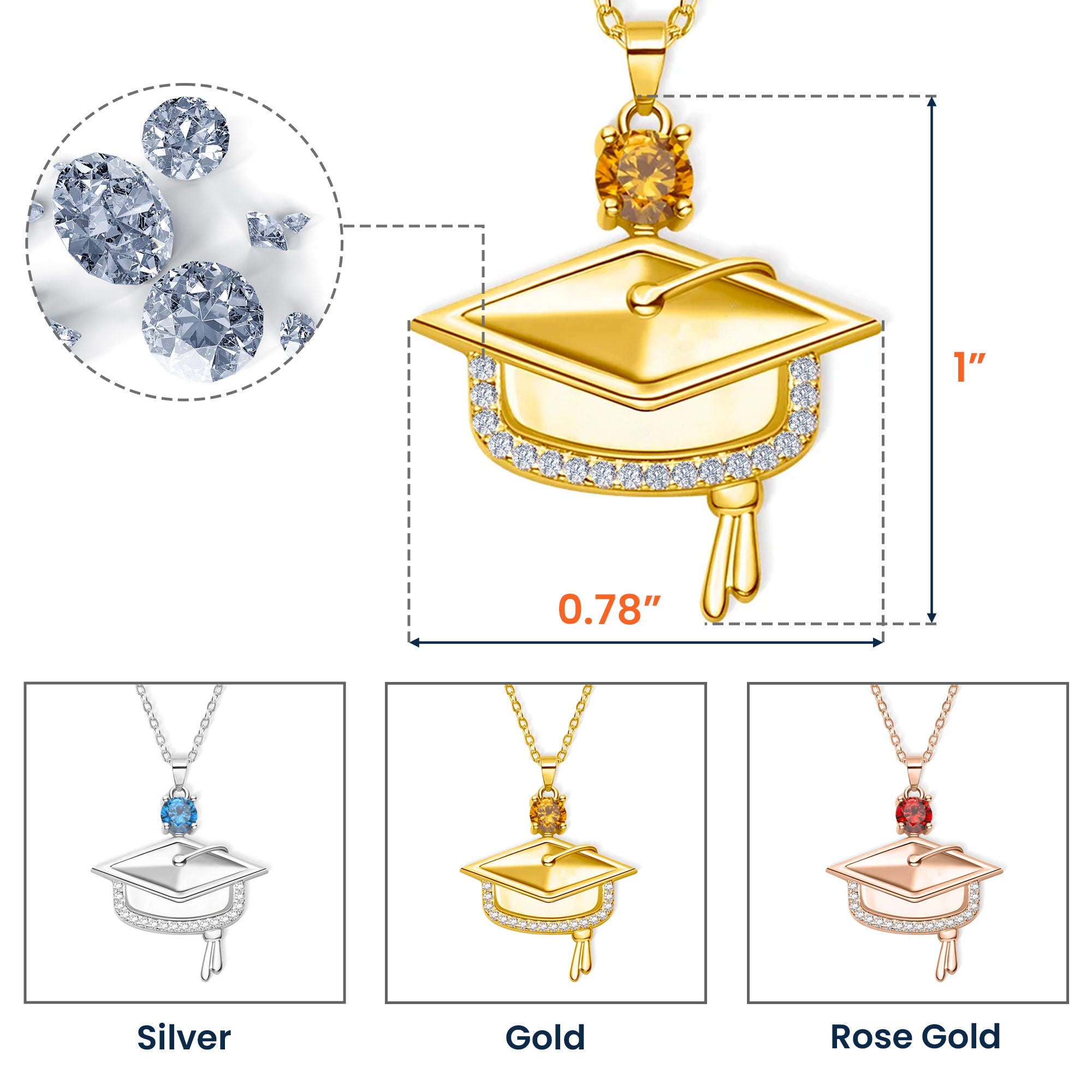 + Graduation Cap Pendant: A symbol of success and dedication, honoring the graduate’s journey.