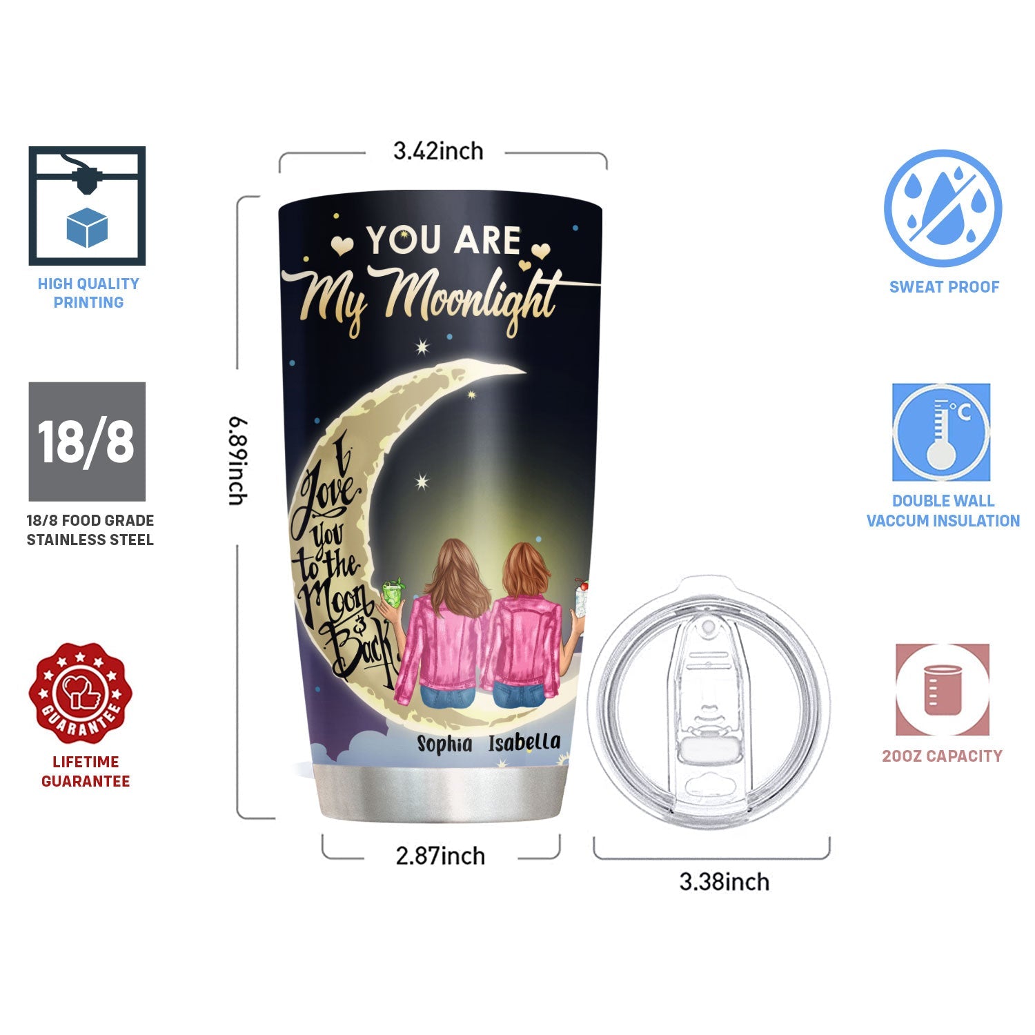 This personalized tumbler is the perfect gift to show someone they're your ride or die. Great for birthdays, holidays, or anytime you want to surprise your bestie with a thoughtful gift. They also make thoughtful bridesmaid gifts to celebrate your enduring friendship. Or gift them to coworkers you've bonded with over coffee breaks and deadlines. The leakproof lid means your friend can toss this tumbler in a bag and go, while the insulation keeps their frappe or cold brew perfectly chilled on summer days. With its sleek design and meaningful personal details, this unique tumbler celebrates cherished friendships wherever you roam. Surprise your ride or die with the perfect gift to show how much their companionship means and that you'll be BFFs 4 Life!