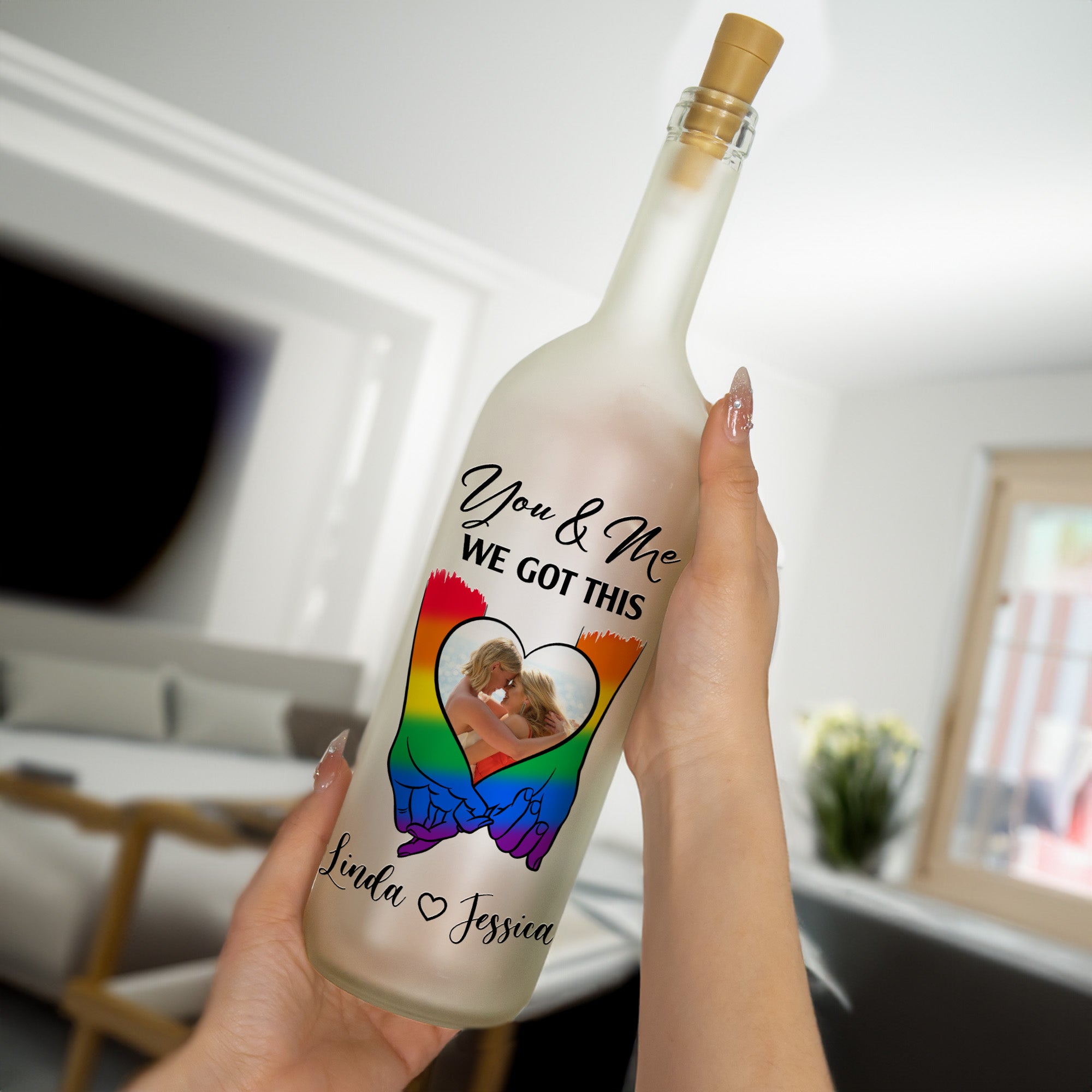 Illuminate your shared memories and bond with our personalized photo bottle lamp, creatively titled 'You Are My Rainbow'. Designed for the English-speaking market, this unique product celebrates and honors the beautiful spectrum of love within the LGBT community and couples in general. By uploading a special photo of your choice, this piece becomes a sentimental gift that encapsulates fond moments and deep connections in a visually striking display.