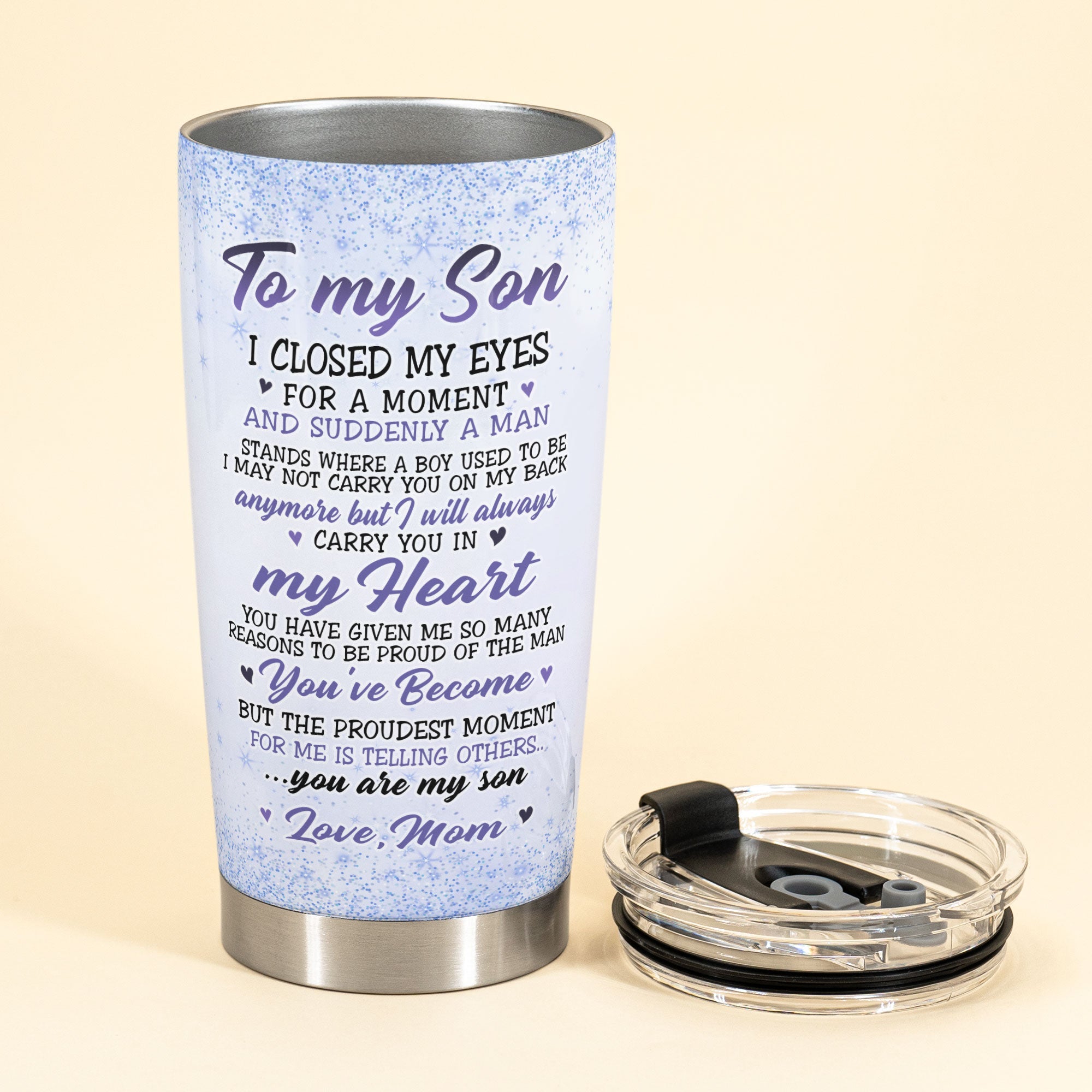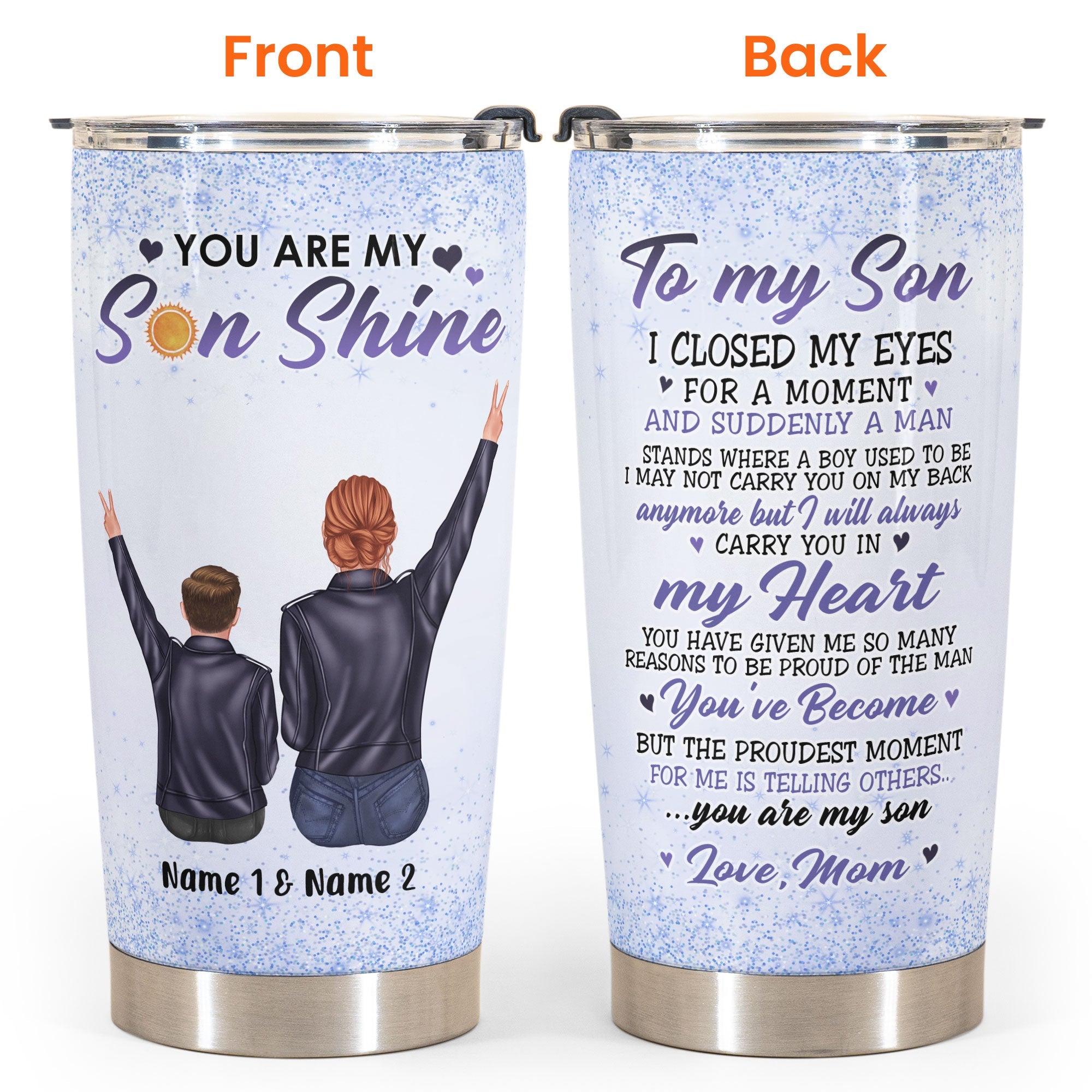 Show your son how much he means to you with a custom tumbler just for him. With fun designs and personalization, this stainless steel tumbler makes a thoughtful gift to celebrate the amazing young man he's becoming. This tumbler makes a great birthday, graduation, sport season or just-because gift to recognize his passions and accomplishments. Whether he's artistic, athletic, academic or all of the above, this tumbler celebrates his unique spirit. The personalized details make it a gift as cool as he is. Surprise your remarkable son with a tumbler as vibrant and fun as his future. He'll love showing off his one-of-a-kind cup to friends. Let it serve as a token of love and appreciation as he navigates his journey through life.