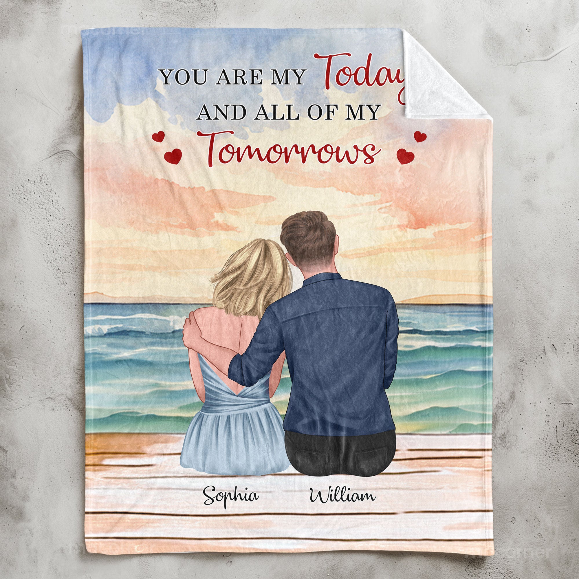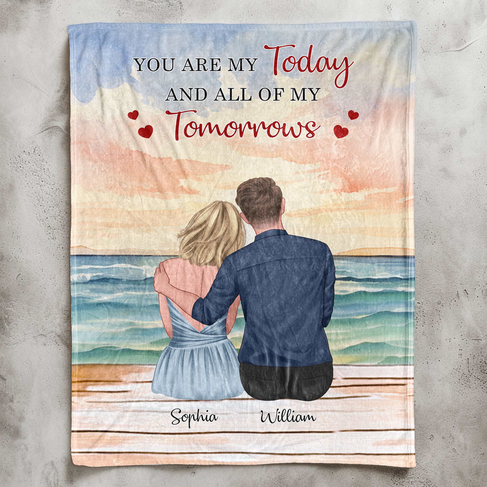 The "You Are My Today And All Of My Tomorrows" Personalized Blanket is a beautiful and meaningful gift for couples, perfect for anniversaries, Valentine’s Day, or any special occasion. This cozy blanket can be customized with names or a personal message, making it a unique expression of love that symbolizes the deep bond you share. Whether you’re celebrating an anniversary or simply want to surprise your partner with a heartfelt gift, this blanket wraps them in warmth and love, reminding them of your unwavering commitment. Ideal as a gift for him or her, it’s a thoughtful way to show how much they mean to you, and it makes a cherished keepsake that will be treasured for years to come. Celebrate your love with this perfect couple’s gift, designed to capture the essence of your shared journey and all the tomorrows you’ll spend together.