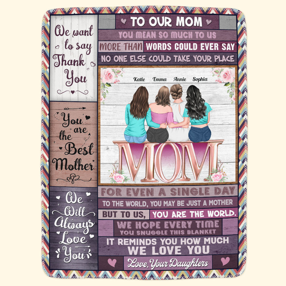 Honor the mother, grandmother, godmother, aunt or any maternal figure who holds a special place in your heart. This personalized memento blanket is specially designed to pay tribute to the guiding light in your life. Spouses, children, family and friends can craft a one-of-a-kind gift celebrating the cherished woman who gives you strength. Present this heartfelt blanket on Mother's Day, her birthday, your anniversary or as an anytime "I love you" gesture. It will provide lasting warmth and beautiful memories for years to come.
