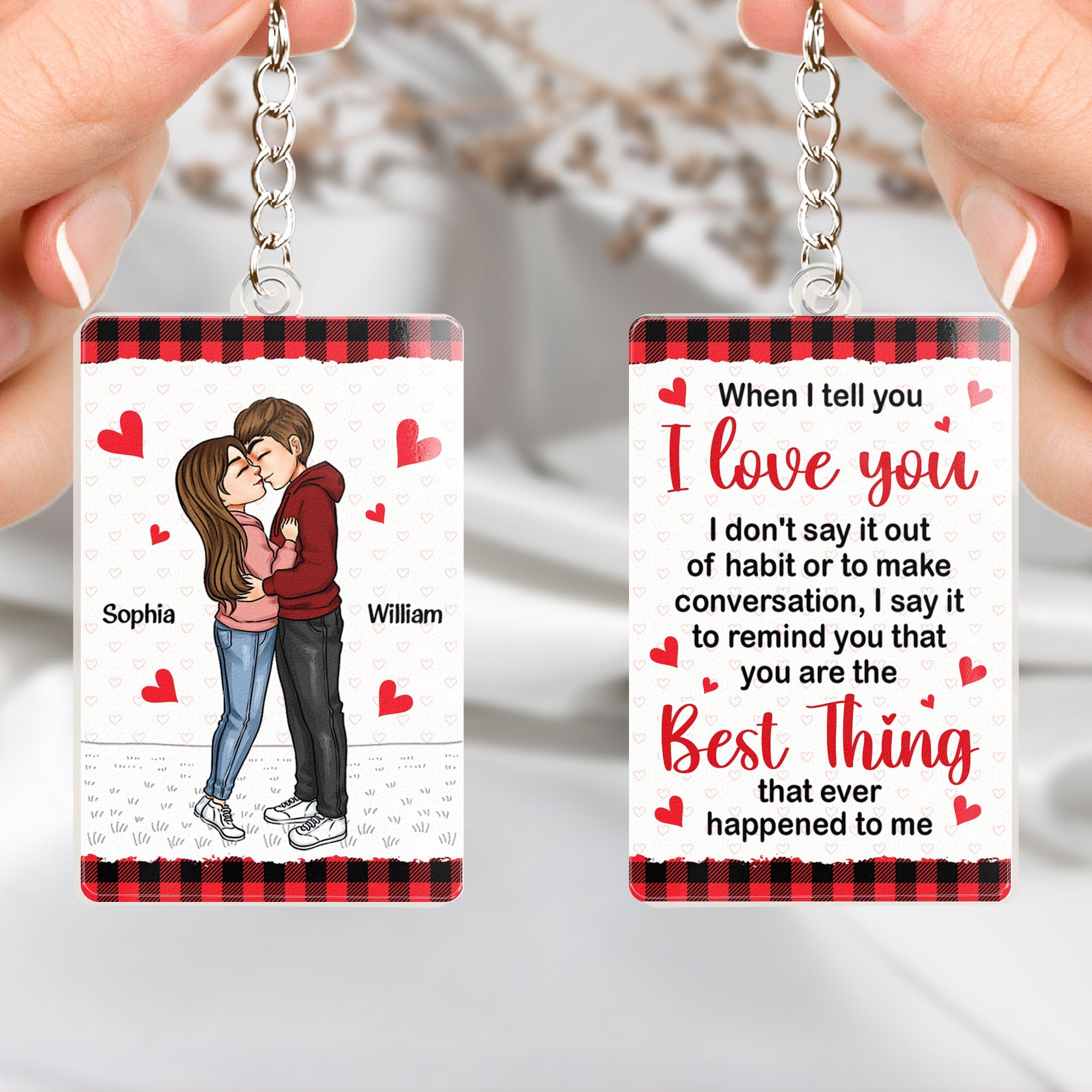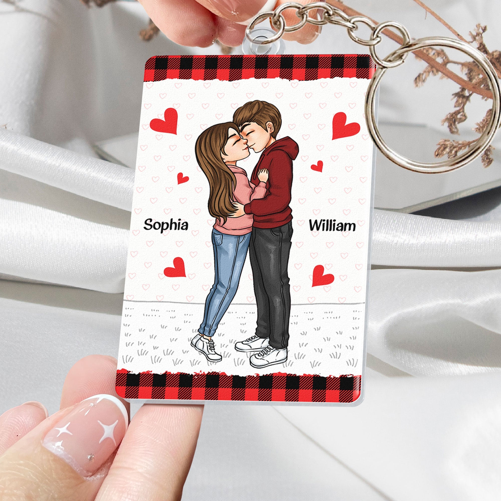 Crafted from durable acrylic, this keychain is not only stylish but also a lasting symbol of the enduring connection shared between two individuals. It serves as a constant reminder of the joy and happiness found in each other's company. As a thoughtful gesture for a husband, wife, boyfriend, or girlfriend, this personalized keychain is a timeless expression of affection, making it an ideal gift for Valentine's Day or any momentous celebration of love.