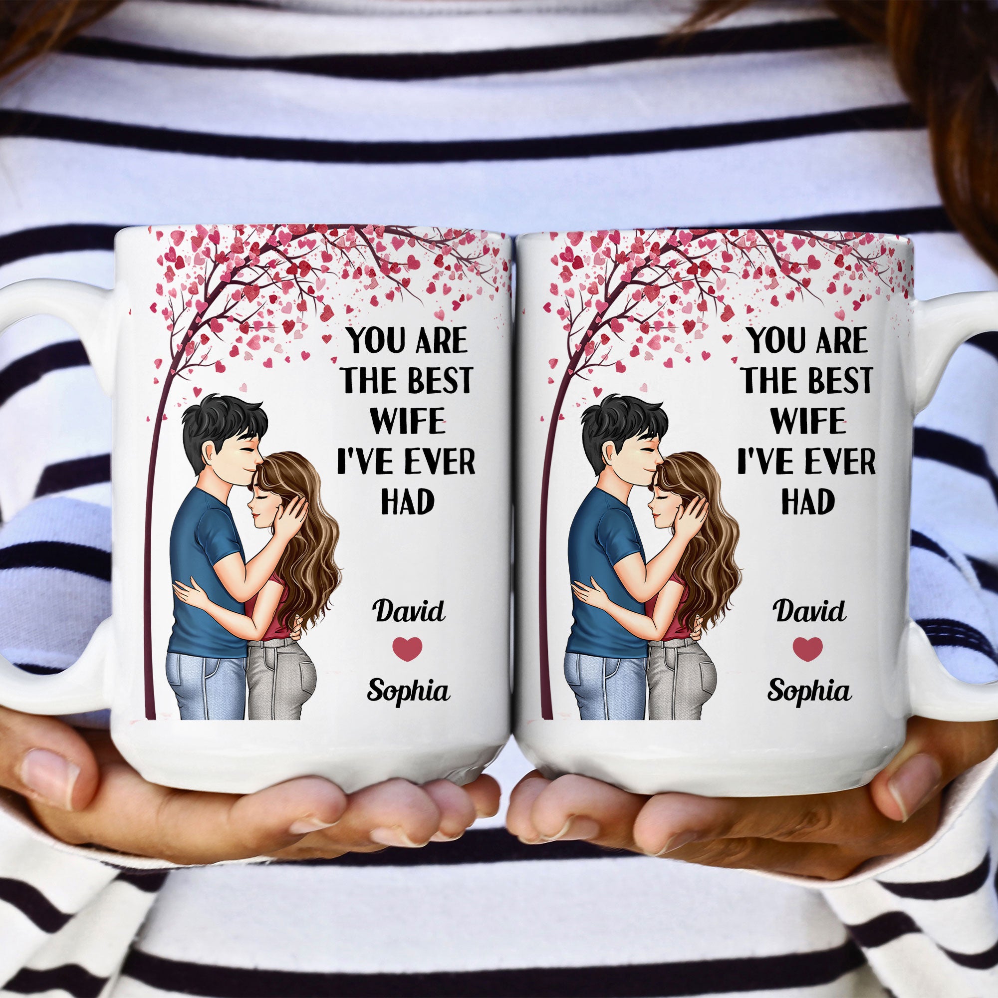 Looking for the perfect gift to make your wife smile? This personalized funny mug is an ideal choice for Christmas, your anniversary, or Valentine’s Day. Customize it with your names and appearances, making it a fun and unique reminder of your special bond. Whether she uses it for her morning coffee or as a cute keepsake, this mug is sure to brighten her day and add a personal touch to your celebrations.