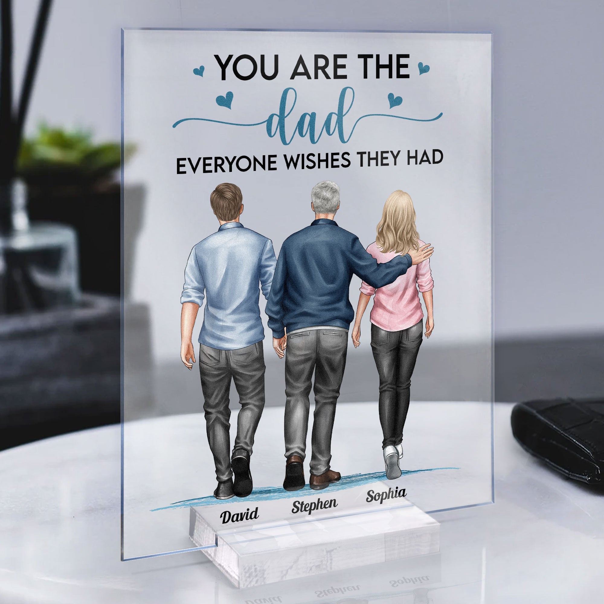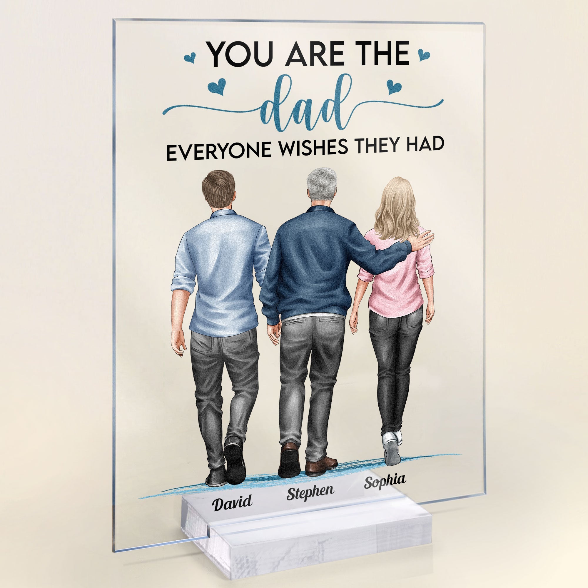 Honor the special man in your life with a customized acrylic plaque displaying his name in a bold, distinguished font. This unique gift is the perfect way to celebrate dad for Father's Day, his birthday, retirement, or any milestone. Display this personalized plaque in dad's office, garage, man cave or any place he’ll see it daily as a reminder of your gratitude and appreciation. He'll love having his name elegantly engraved for all to see. Surprise dad for Father’s Day or a special occasion with this unique symbol of admiration. Let him know how cherished he is with this custom plaque made just for him. There’s no better way to make dad feel special than a gift personalized with love. Honor the king of your heart with a meaningful custom plaque that celebrates everything he does.