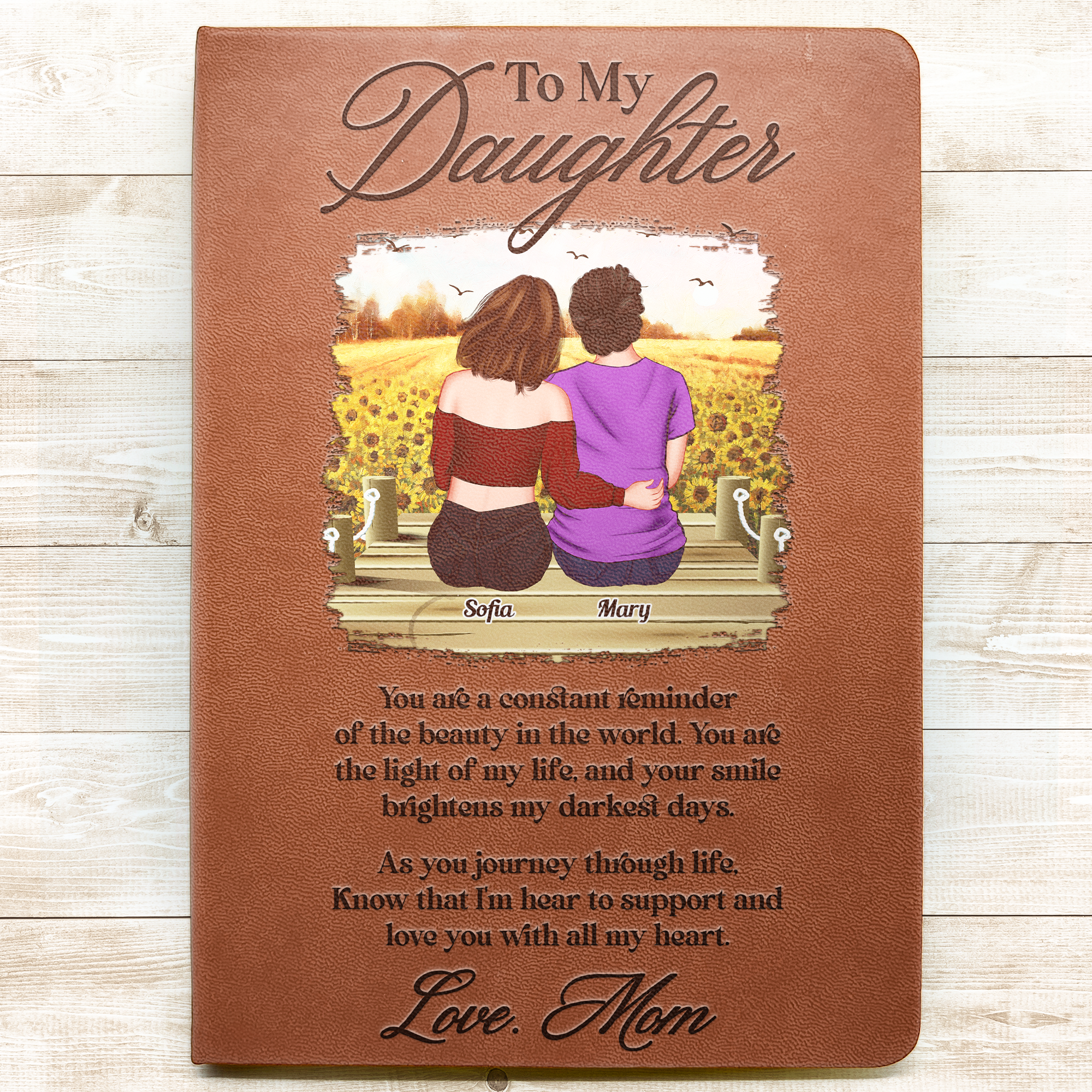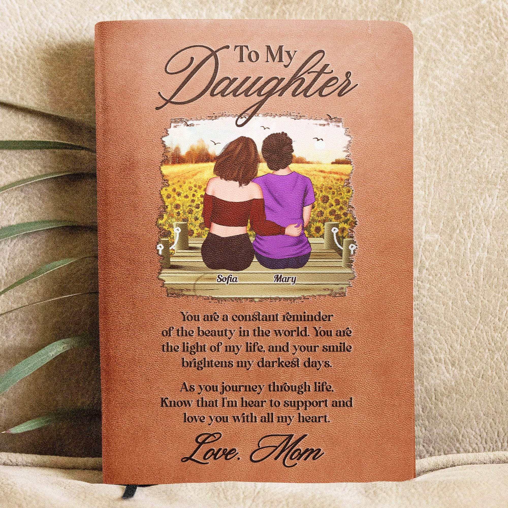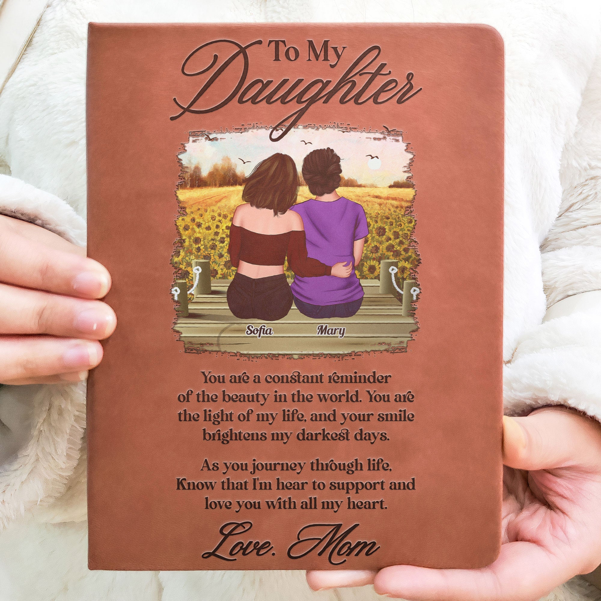 Indulge your daughter's creative spirit with our Personalized Leather Journal, an ideal gift for birthdays or any occasion. Crafted from premium leather, this journal exudes elegance and durability, providing a timeless space for her to capture memories, express thoughts, and explore her dreams.