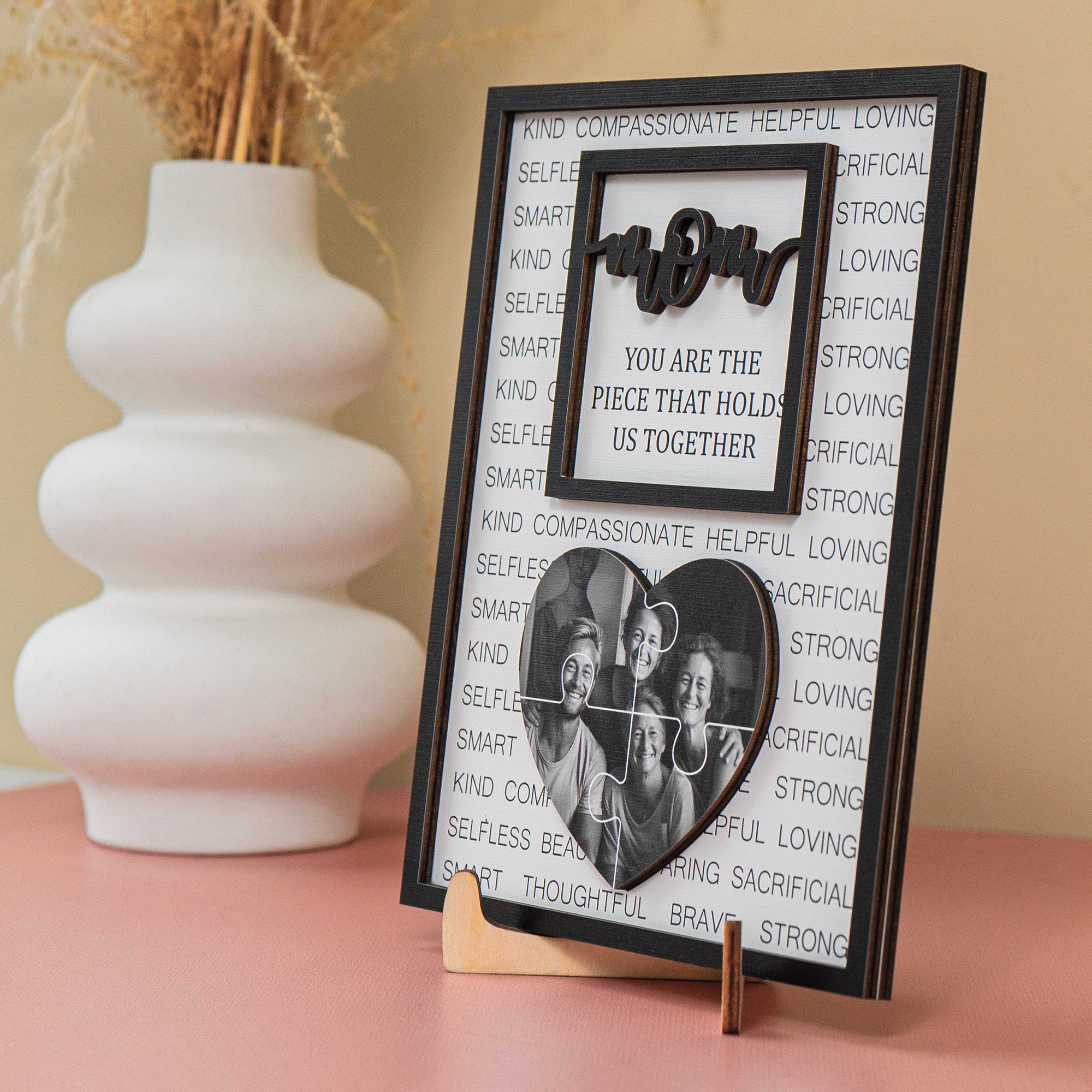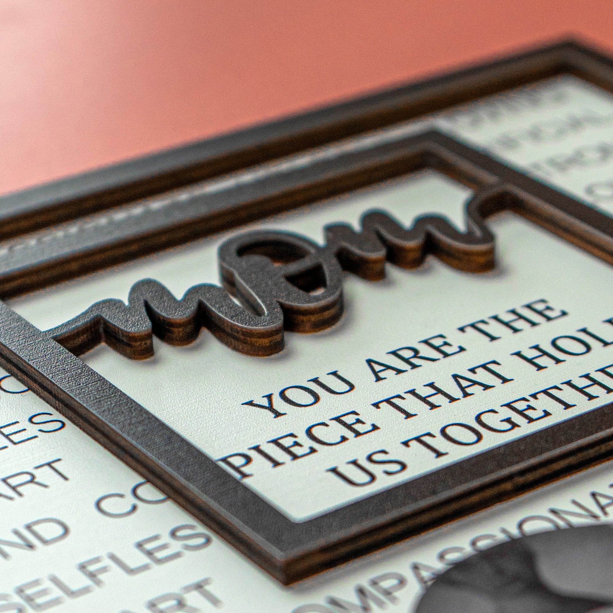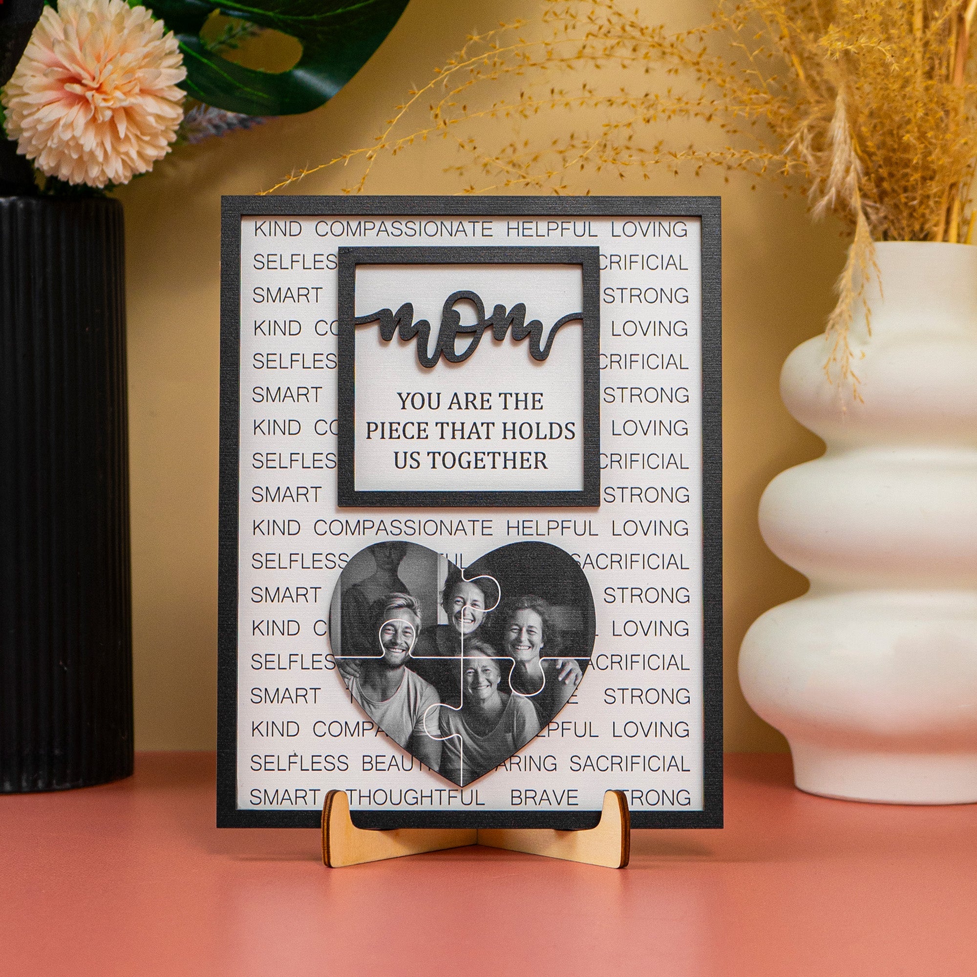 Do you want to express your gratitude and love to your mom who is the piece that holds your family together? Do you want to give her a gift that is unique, meaningful, and beautiful? Then you will love our personalized 2 layers wooden plaque!