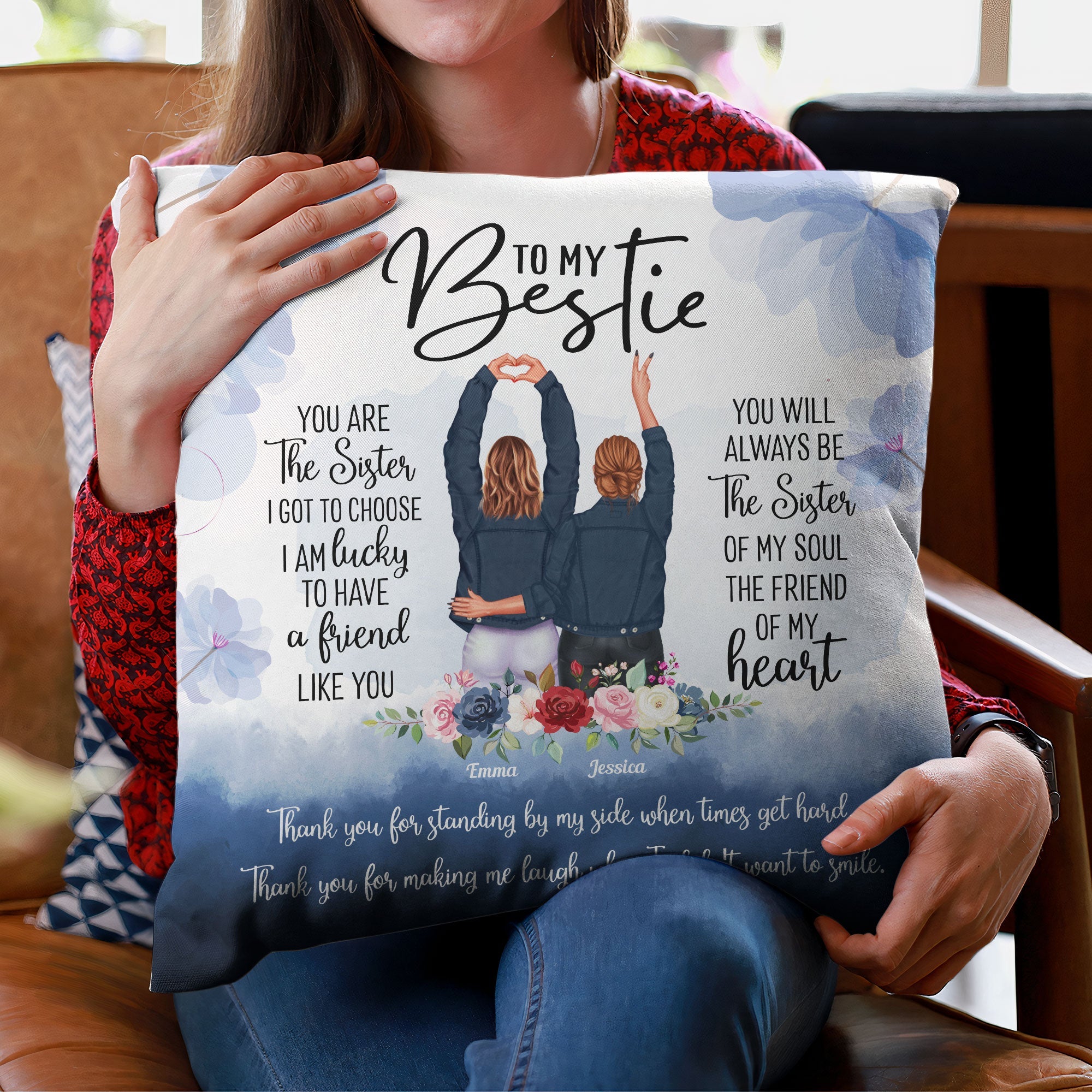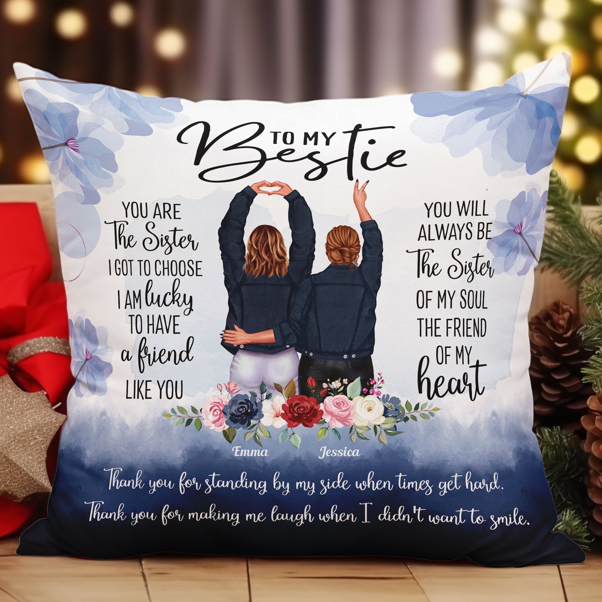 Elevate your sister's special occasions with our Personalized Pillow – a heartfelt birthday and Christmas gift. Designed to encapsulate your unique bond, this custom pillow brings warmth and love to every moment.