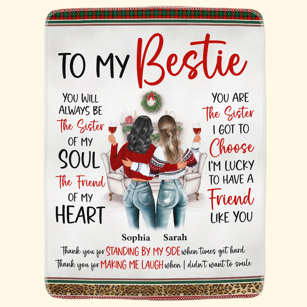 Embrace the warmth of friendship with There Are Friends That Become Family - Personalized Blanket This cozy blanket celebrates the precious bond of true friendship. Customize it for a personal touch, making it a thoughtful gift for your closest friend. Whether you're near or far, this blanket wraps your friend in warmth and love. Share the joy of the season with this personalized gift, a perfect reminder of the enduring connection that lights up your life. Perfect birthday gift for her, besties, friends, sister, soul sisters.