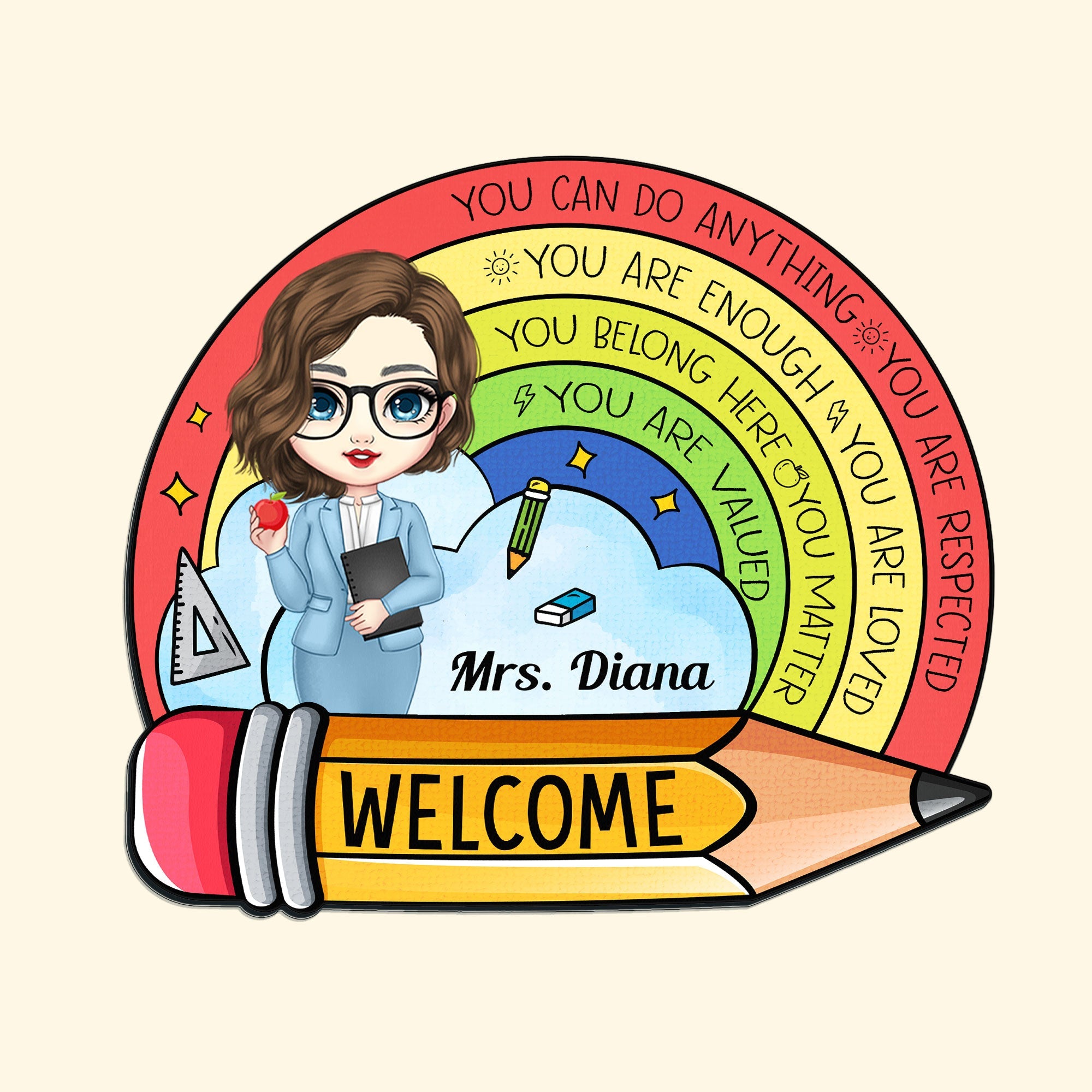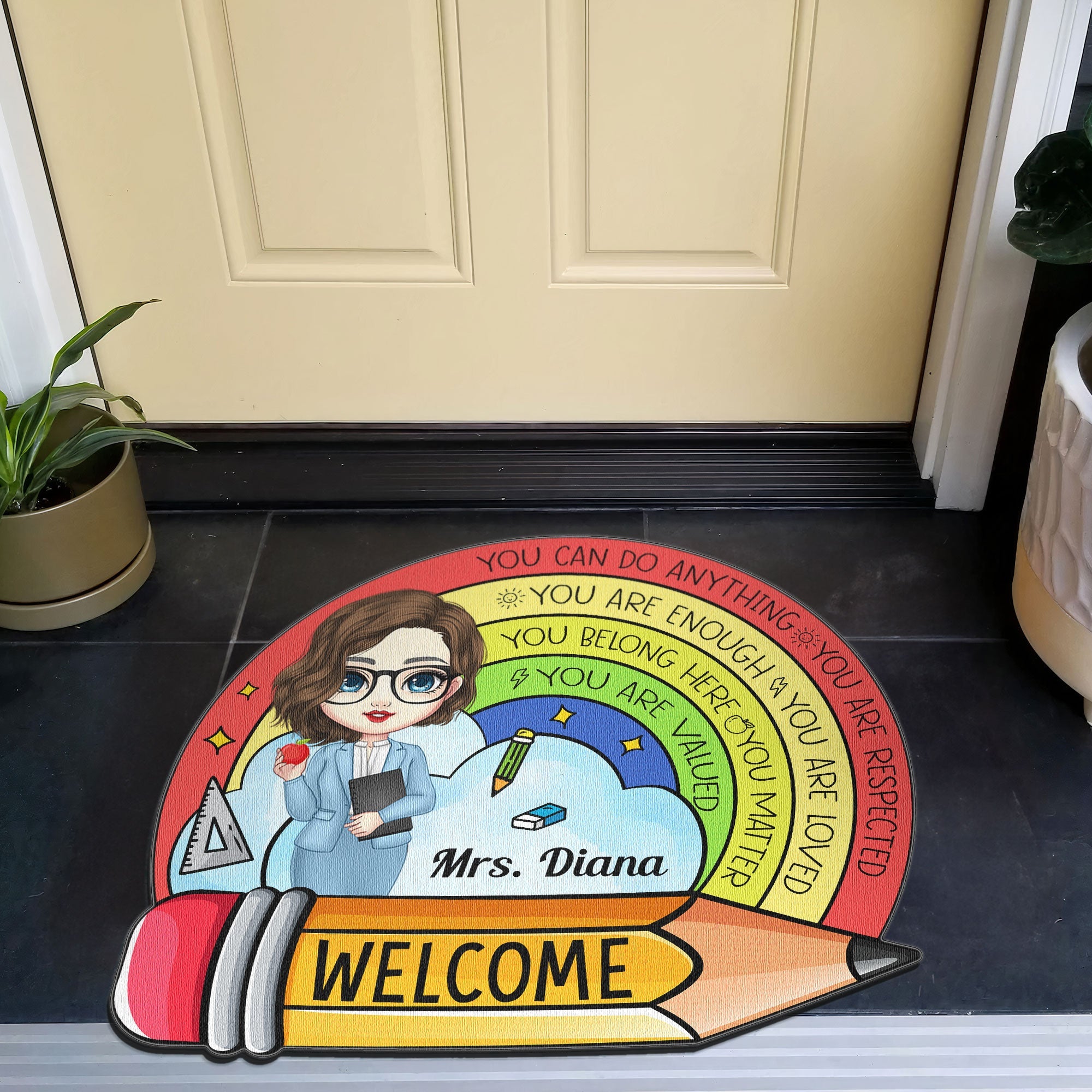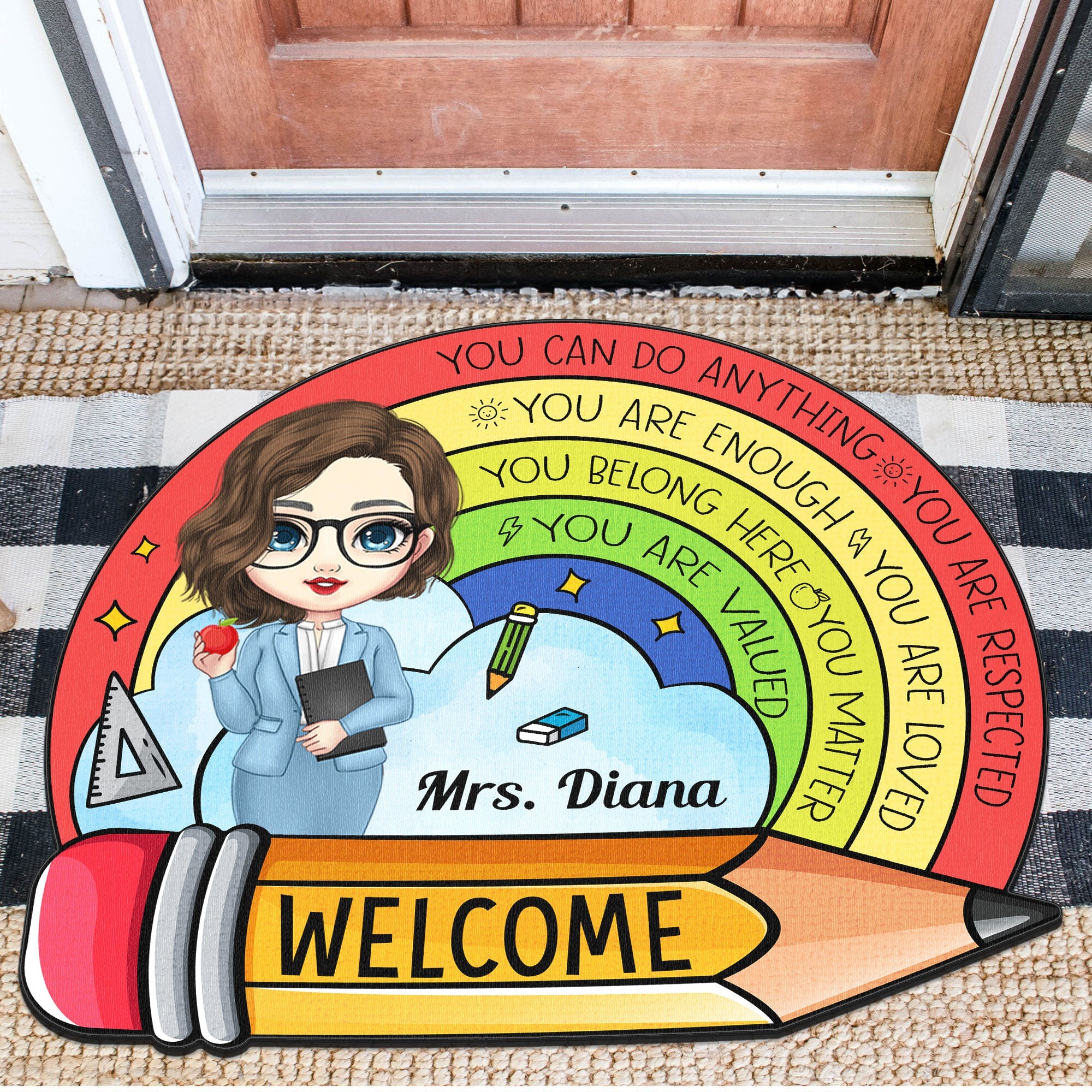 A personalized teacher doormat is not only a beautiful accessory, but also a useful one. It helps to keep your floors clean and tidy by absorbing dirt, dust, and moisture from your shoes. It also provides a soft and comfortable surface for your feet. A personalized teacher doormat is made of high-quality and washable materials that can last for a long time.