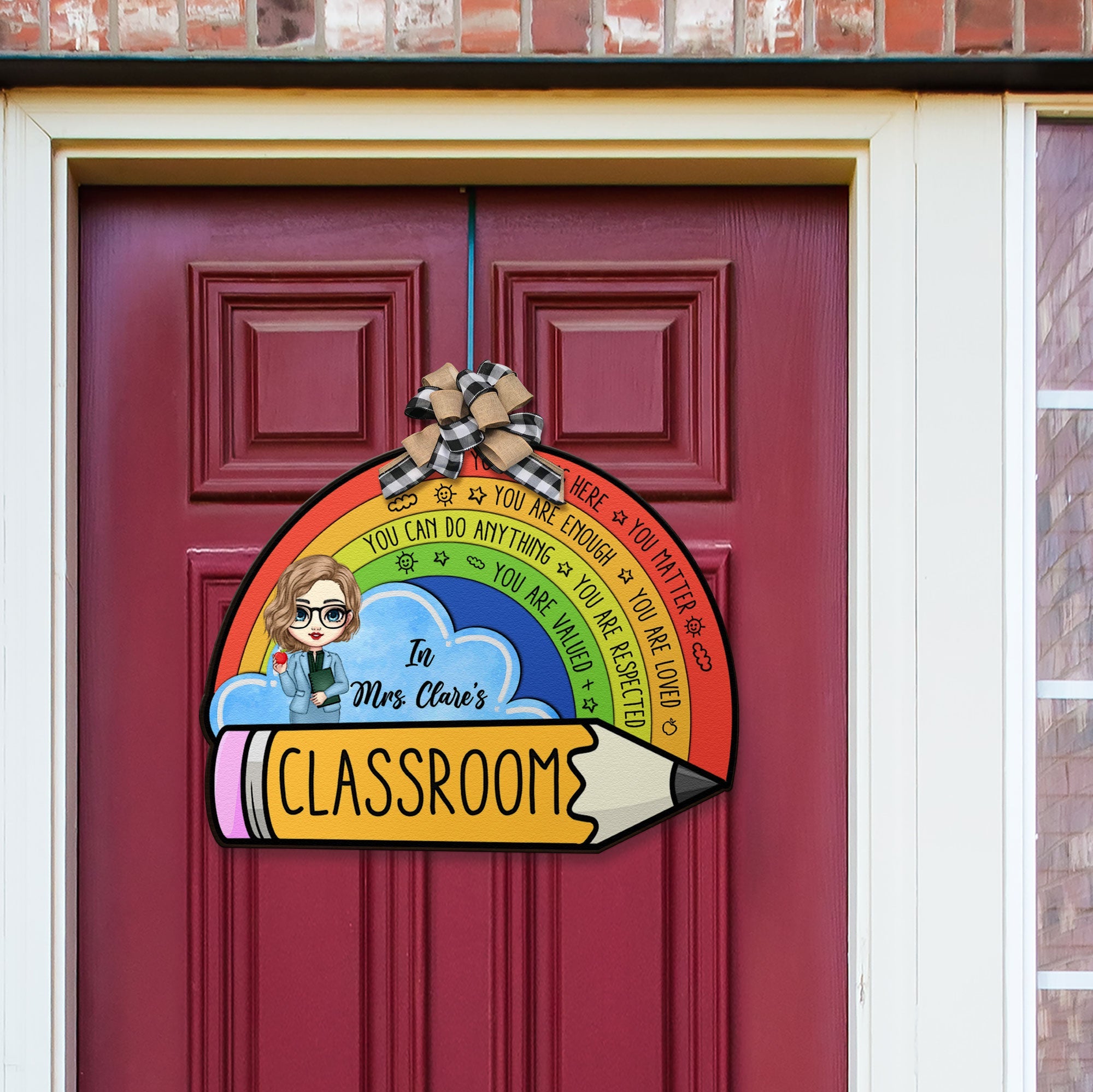 The sign comes with a variety of customization that can be changed to resemble the teacher as close as possible.