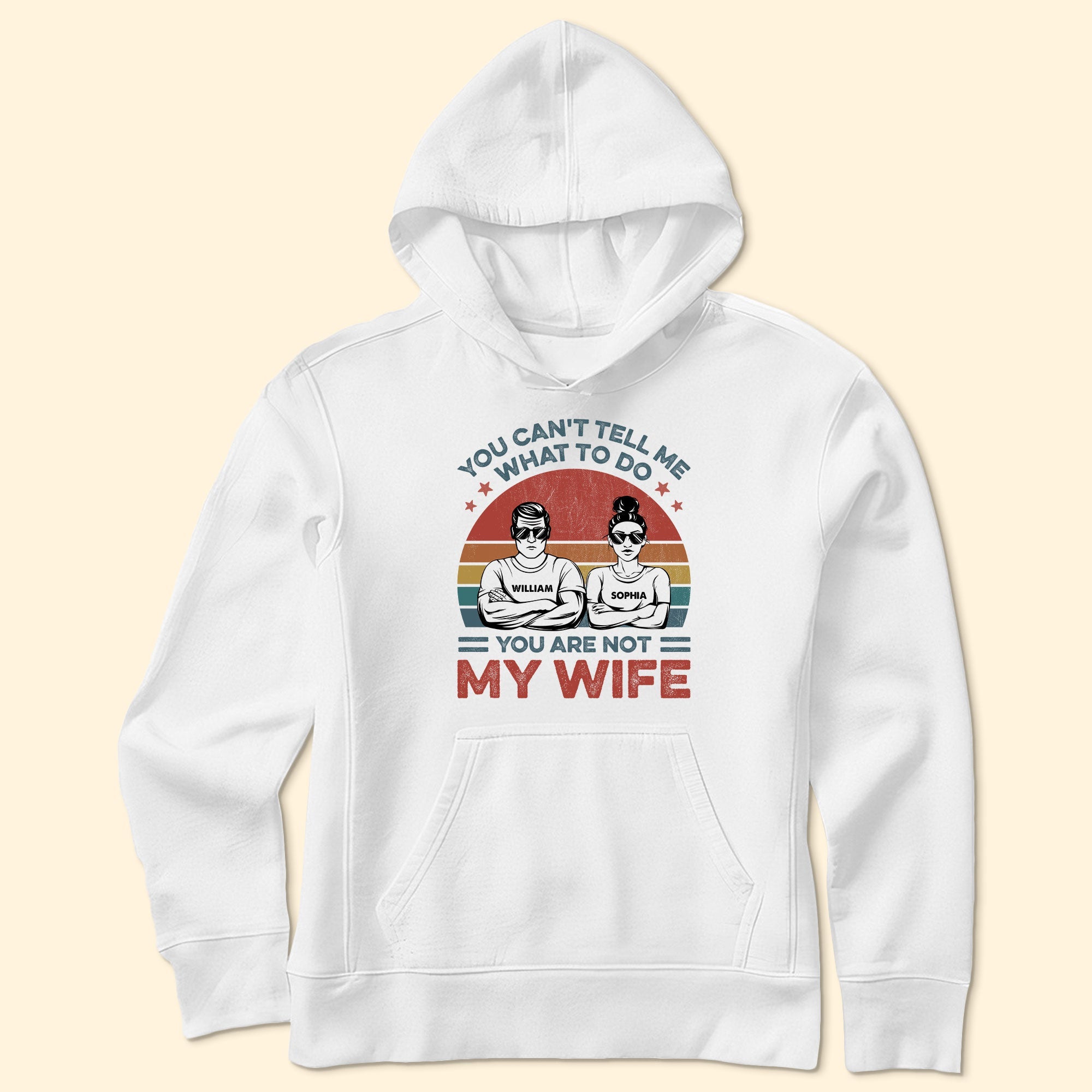 Introducing the New Husband Shirt, the perfect gift for newly married couples! This hilarious and trendy design features the phrase "You Can't Tell Me What To Do You Are Not My Wife" in bold letters, making it a humorous way to celebrate the transition into married life. Whether you're looking for a husband gift, engagement present, or funny wedding shirt, this versatile piece is a must-have for any husband-to-be or newlywed. It's a unique way to show off your marital status and bring some laughter to your wardrobe. Get ready to embrace the joys of marriage with this charming and lighthearted Newlywed shirt!