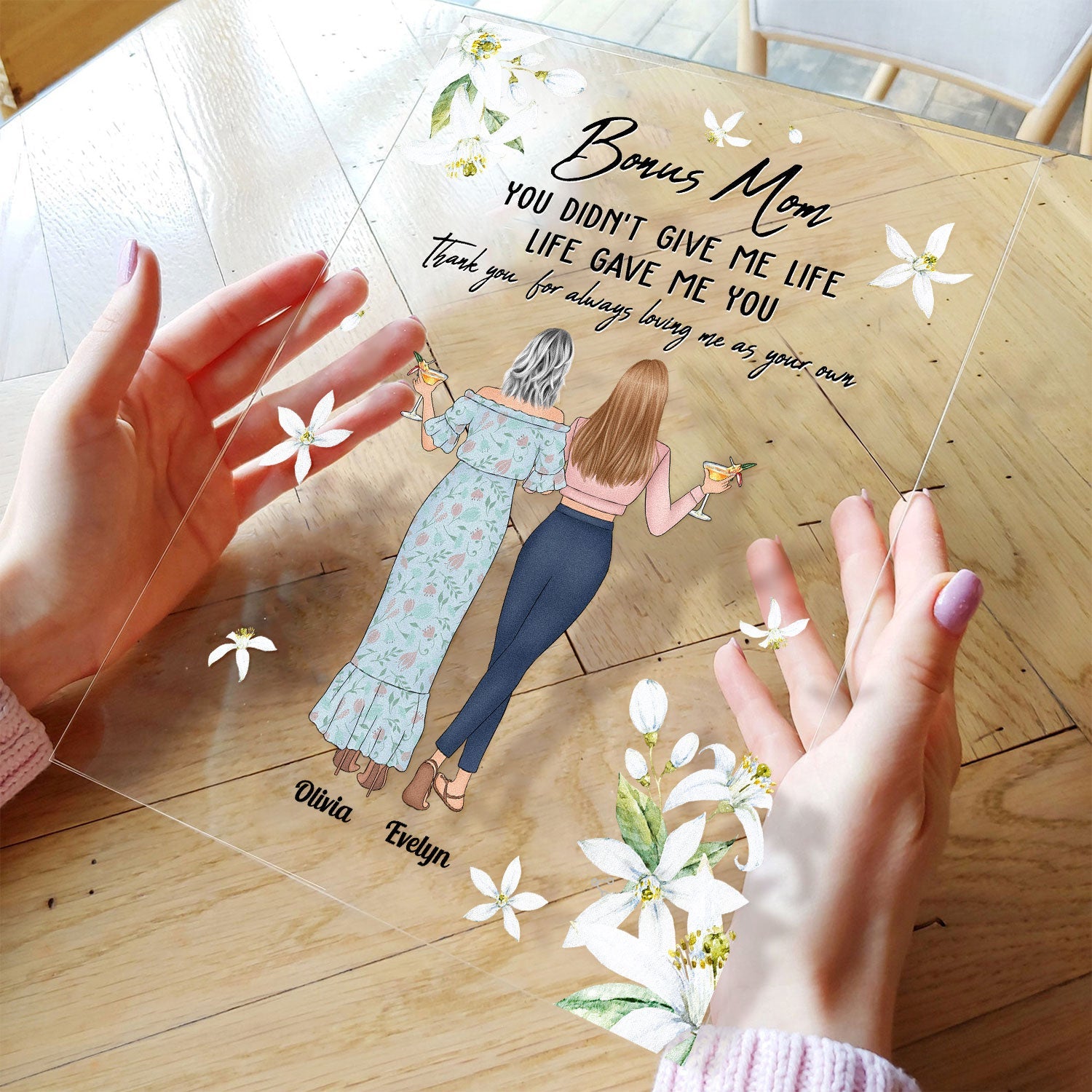Show mom how much you care with a customized acrylic plaque displaying her name in a lovely cursive font. This thoughtful gift is perfect for displaying in her home to remind her every day how special she is. Give this personalized plaque to mom for Mother's Day, her birthday, holidays or anytime you want to make her feel appreciated. She’ll be touched by the meaningful sentiment that celebrates her nurturing spirit and amazing motherly wisdom. There’s no better way to honor mom than with a customized gift made just for her. She does so much for you, so show your appreciation with this unique memento. Let mom know how cherished she is with a personalized plaque she can treasure forever.