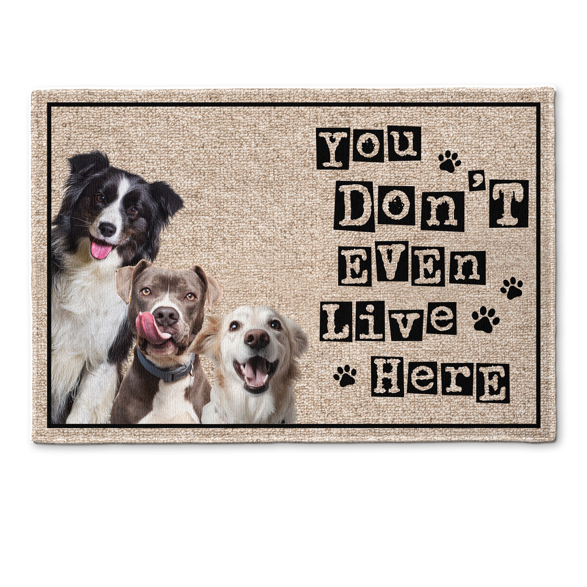 The "You Don't Even Live Here - Personalized Photo Doormat" is a delightful addition to any home, perfect for dog lovers and pet parents alike. This amusing and customizable doormat not only adds a touch of humor to your entryway but also serves as a warm, personalized welcome for guests and a playful nod to your beloved canine companions.
