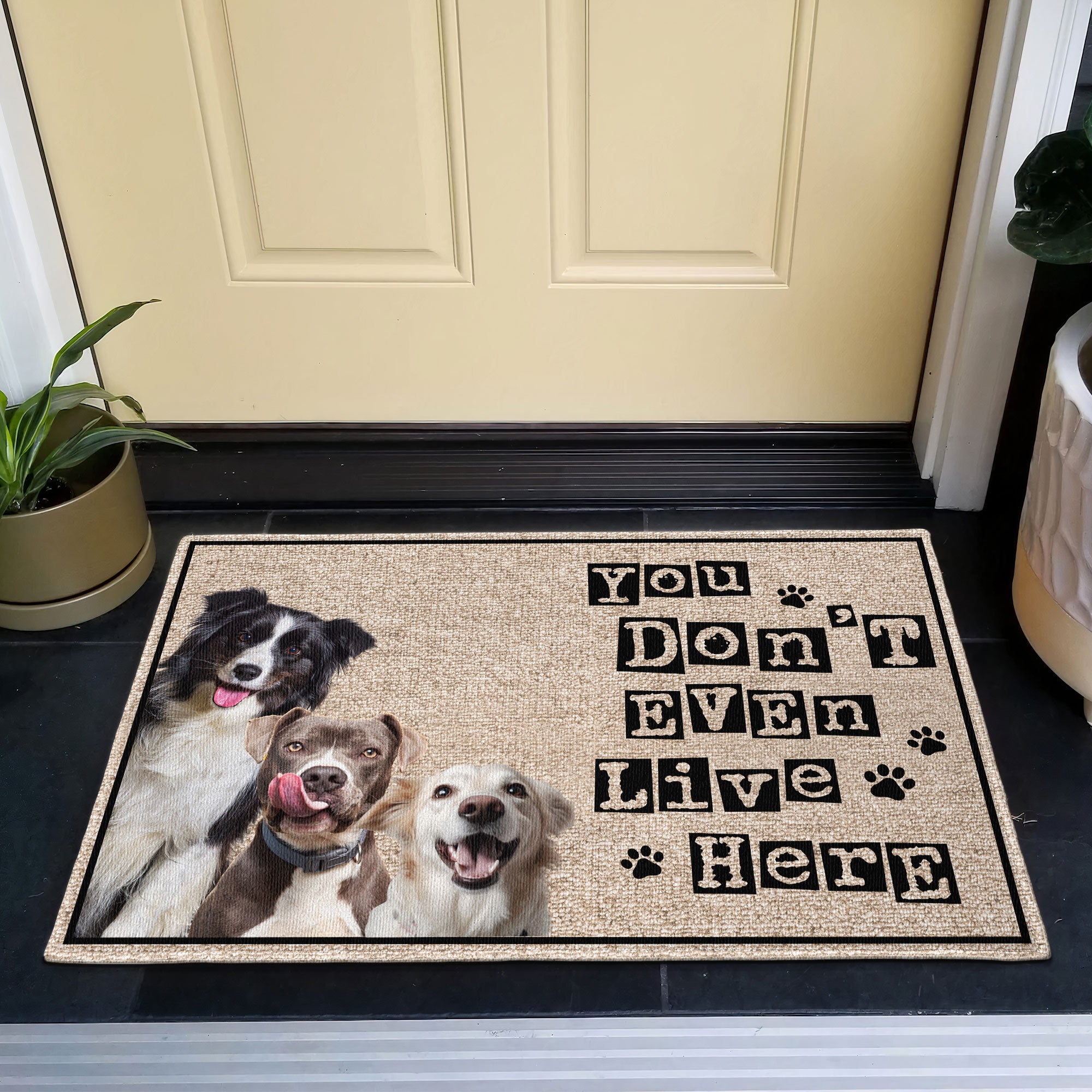 Welcome guests with a smile and a chuckle with our "You Don't Even Live Here - Personalized Photo Doormat," the perfect gift for any dog mom or dad!
