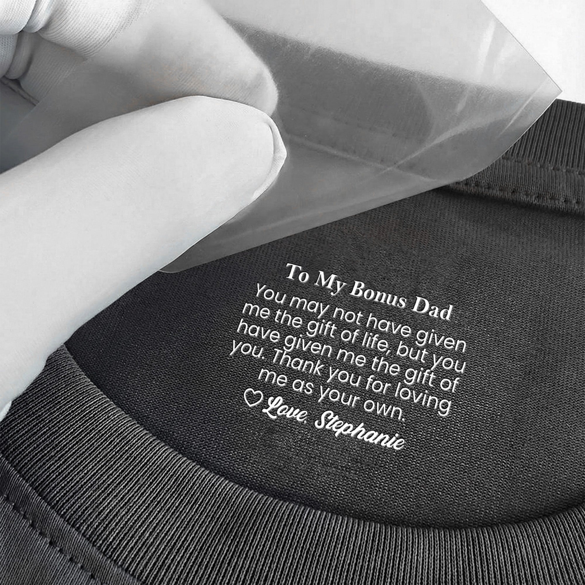 Introducing our Personalized Shirt, a wonderful token of love for those special bonus parents in your life, whether they're a stepdad or a stepmom. This unique shirt is a fantastic symbol of your deep connection and likeness. It's perfect for Father's Day, Mother's Day, birthdays, anniversaries, or any occasion, really! The message embedded within the design is a heartfelt "Thank You" to them for loving you like their own.