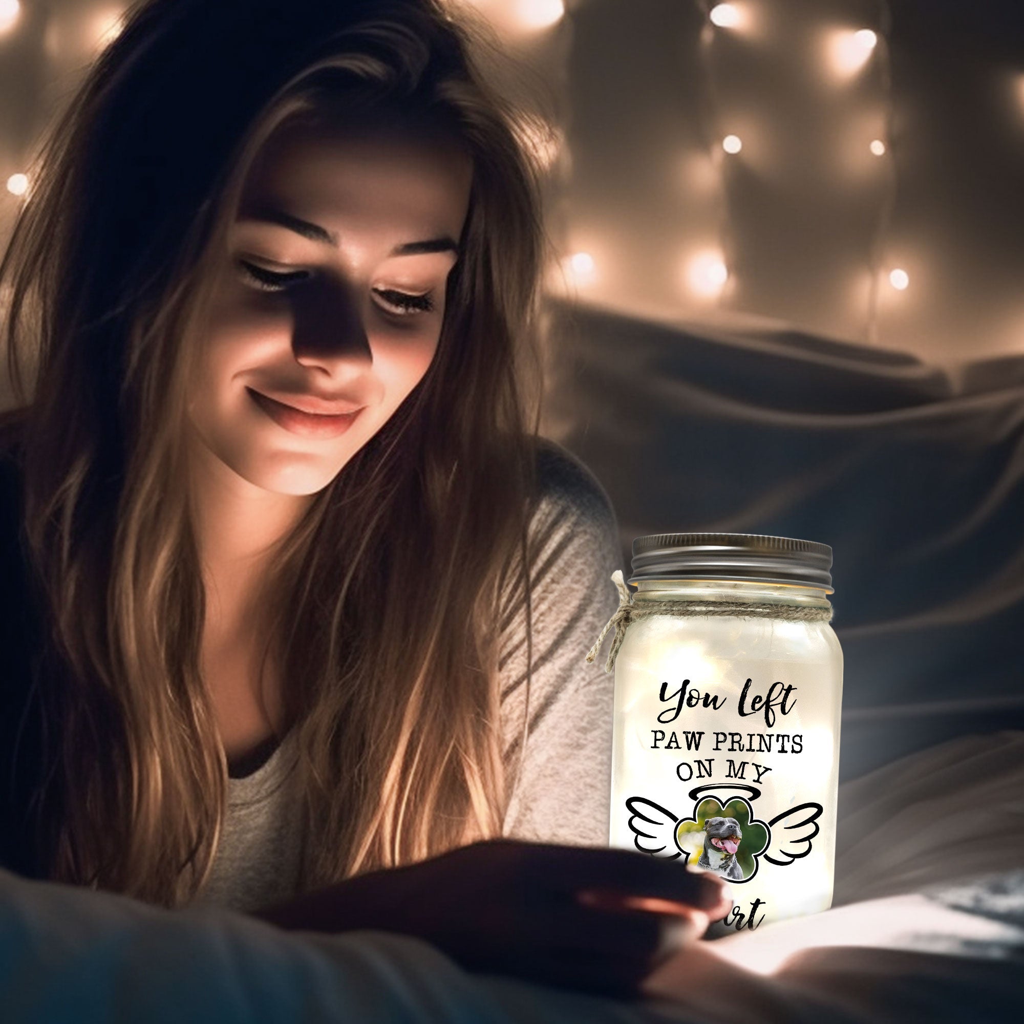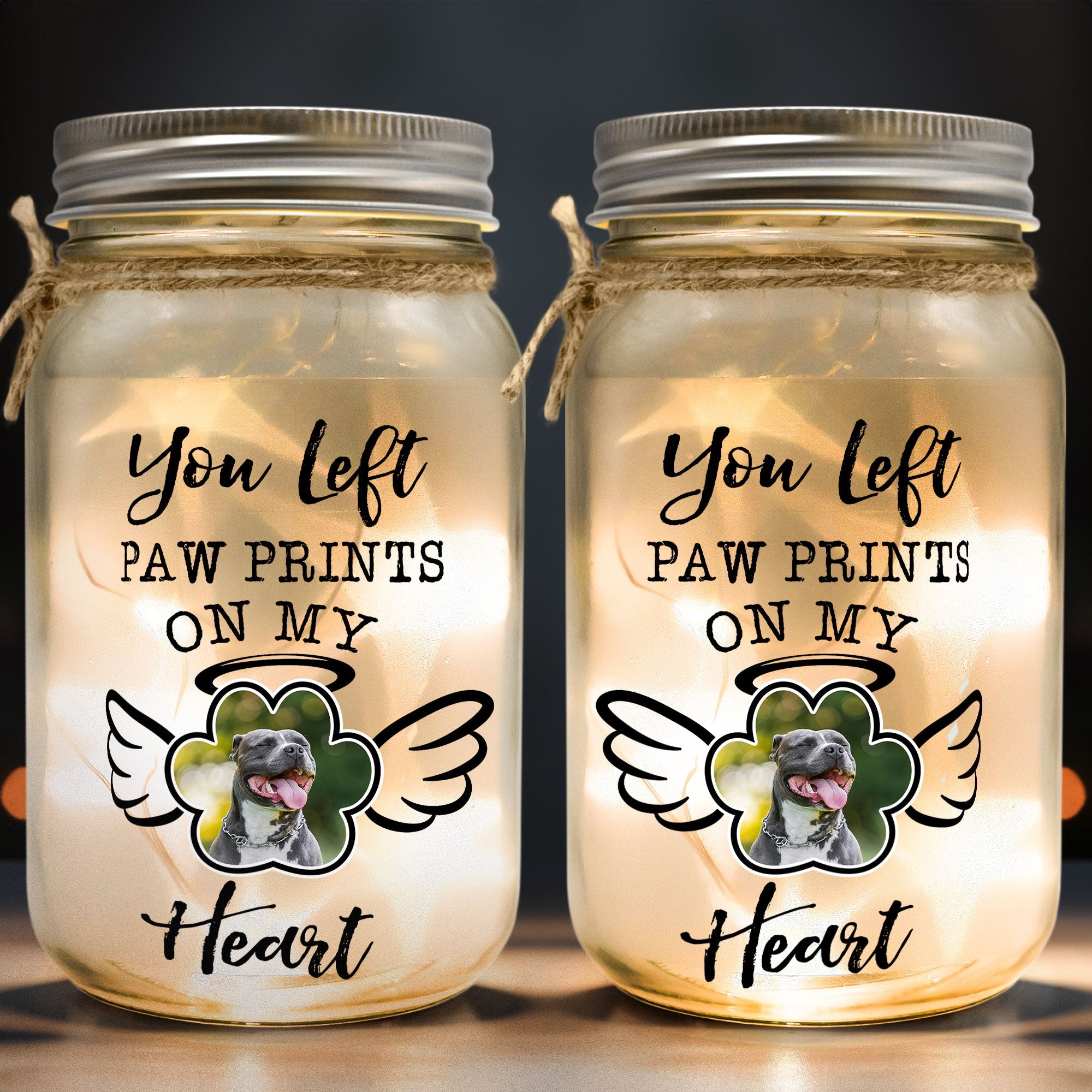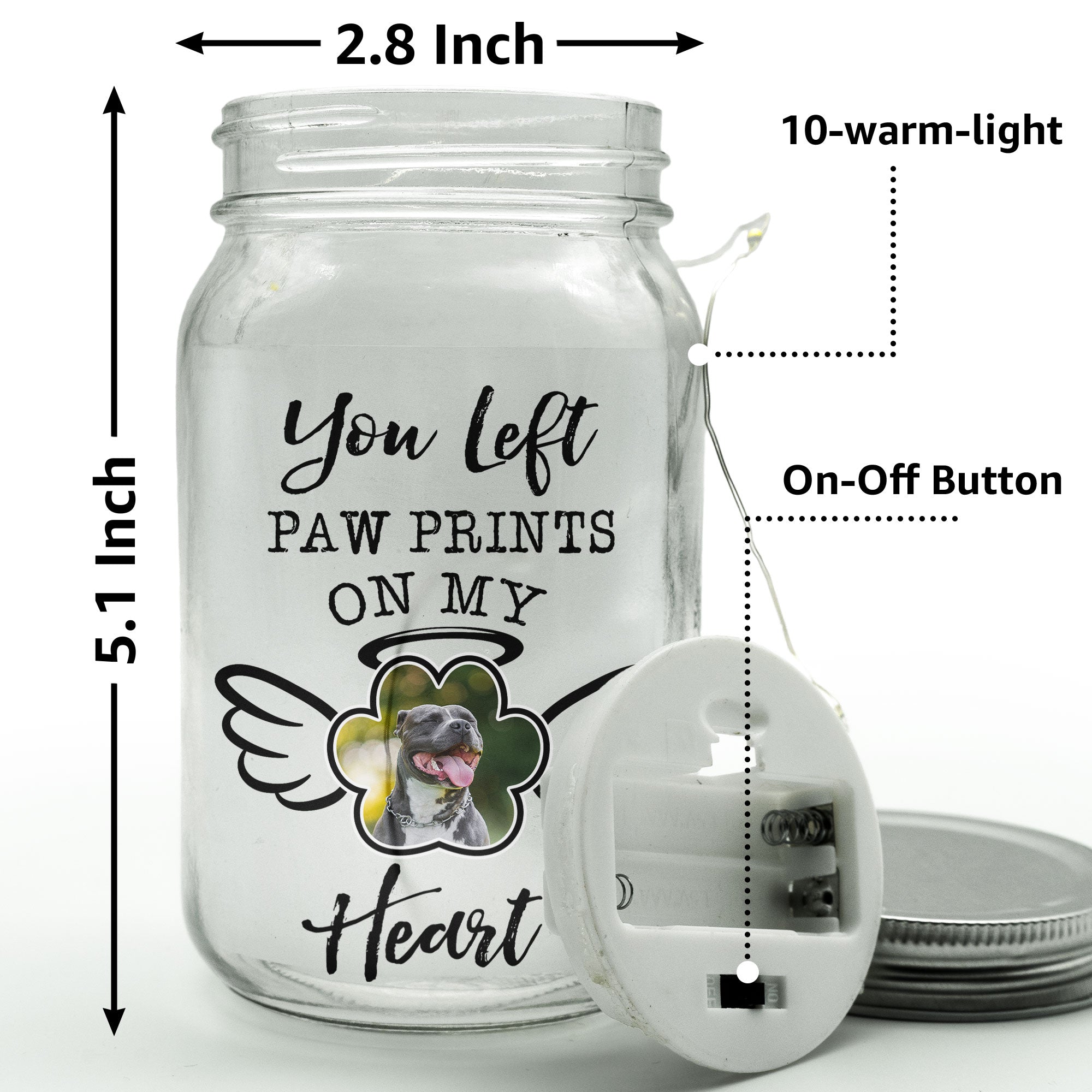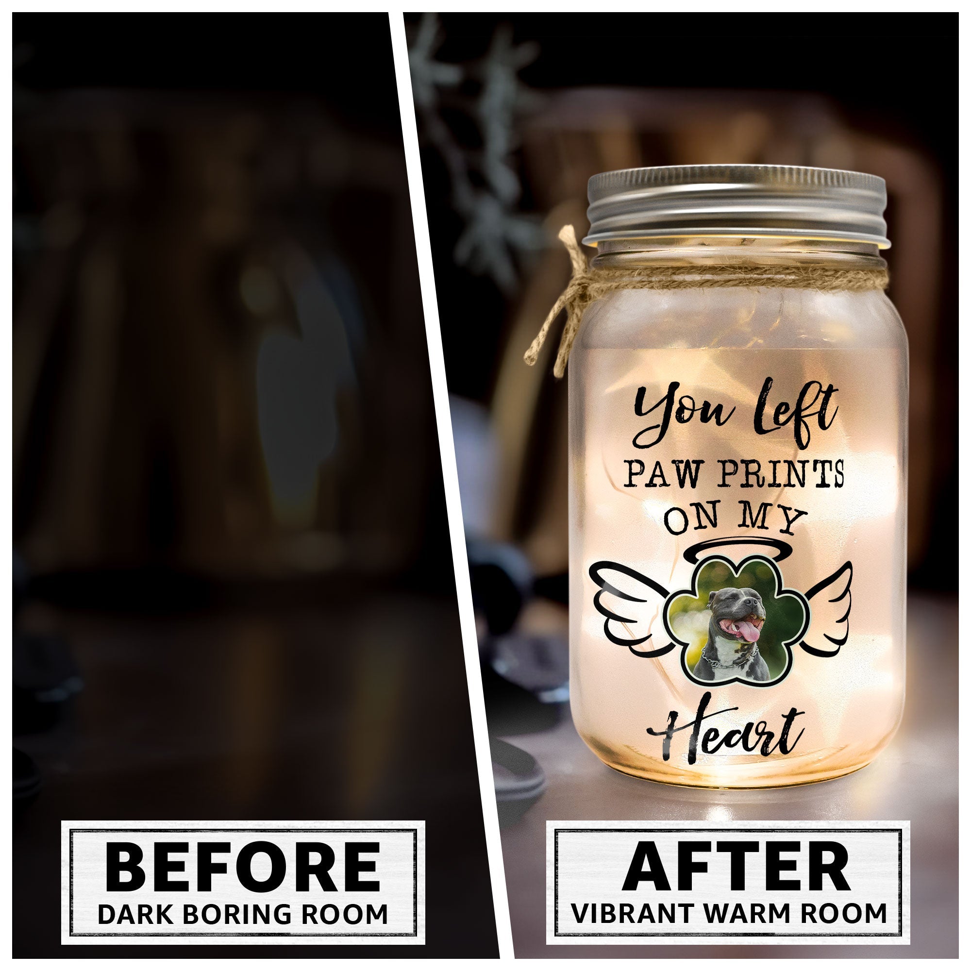 Order yours today and cherish the memory of your pet with this personalized photo Mason Jar light. You will love how it looks and feels on your home. And so will your family and friends! 🐾