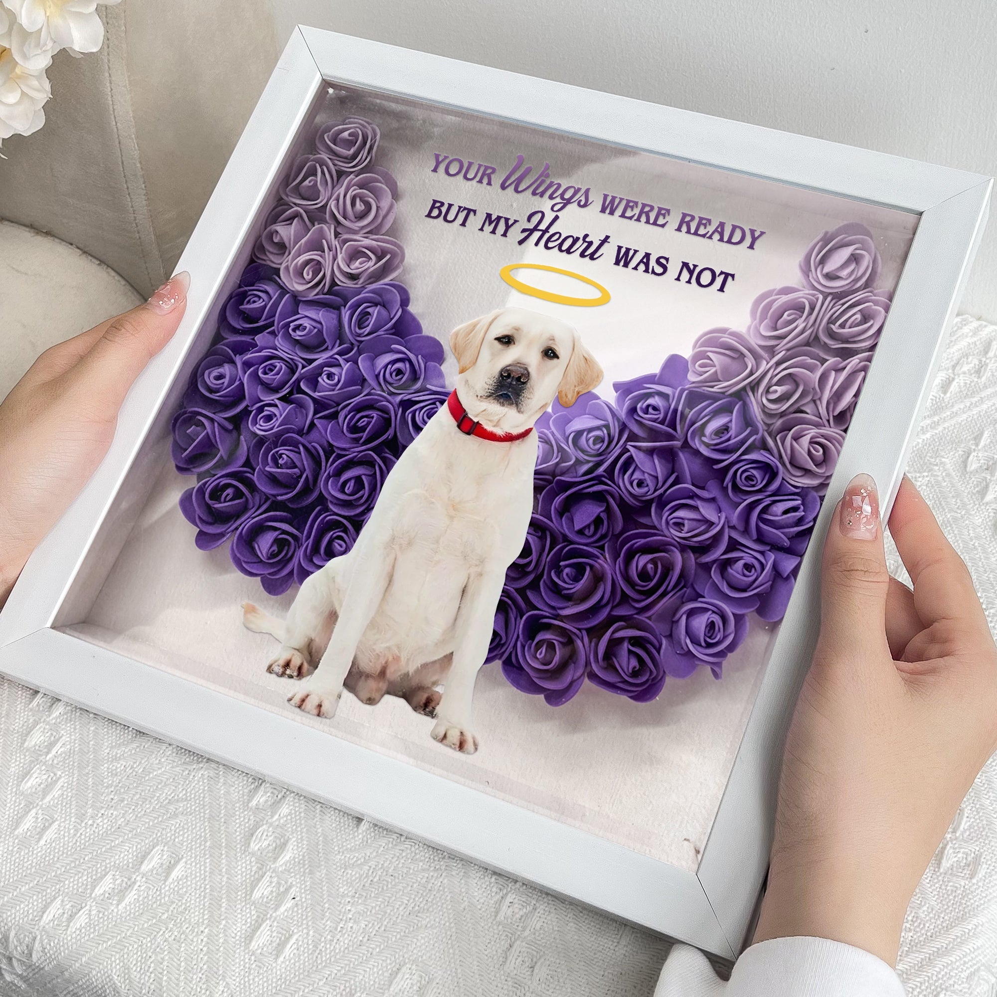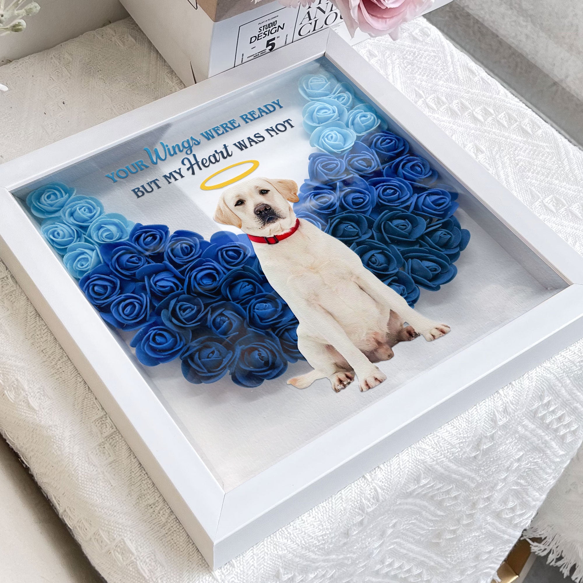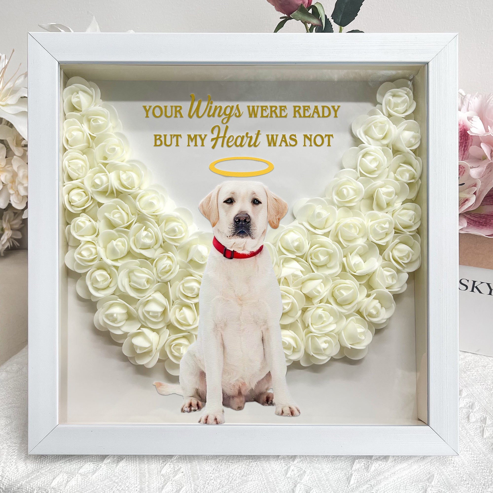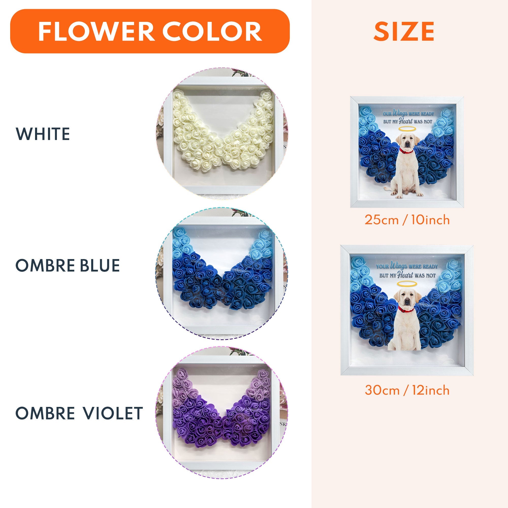 Personalized memorial photo flower shadow boxes are a beautiful way to commemorate your pets that have passed away and keep them close to your heart. These flower boxes are crafted with care and can be personalized with your loved one’s name and photo.