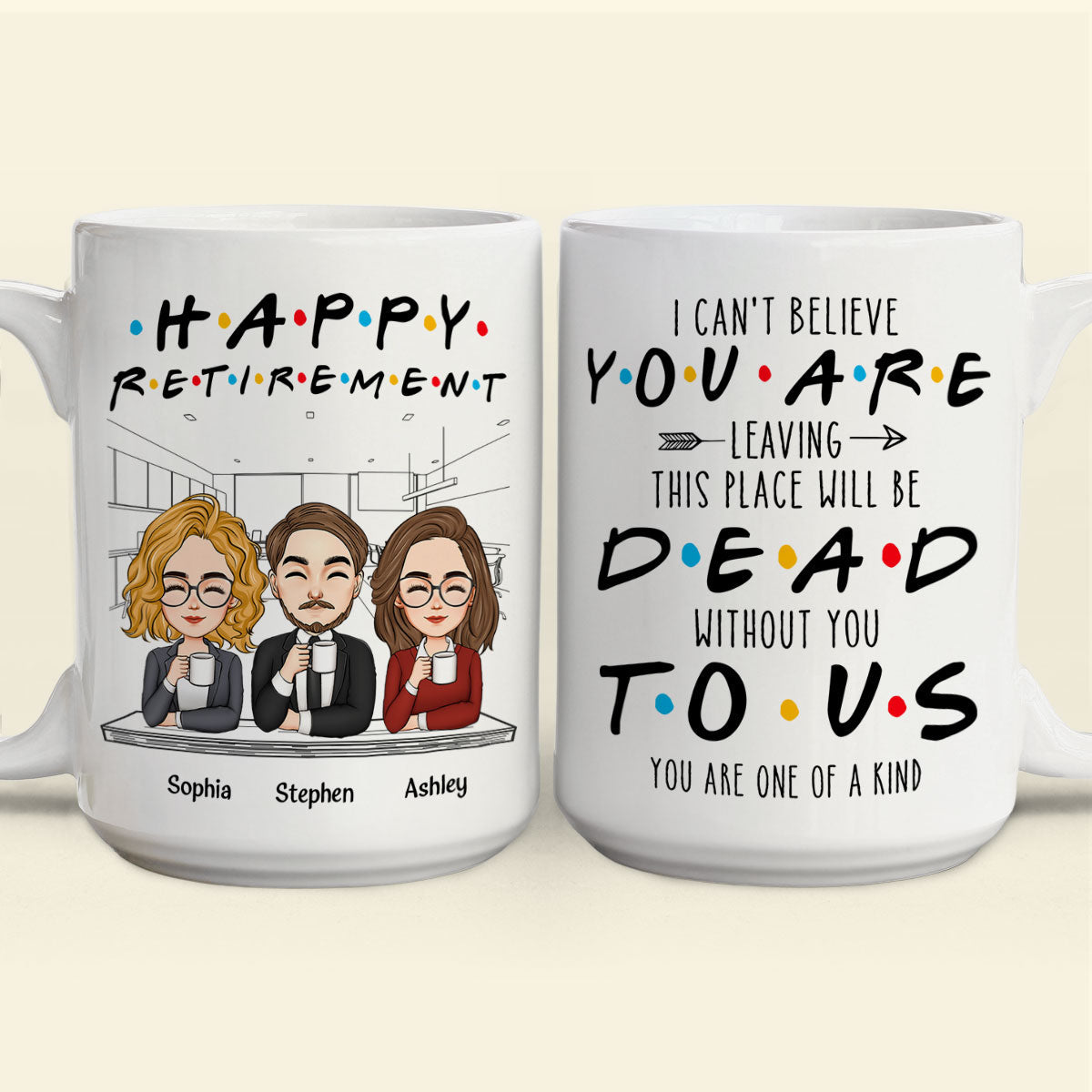 Looking for the perfect retirement gift idea for your coworker, office mate, or family member? Our custom retirement mug is a hilarious and heartwarming option. Whether it's for a man or a woman, this funny retirement gift is sure to make them laugh and feel appreciated. With its personalized touch, it's a thoughtful reminder of their time in the office and the memories shared with coworkers and loved ones. Show your gratitude and celebrate their well-deserved retirement with this unique and practical gift that will brighten their mornings and bring back fond memories for years to come.