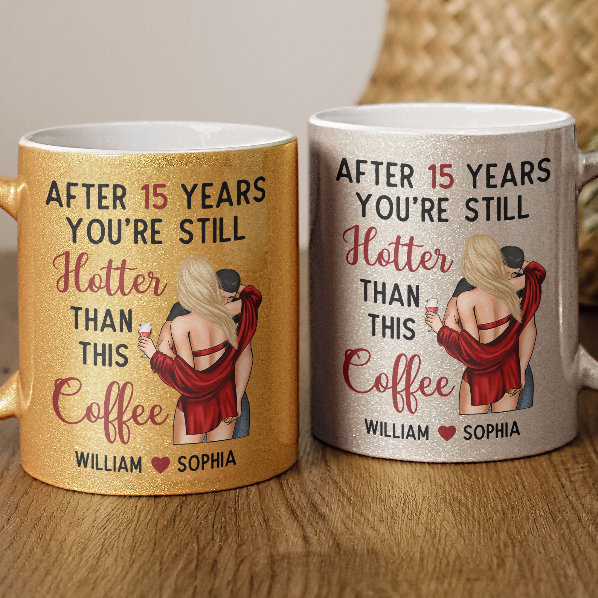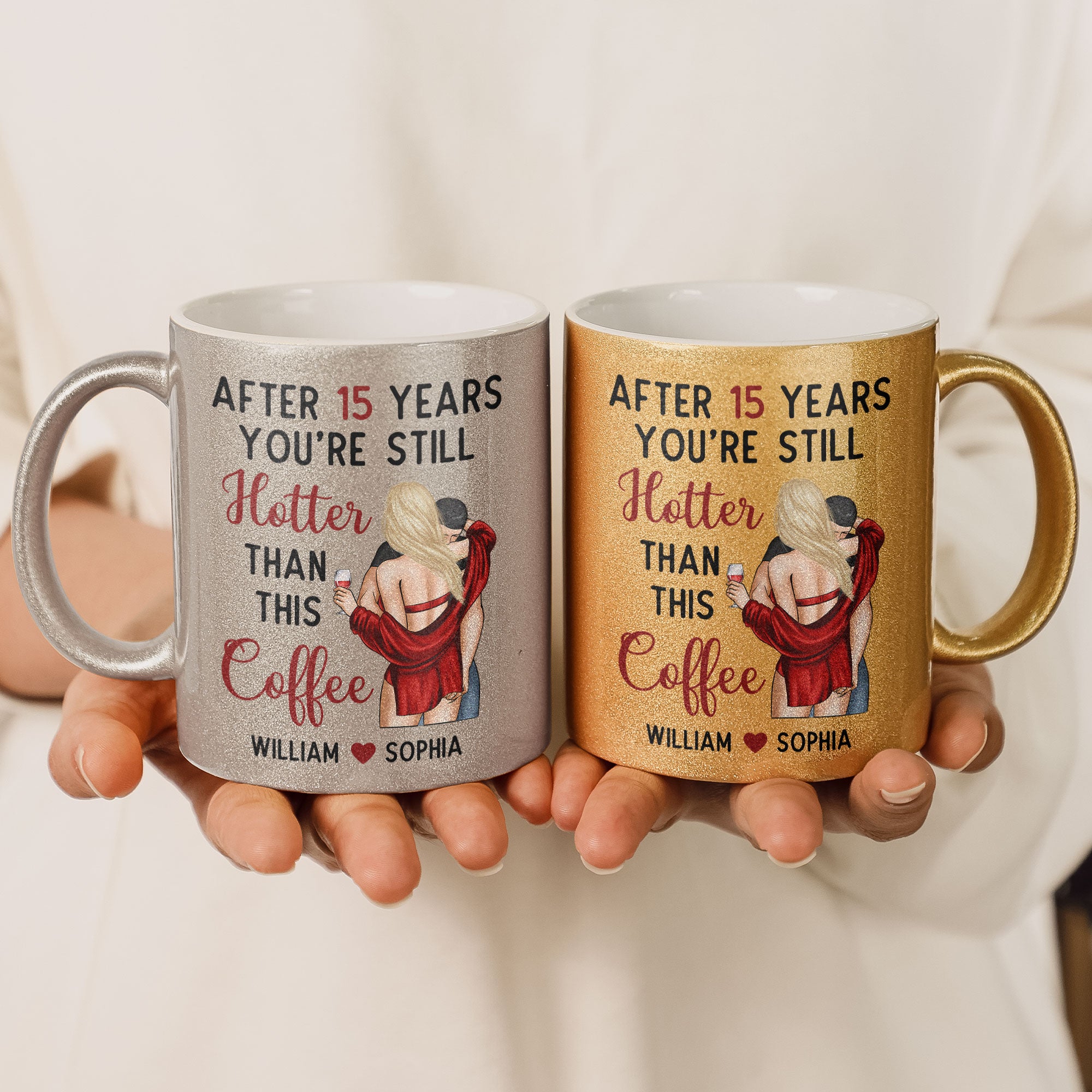 Celebrate your enduring love with this Personalized Glitter Coffee Mug, featuring the playful message, "After ... years, you're still hotter than this coffee." Perfect for anniversaries or a sweet surprise for your partner, this mug can be customized with the number of years you've shared together. Whether you're enjoying morning coffee or evening tea, this shimmering mug adds a touch of sparkle and romance to your routine. A delightful way to say that your love only gets better with time!