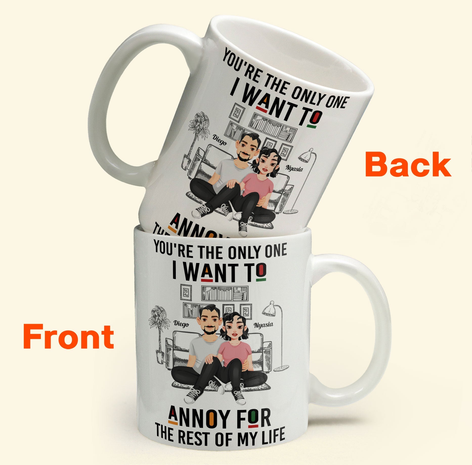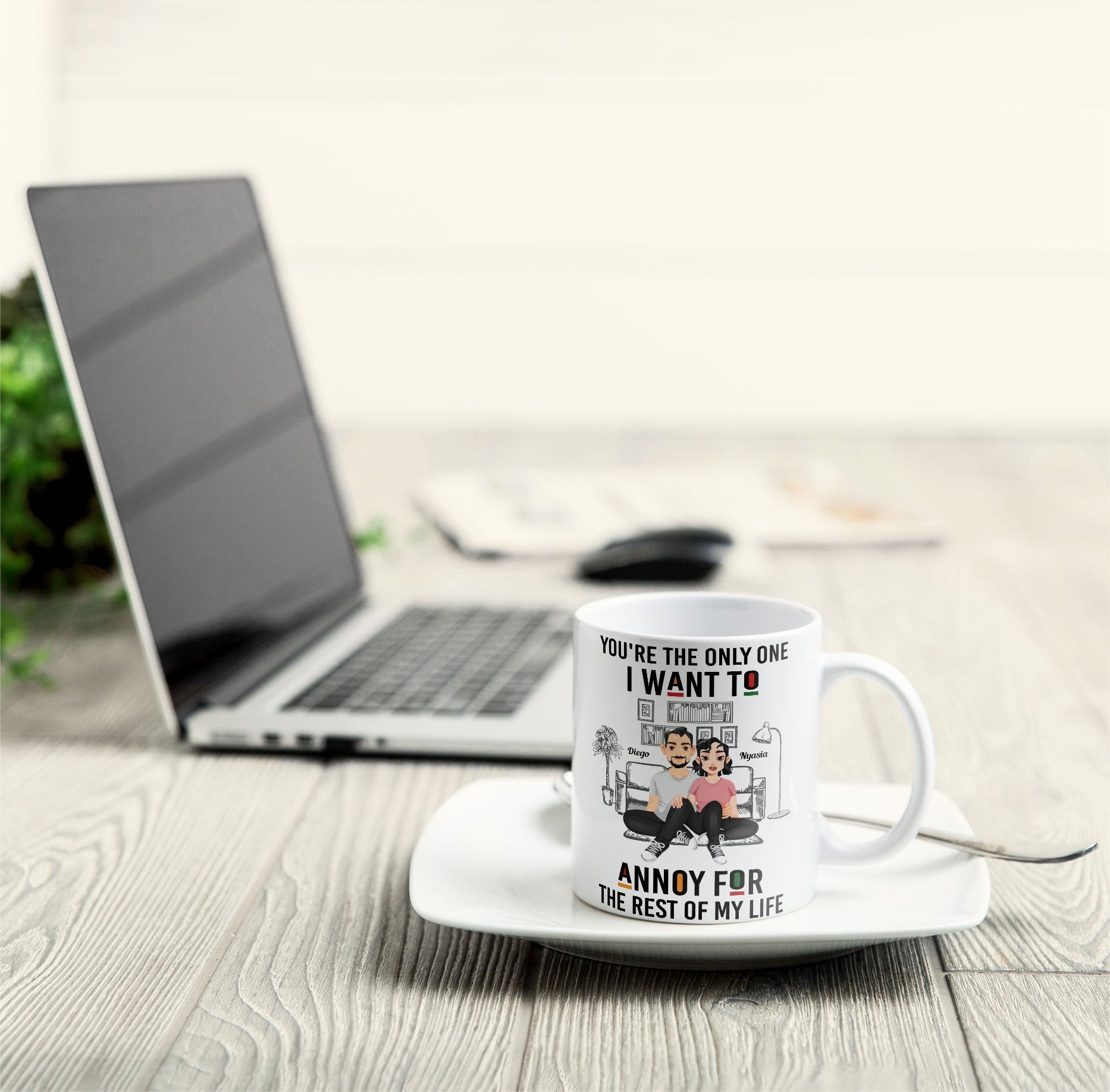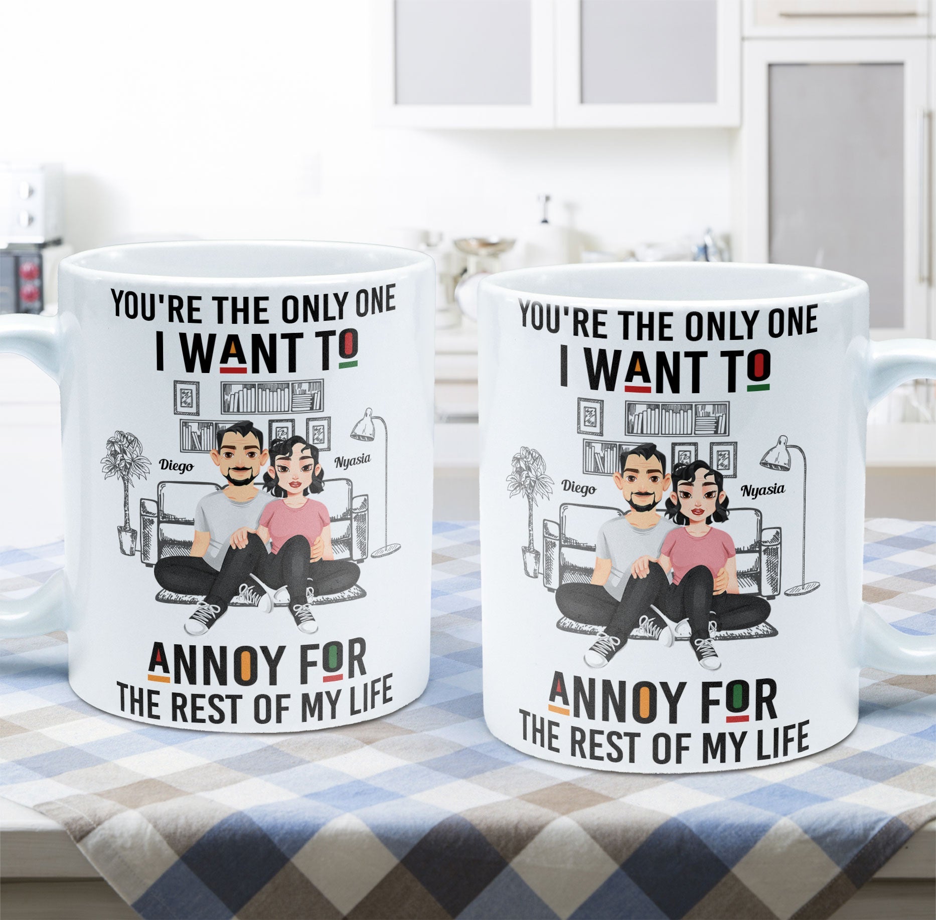 Celebrate your love with sweet sayings on our You're The Only One I Want To Annoy For The Rest Of My Life Personalized Coffee Mug. Start your morning off by being reminded of your sweetie - their favorite face will be custom personalized on a coffee mug made especially for the both of you! Perfect for Sweetest Day, Anniversary, Valentine's Day, birthdays, or just to say "I Love You".