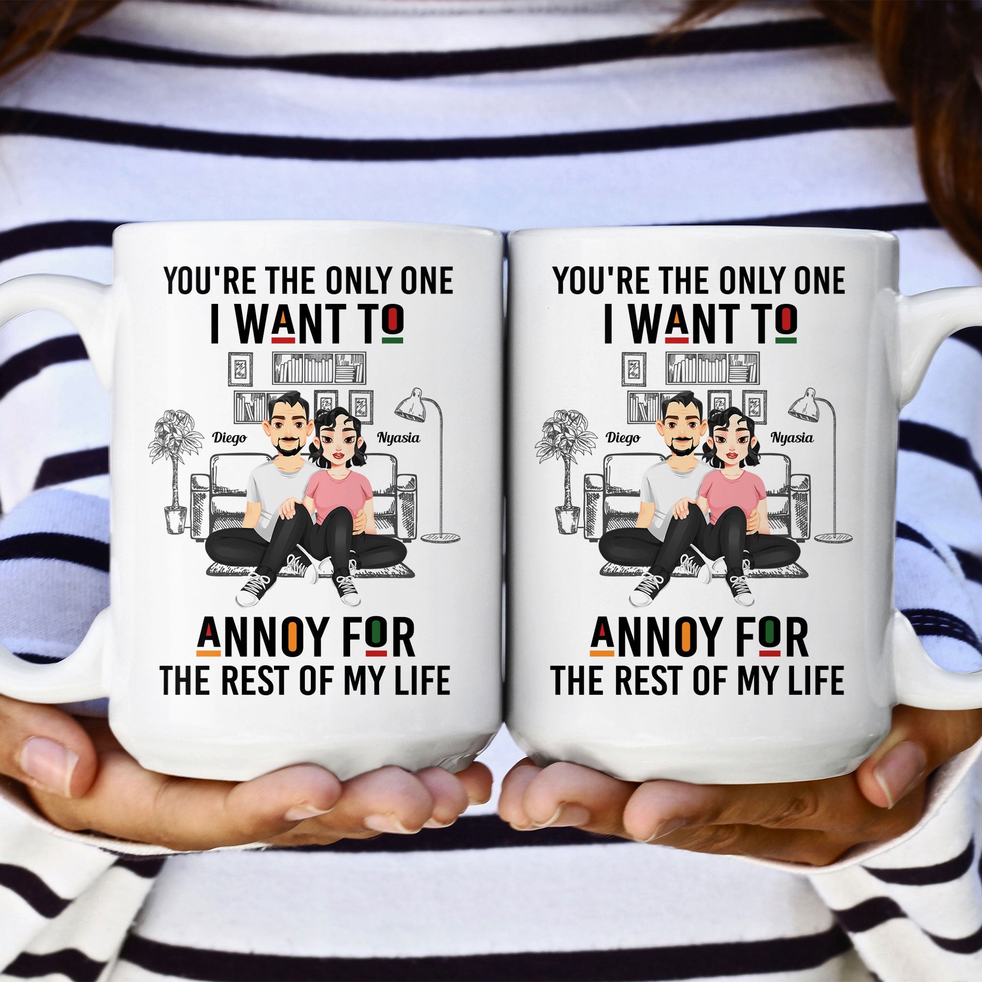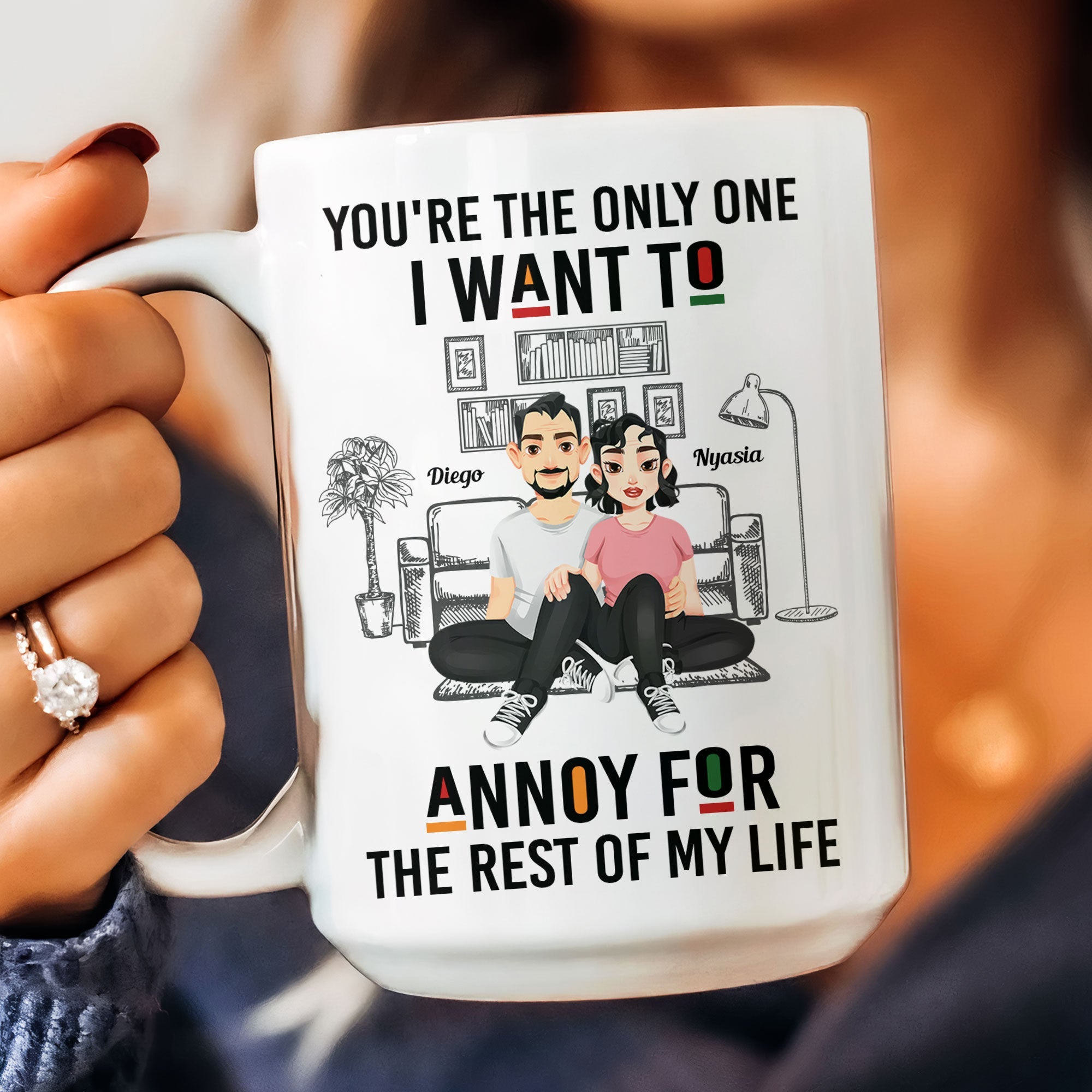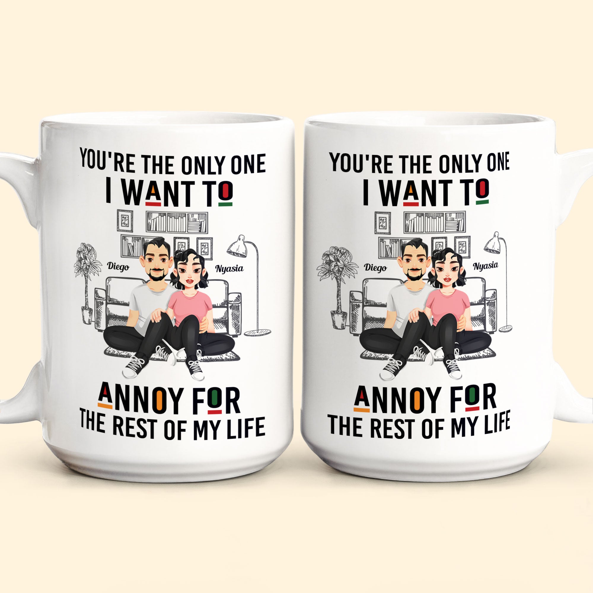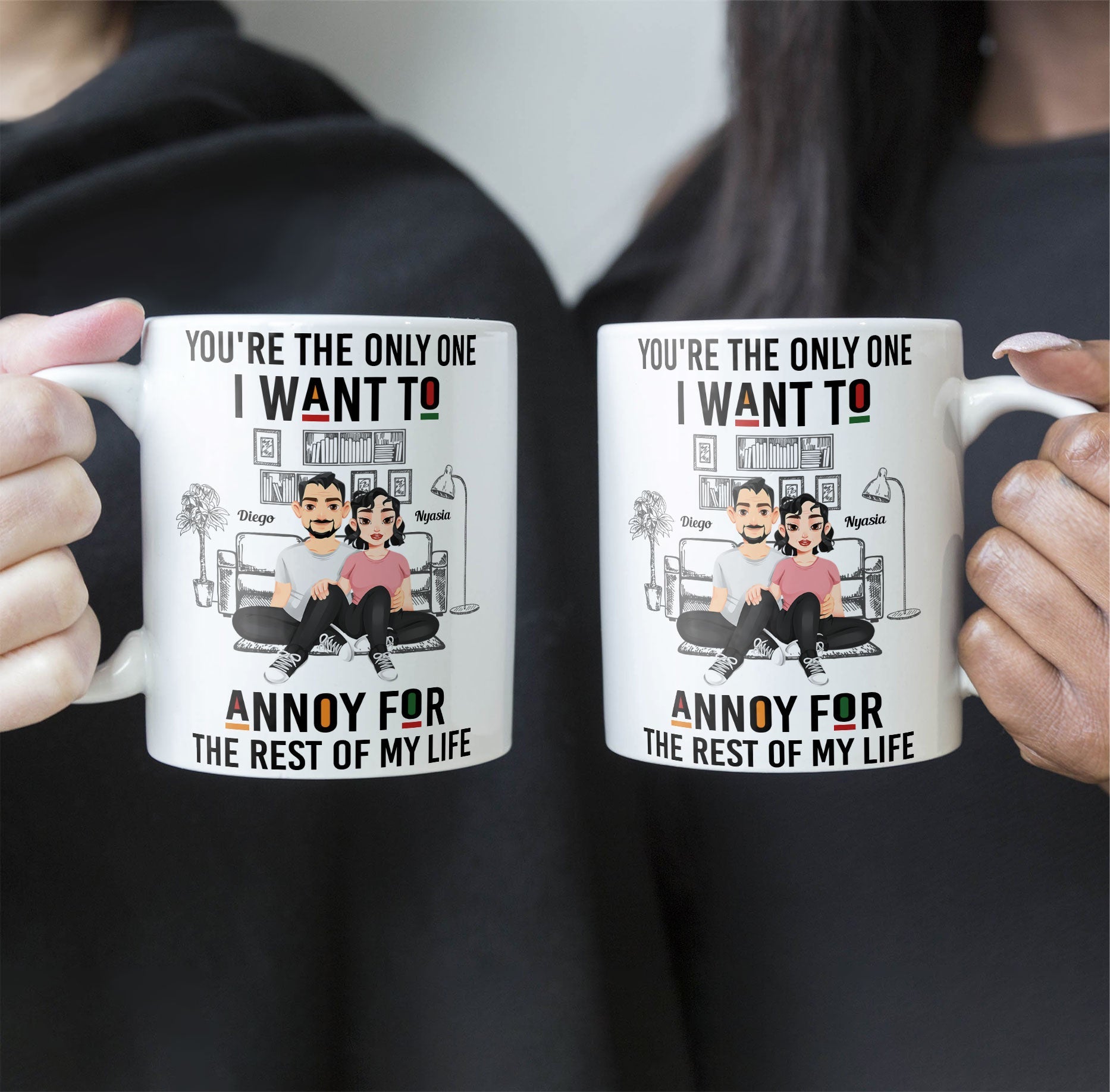 Celebrate your love with sweet sayings on our You're The Only One I Want To Annoy For The Rest Of My Life Personalized Coffee Mug. Start your morning off by being reminded of your sweetie - their favorite face will be custom personalized on a coffee mug made especially for the both of you! Perfect for Sweetest Day, Anniversary, Valentine's Day, birthdays, or just to say "I Love You".
