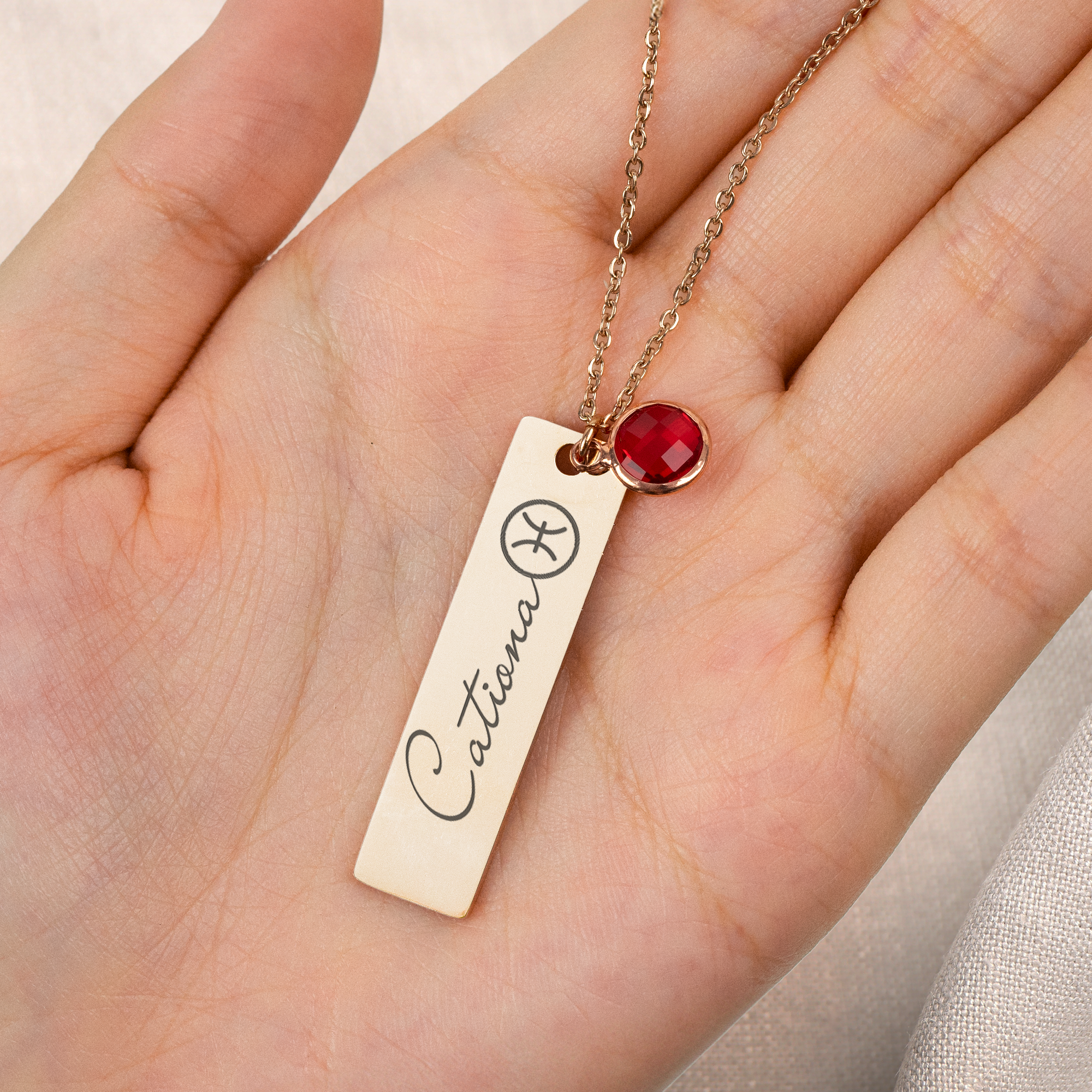 The Personalized Birthstone Necklace with a custom birthstone, zodiac sign, and name is the perfect gift to celebrate the special women in your life—whether it’s for friends, a bestie, sisters, or mom. This thoughtful piece elegantly combines her unique astrological symbol and birthstone, reflecting her individuality in a beautiful way. With her name engraved, this necklace becomes a one-of-a-kind keepsake she'll cherish.